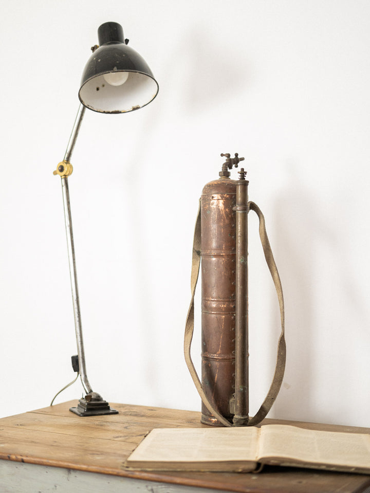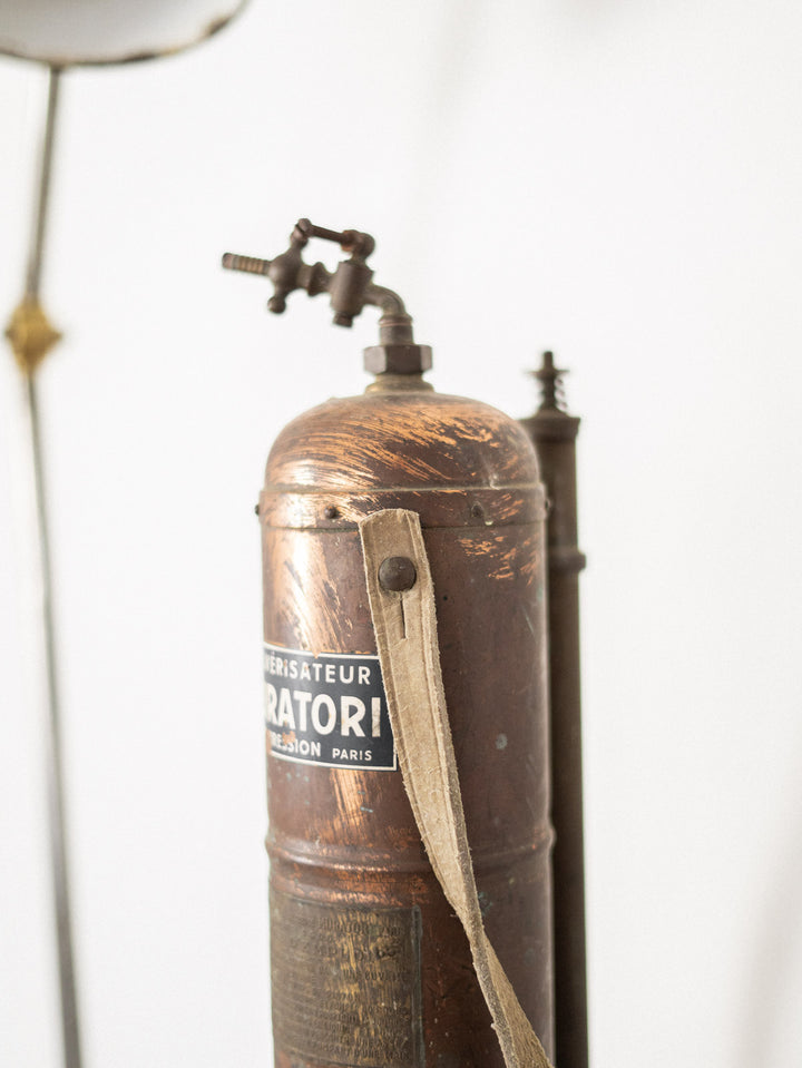 Découvrez notre pulvérisateur en cuivre plein de caractère, doté d’une anse en cuir patiné qui allie authenticité et raffinement. Témoignage du savoir-faire d’antan, il servait autrefois à vaporiser les plantes avec délicatesse. Aujourd’hui, il trouve naturellement sa place comme bel objet décoratif, apportant une note de charme et d’histoire à votre intérieur. Sa finition en cuivre vieilli lui confère une patine unique, faisant de cette objet une pièce singulière. Un élément décoratif plein d’âme, idéal pour les amoureux d’authenticité et du beau.