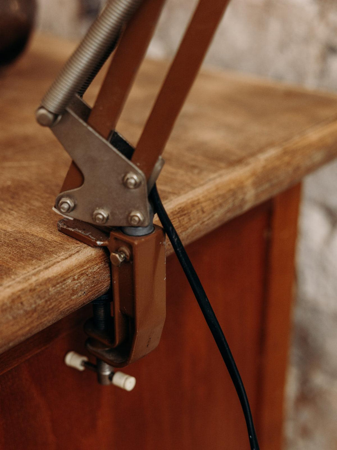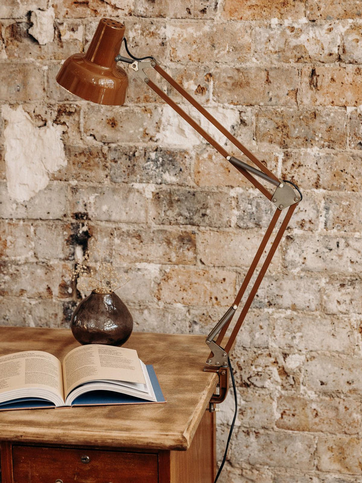 Cette lampe marron à fixer sur une table allie praticité et élégance. Son système de fixation vous offre un éclairage précis sans encombrer votre espace. Idéale pour le travail ou la lecture, elle s'adapte à tous les styles et devient vite un accessoire indispensable pour votre bureau !