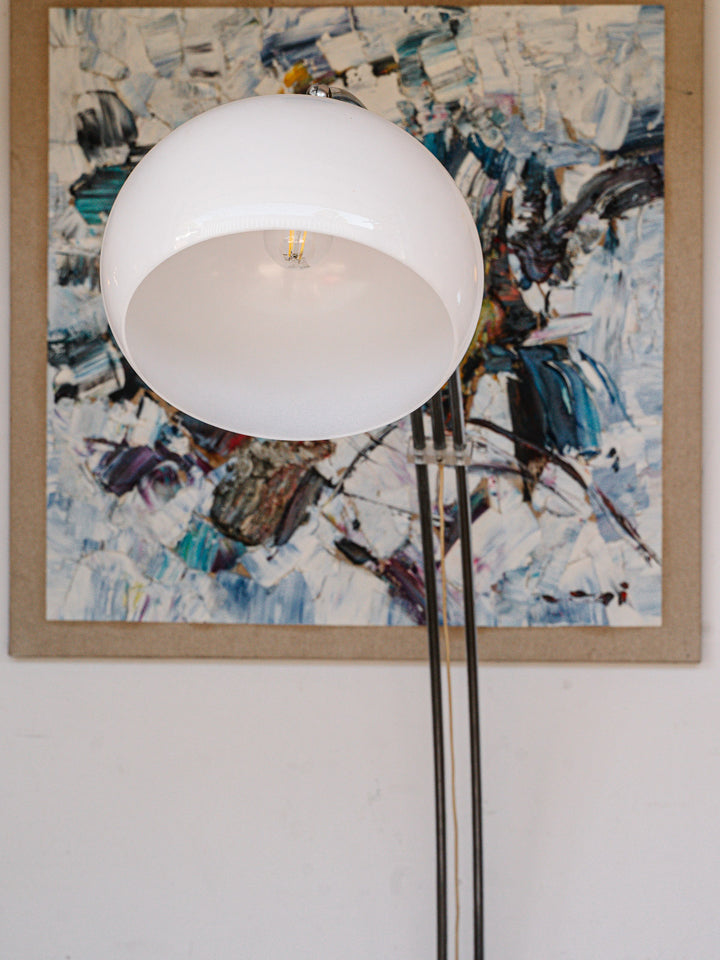 Apportez une touche rétro-chic à votre intérieur avec le lampadaire Arc des années 1970. Sa structure en métal, élégamment soulignée par un socle en marbre, allie robustesse et sophistication. Grâce à sa longueur coulissante et son globe orientable en altuglass blanc, ce lampadaire offre un éclairage modulable tout en mettant en valeur son design emblématique. Un éclairage idéal pour créer une ambiance chaleureuse et stylée dans votre espace de vie.