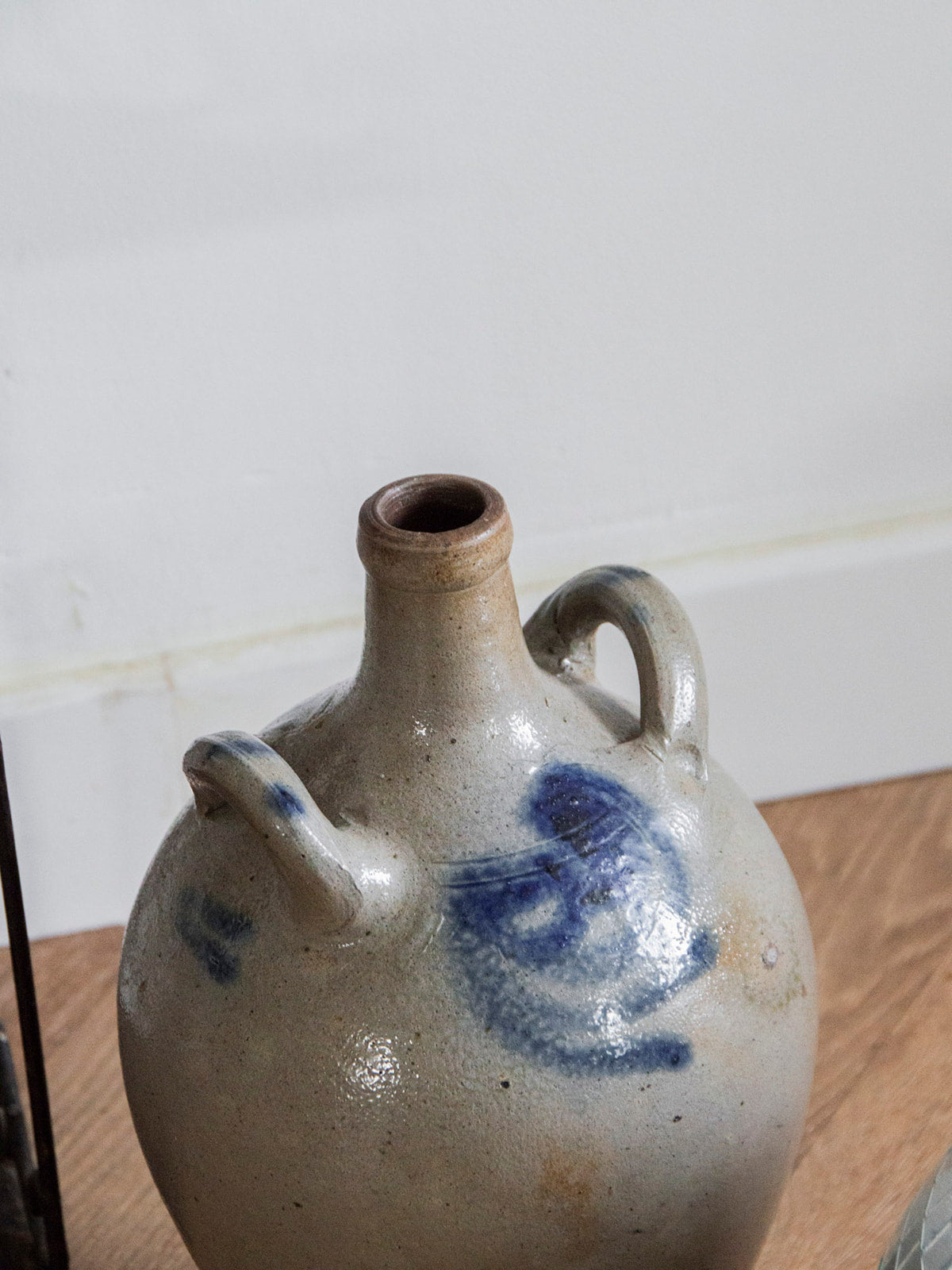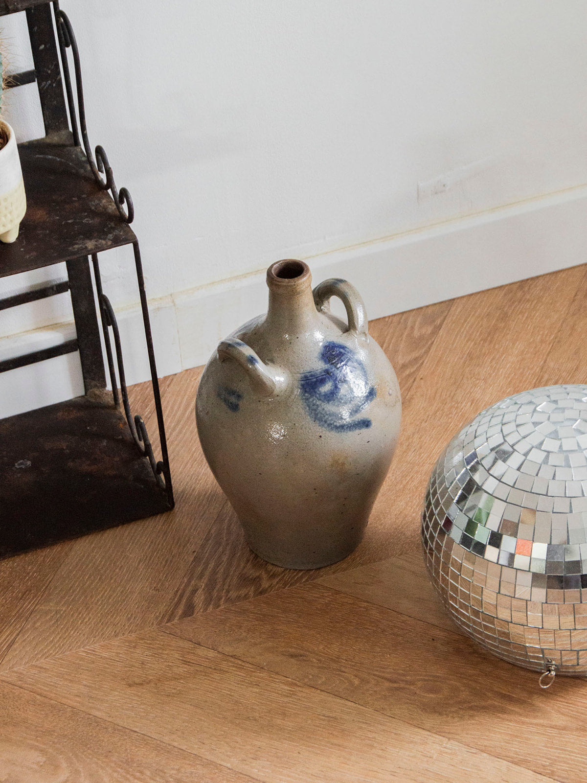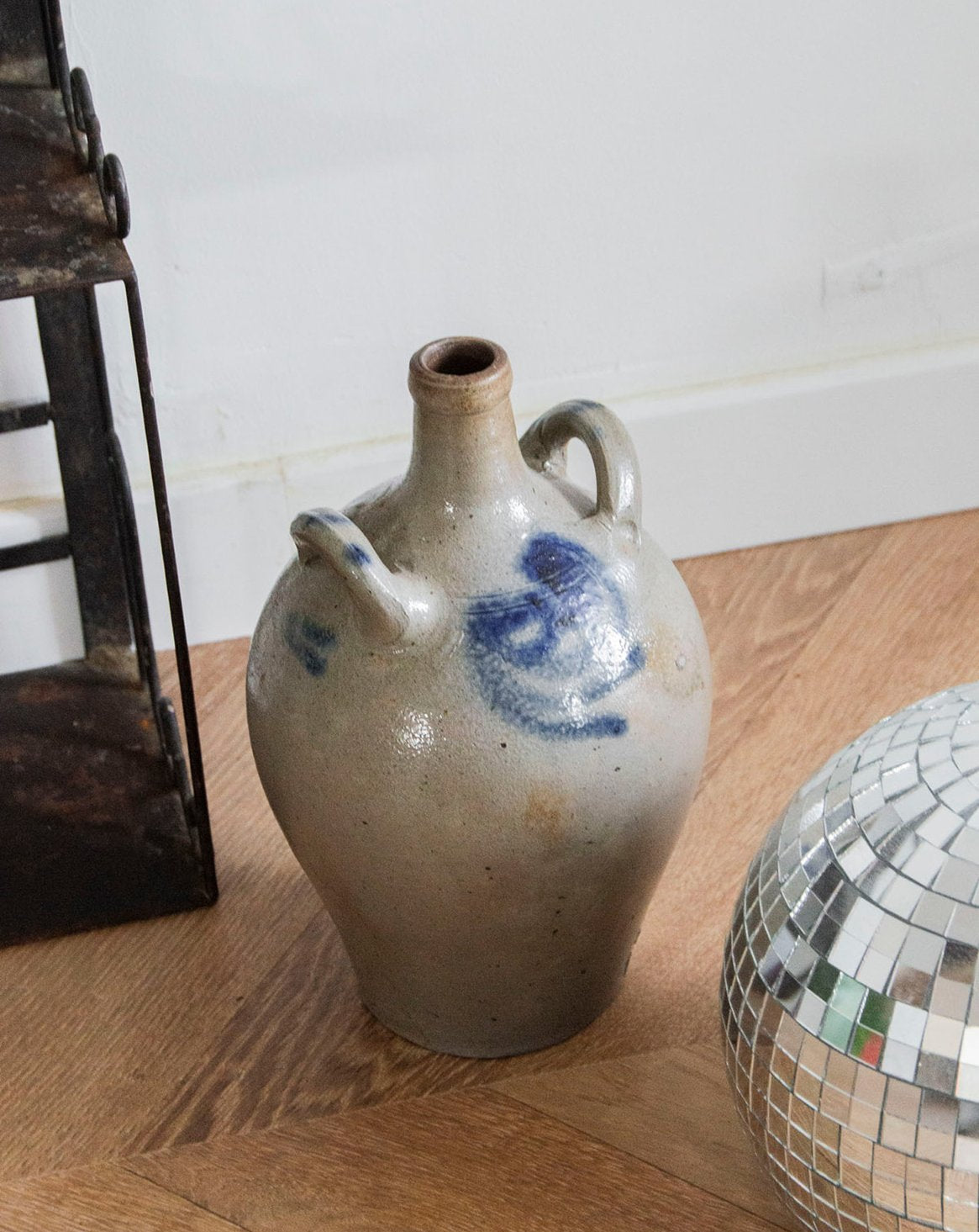 Apportez une touche d’authenticité à votre intérieur avec cet huilier ancien en grès d’Alsace. Son grès gris souligné de délicats motifs bleus lui donne une allure intemporelle, empreinte de savoir-faire traditionnel. À la fois pratique et décoratif, il est idéal pour présenter huiles ou vinaigres avec élégance. Une pièce pleine de charme, parfaite pour celles et ceux qui aiment mêler art de la table et esprit vintage.