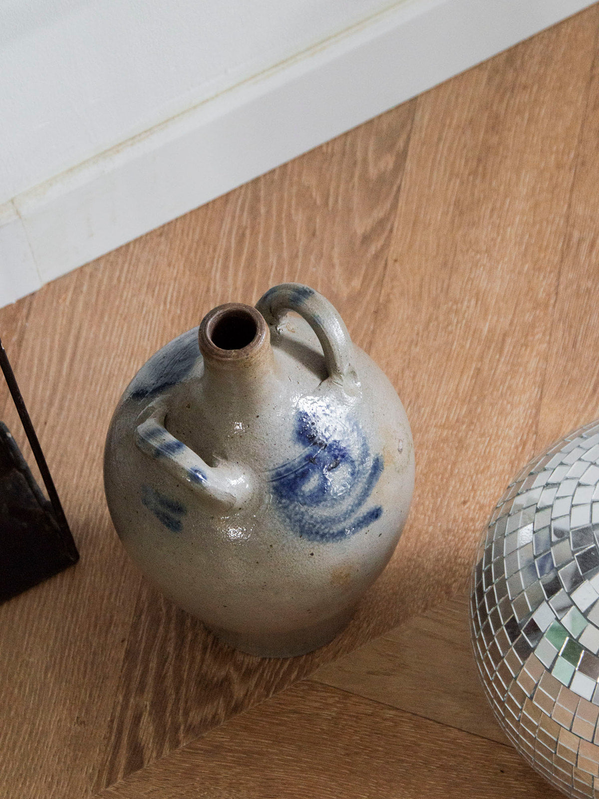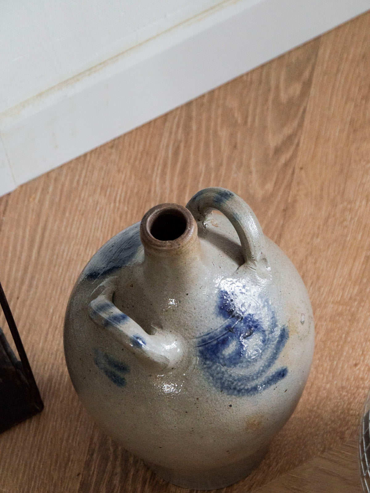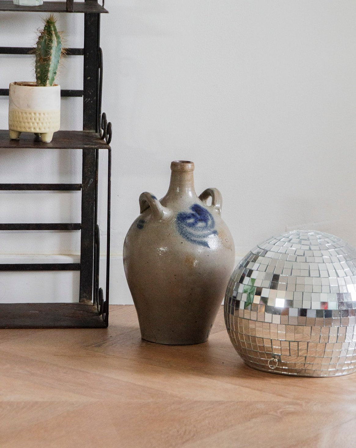 Apportez une touche d’authenticité à votre intérieur avec cet huilier ancien en grès d’Alsace. Son grès gris souligné de délicats motifs bleus lui donne une allure intemporelle, empreinte de savoir-faire traditionnel. À la fois pratique et décoratif, il est idéal pour présenter huiles ou vinaigres avec élégance. Une pièce pleine de charme, parfaite pour celles et ceux qui aiment mêler art de la table et esprit vintage.