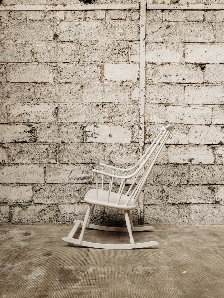 Découvrez le rocking chair blanc de Lena Larsson, une véritable pièce emblématique des années 1960. Son design élégant se distingue par un dossier à barres qui allie esthétisme et confort, tandis que les accotoirs incurvés ajoutent une touche de sophistication. Fabriqué en bois de qualité, ce rocking chair saura embellir votre intérieur tout en vous offrant des moments de détente inoubliables. Un incontournable pour les amateurs de design vintage.