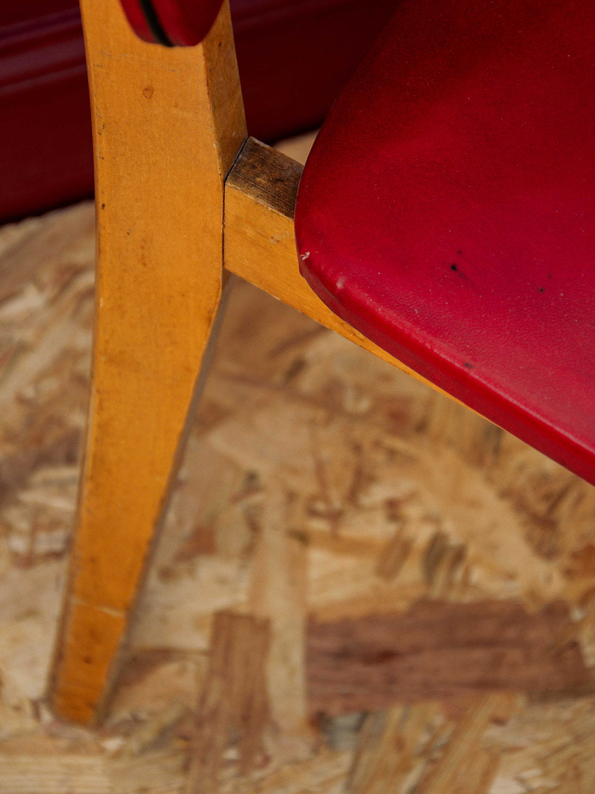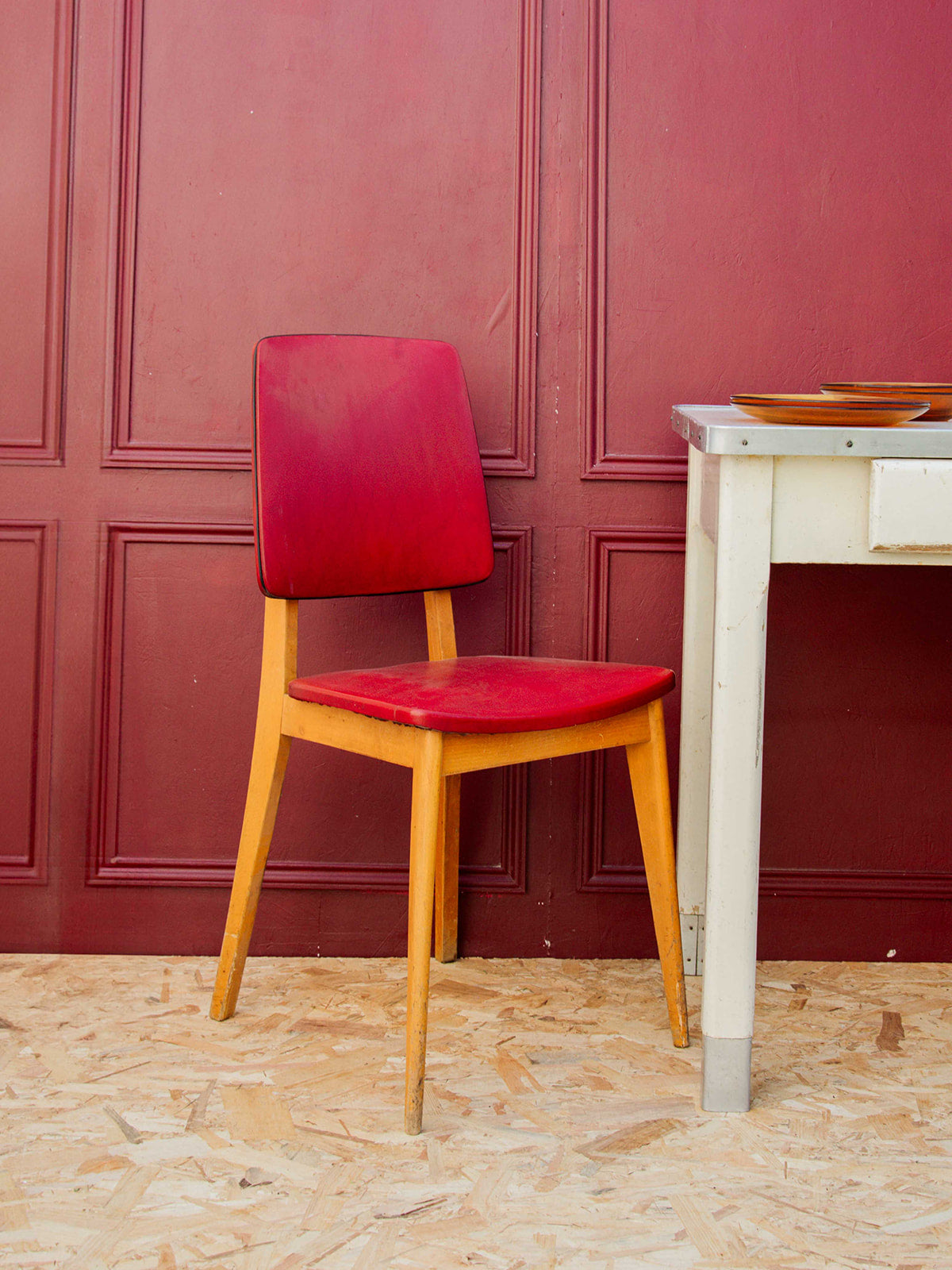 Une chaise au charme résolument rétro. En bois chaleureux et assise en vinyle rouge éclatant, elle apporte une belle dose de caractère à votre intérieur. On aime son allure simple mais affirmée, les détails qui racontent son vécu et les petites marques du temps qui la rendent unique. Parfaite autour d’une table de salle à manger ou dans un coin café cosy, elle insuffle une ambiance conviviale et vintage, sans jamais en faire trop. Vendu séparément, trois exemplaires disponibles.