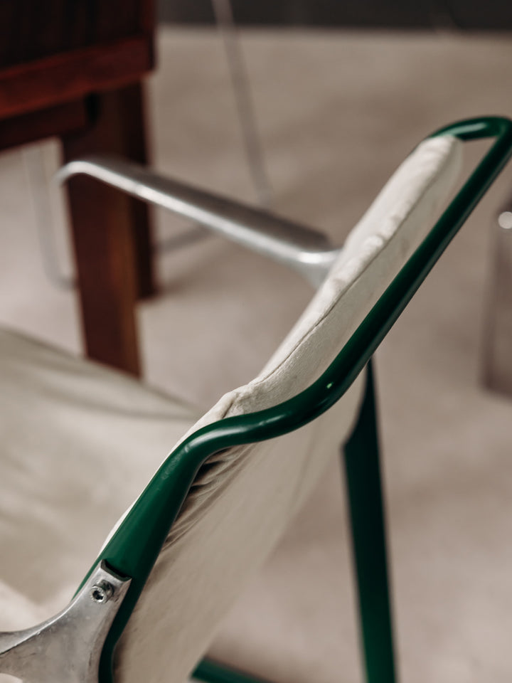 Découvrez cette élégante chaise des années 70 avec une structure métallique verte et des accoudoirs en métal brut, offrant un design vintage et industriel. Son assise a été entièrement retapissée avec un velours beige, apportant confort et raffinement à cette pièce. Parfaite pour ajouter une touche rétro à votre intérieur, cette chaise allie esthétique et fonctionnalité. Un meuble idéal pour un salon ou un bureau, apportant un charme intemporel à votre décoration. Vendues séparément, deux exemplaires disponibles.