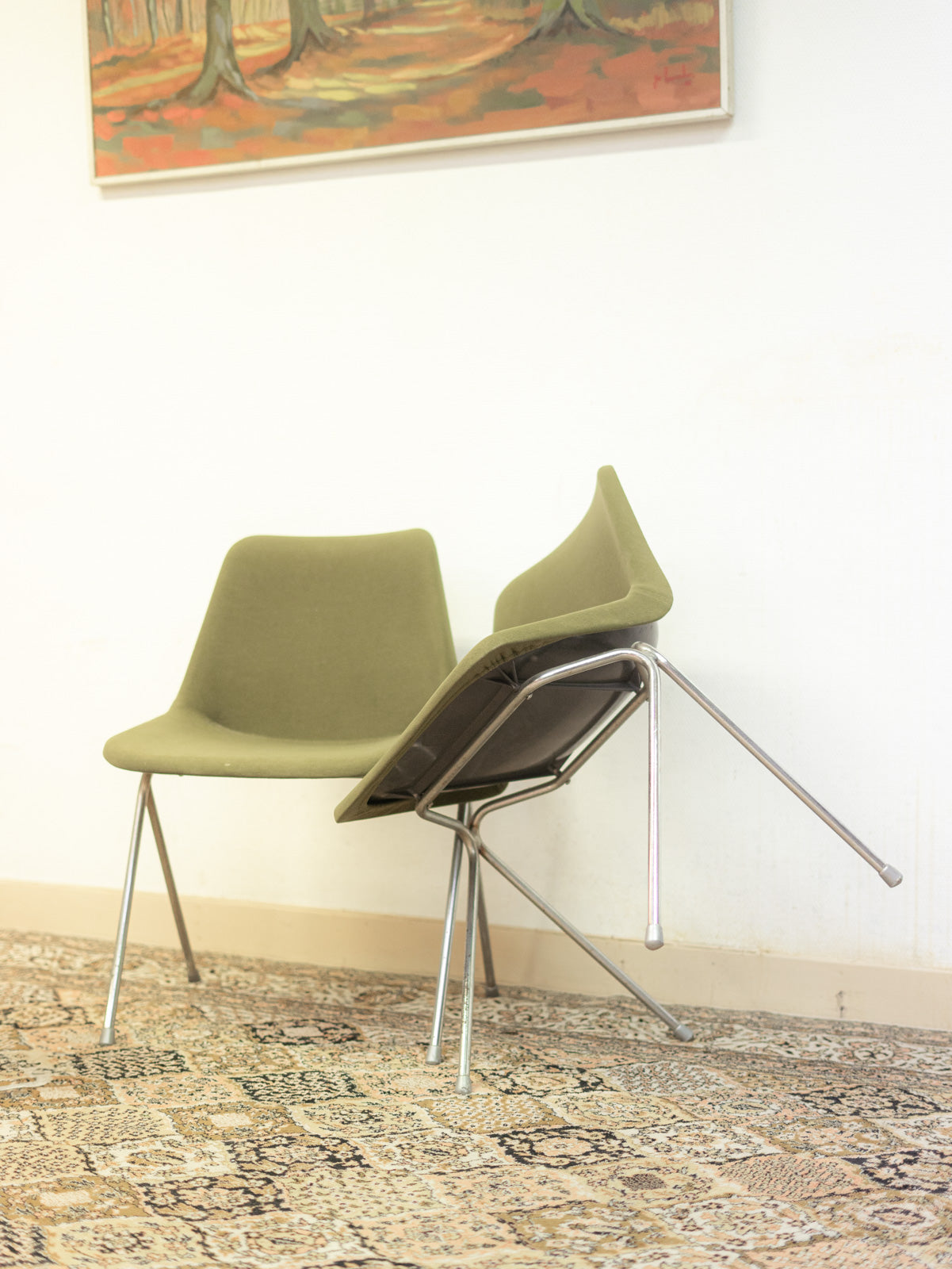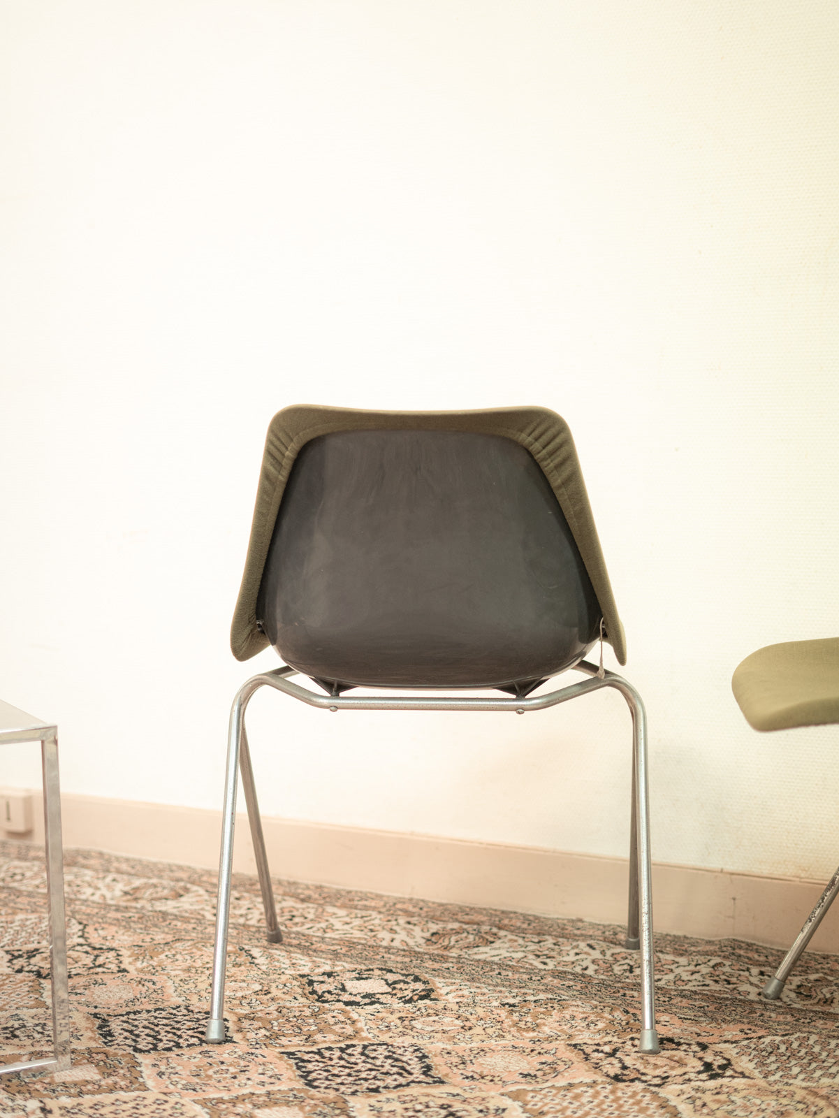 Apportez une touche de modernité à votre intérieur avec cette paire de chaises au style contemporain. Dotées d'une housse en tissu vert élégant, leur coque en plastique assure un confort optimal, tandis que les pieds en métal ajoutent une note de robustesse. Bien que présentant quelques traces d'usure, ces chaises témoignent de leur caractère unique et s'intègrent facilement dans divers décors. Idéales pour agrémenter votre salle à manger ou votre bureau, elles allient esthétique et praticité.