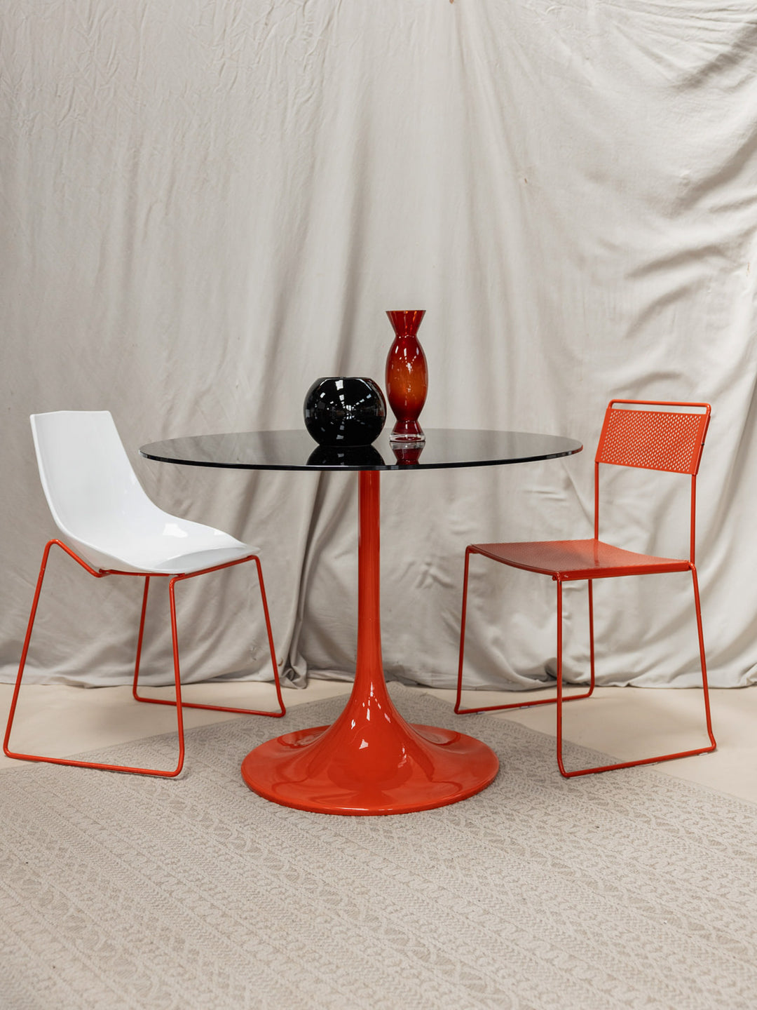Cette chaise rouge en métal apporte une jolie touche de modernité à votre intérieur. Son assise ajourée et son dossier assorti lui donnent un look plein de caractère, tandis que ses pieds fins lui confèrent une belle légèreté visuelle. On l’imagine aussi bien autour d’une table de salle à manger que dans un coin café, pour une assise aussi pratique que stylée.