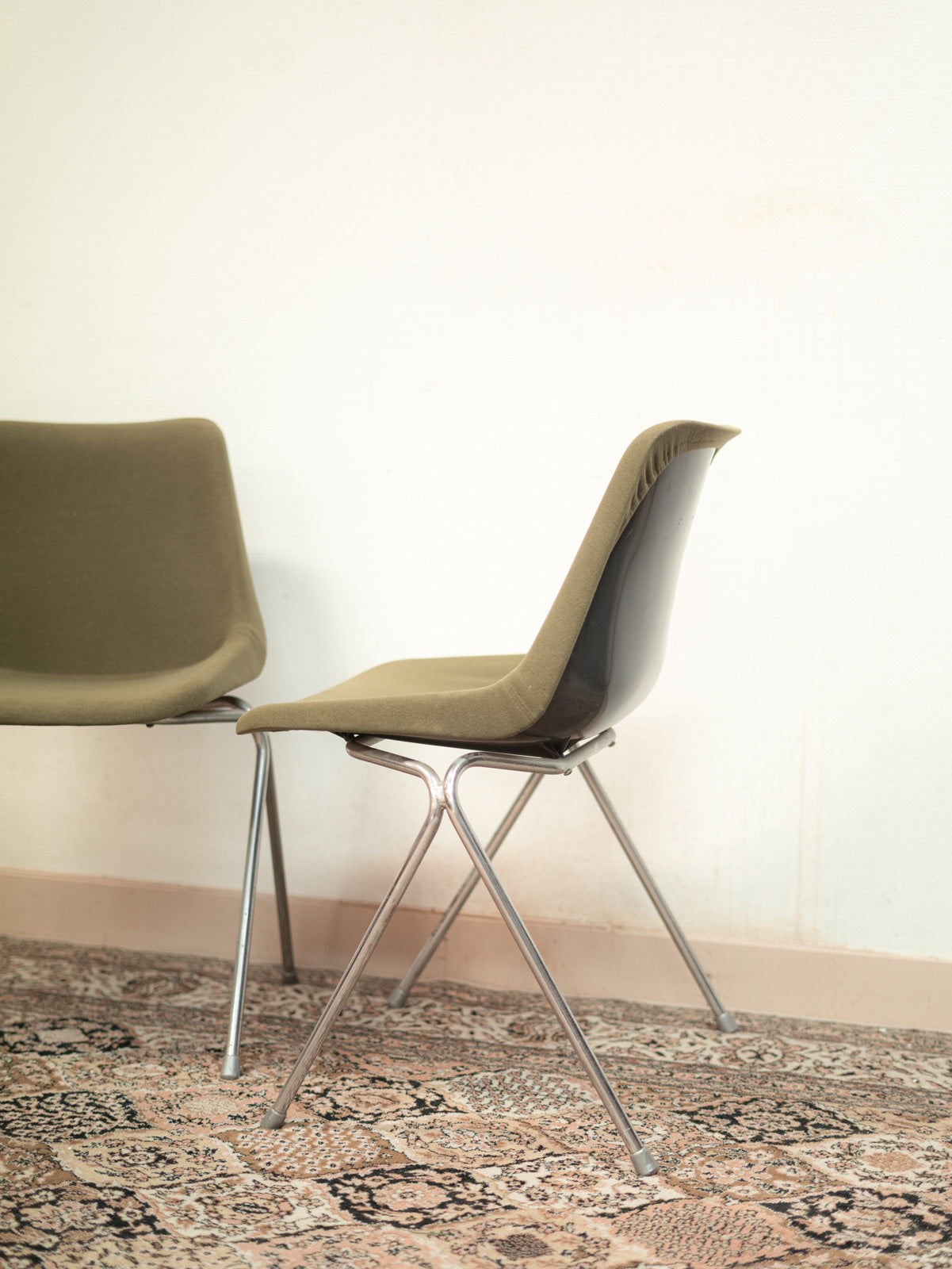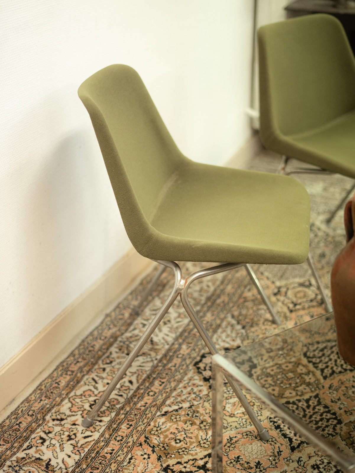 Apportez une touche de modernité à votre intérieur avec cette paire de chaises au style contemporain. Dotées d'une housse en tissu vert élégant, leur coque en plastique assure un confort optimal, tandis que les pieds en métal ajoutent une note de robustesse. Bien que présentant quelques traces d'usure, ces chaises témoignent de leur caractère unique et s'intègrent facilement dans divers décors. Idéales pour agrémenter votre salle à manger ou votre bureau, elles allient esthétique et praticité.