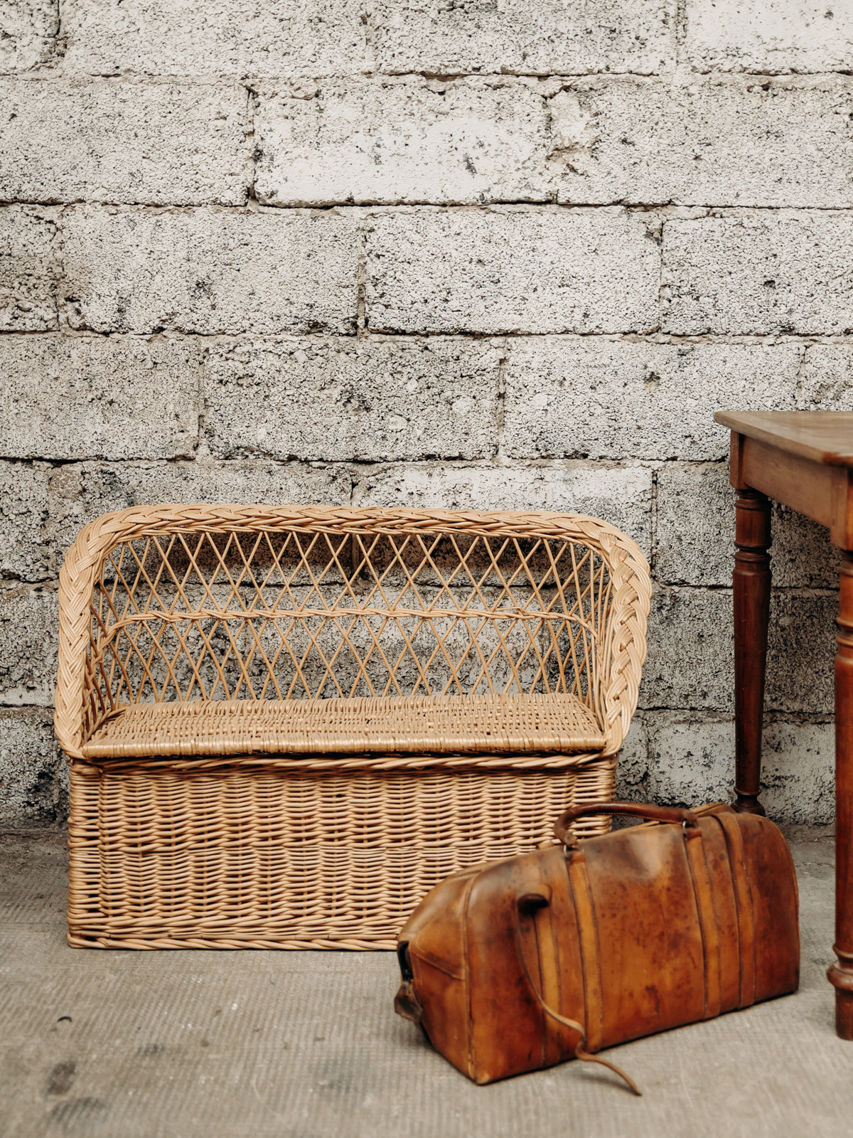 Découvrez ce banc coffre en osier, parfait pour enfant, alliant praticité et style naturel. Légèrement abîmé à quelques endroits, il conserve tout son charme et sa fonctionnalité. Idéal pour ranger jouets ou accessoires, il ajoutera une touche chaleureuse et vintage à la chambre de votre enfant. Son design simple et intemporel se marie facilement avec différents styles de décoration. Un meuble à la fois décoratif et utile, pour une touche d’authenticité dans l’espace de vos petits.