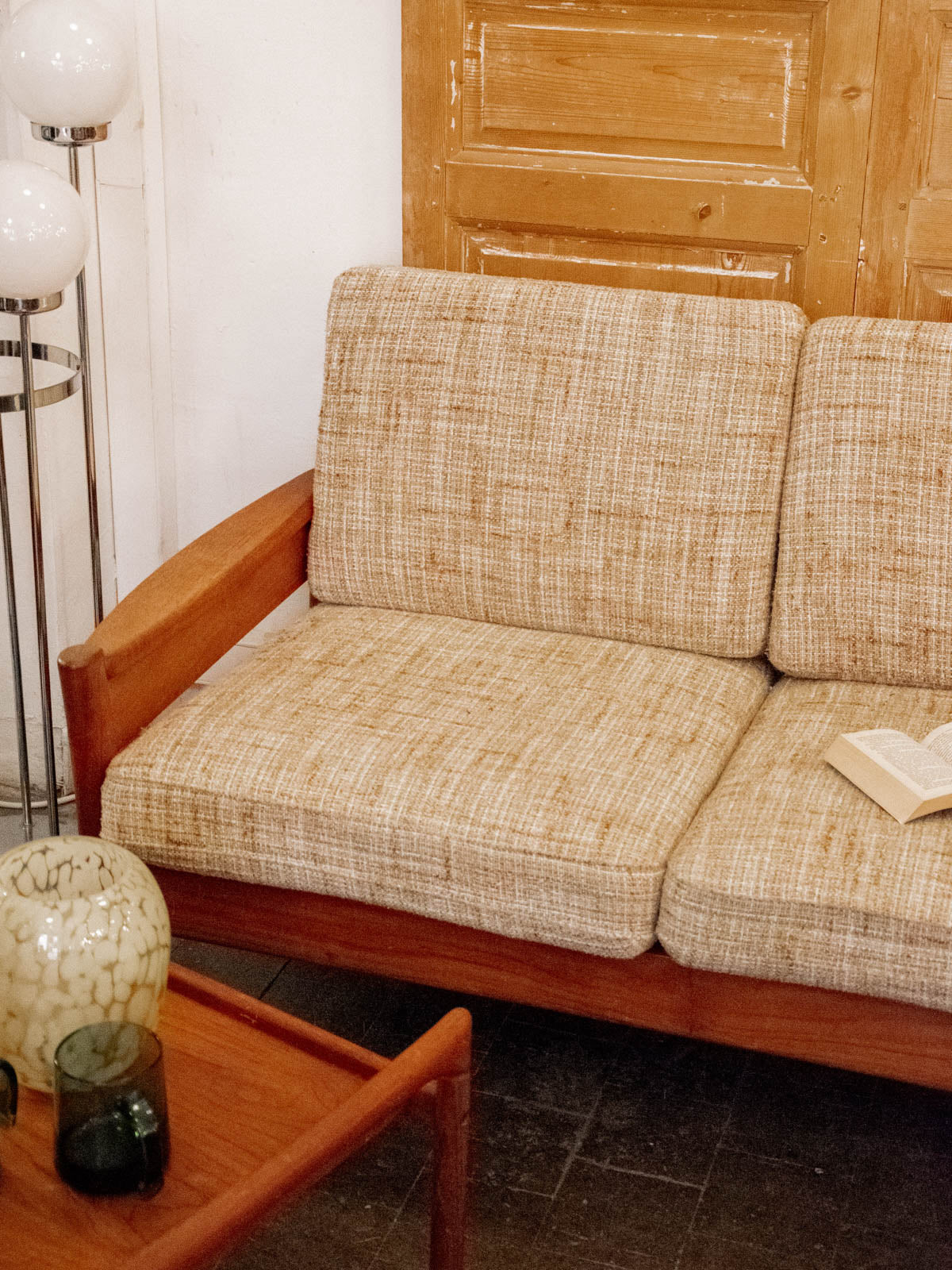 Découvrez cette petite banquette au charme indéniable, conçue avec une structure en bois massif de parfait état. Ses coussins d'assise et de dossier, habillés d'un tissu élégant, offrent un confort optimal pour vos moments de détente. Idéale pour agrémenter votre intérieur, elle allie style et fonctionnalité pour s'adapter à tous les espaces. Ne manquez pas l'opportunité d'ajouter cette pièce au caractère authentique à votre décoration.