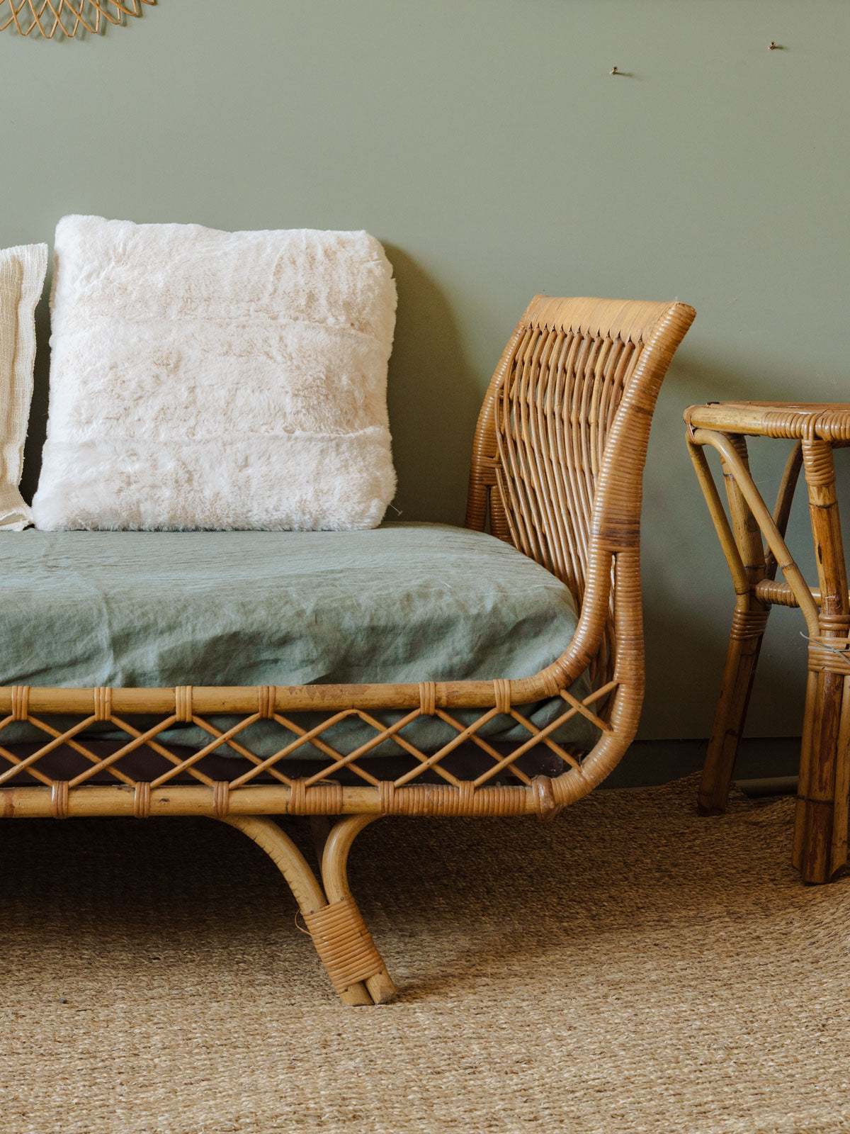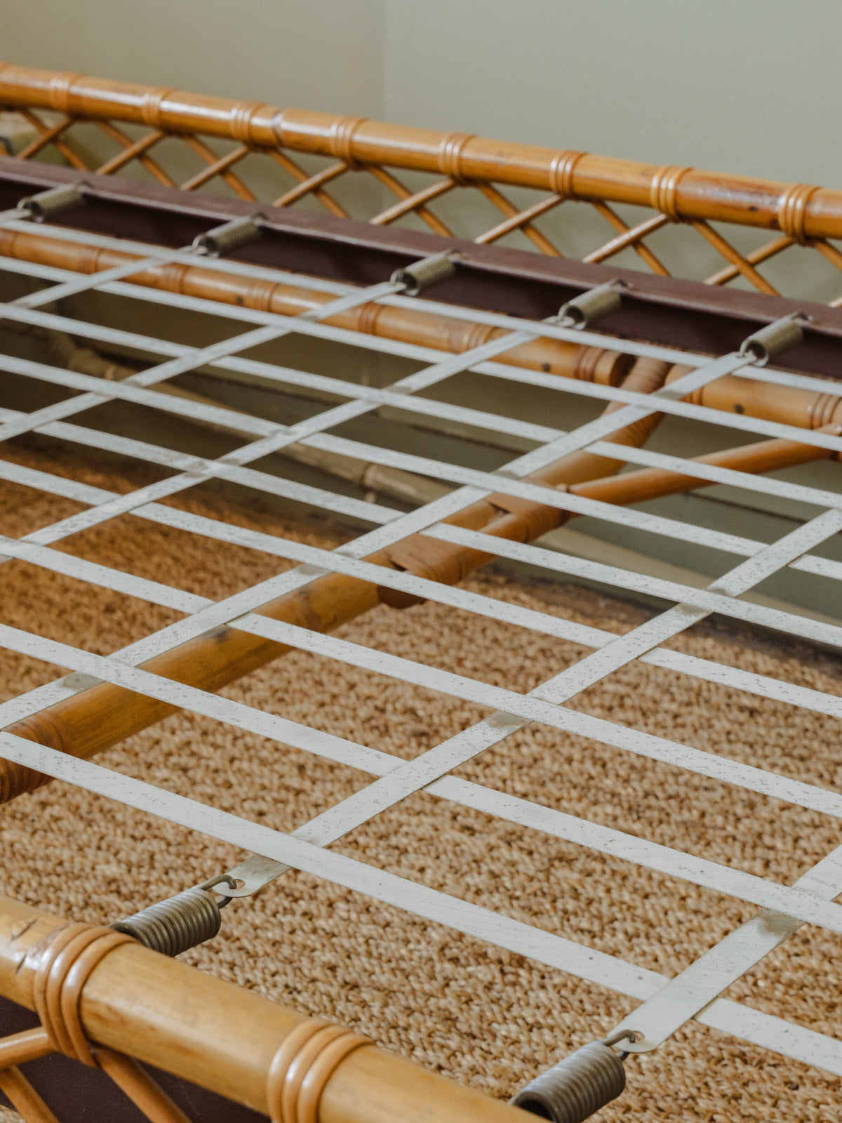 Découvrez notre élégante banquette en rotin des années 1960, un véritable clin d'œil au charme rétro. Parfaite pour ajouter une touche vintage à votre intérieur, cette pièce polyvalente peut également servir de couchage d'appoint pour vos invités. Son design intemporel et sa robustesse en font un meuble à la fois pratique et esthétique, idéal pour compléter votre décoration. Offrez-vous une ambiance chaleureuse et accueillante avec cette banquette qui allie style et fonctionnalité.
