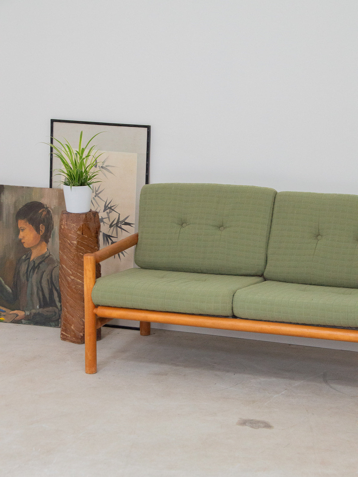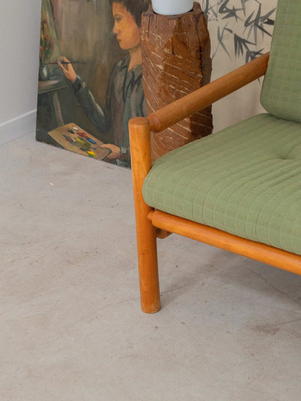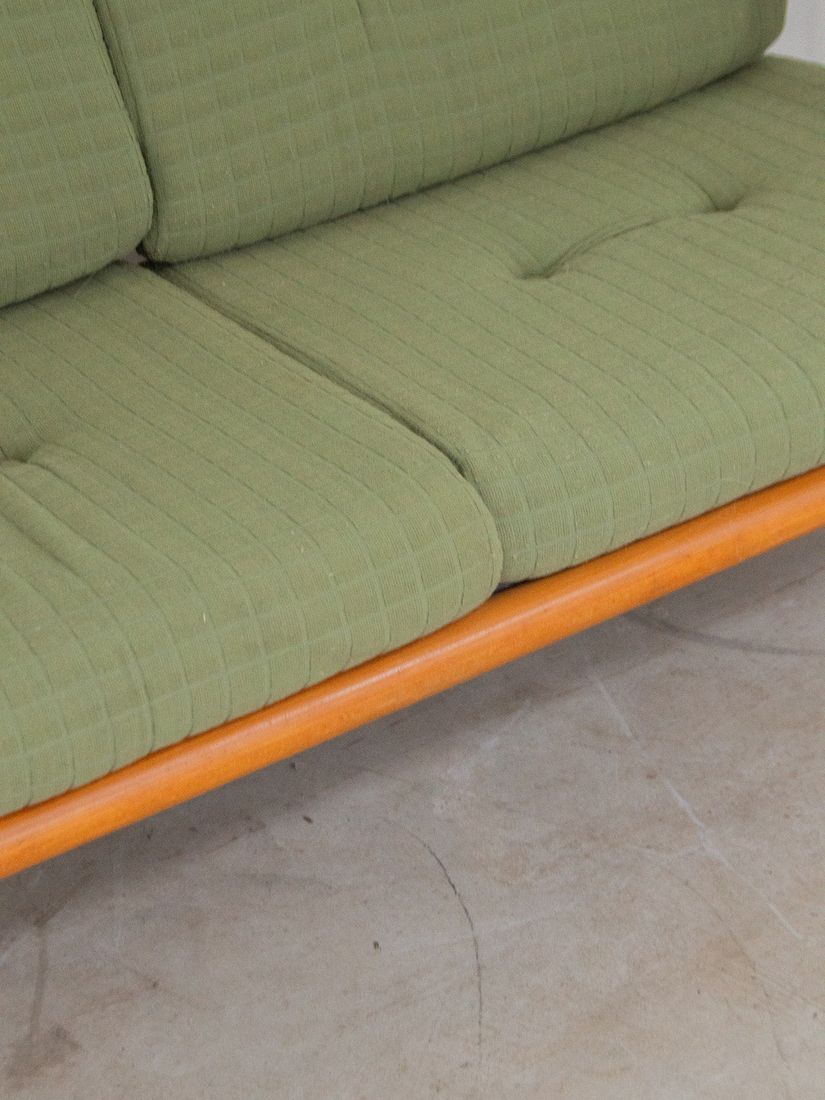 Découvrez cette banquette 2 places en tissu vert, idéale pour apporter une touche de confort et de fraîcheur à votre intérieur. Sa structure en bois clair aux lignes courbées offre une élégance discrète et une sensation de légèreté, tout en s'intégrant parfaitement dans différents styles de décoration. Le tissu doux invite à la détente, créant un espace cosy et accueillant. Parfaite pour votre salon, hall d'entrée ou coin lecture, cette banquette allie confort, esthétisme et modernité.