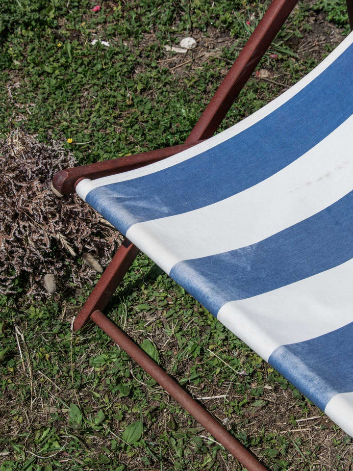Découvrez une chilienne pleine de charme, au look vintage qu’on adore. Sa structure en bois et sa toile à rayures bleues et blanches lui donnent une allure intemporelle, parfaite pour se prélasser dedans comme dehors. Quelques marques du temps et une légère fissure témoignent de son vécu sans nuire à son confort. Une belle pièce à adopter pour des moments de détente stylés.