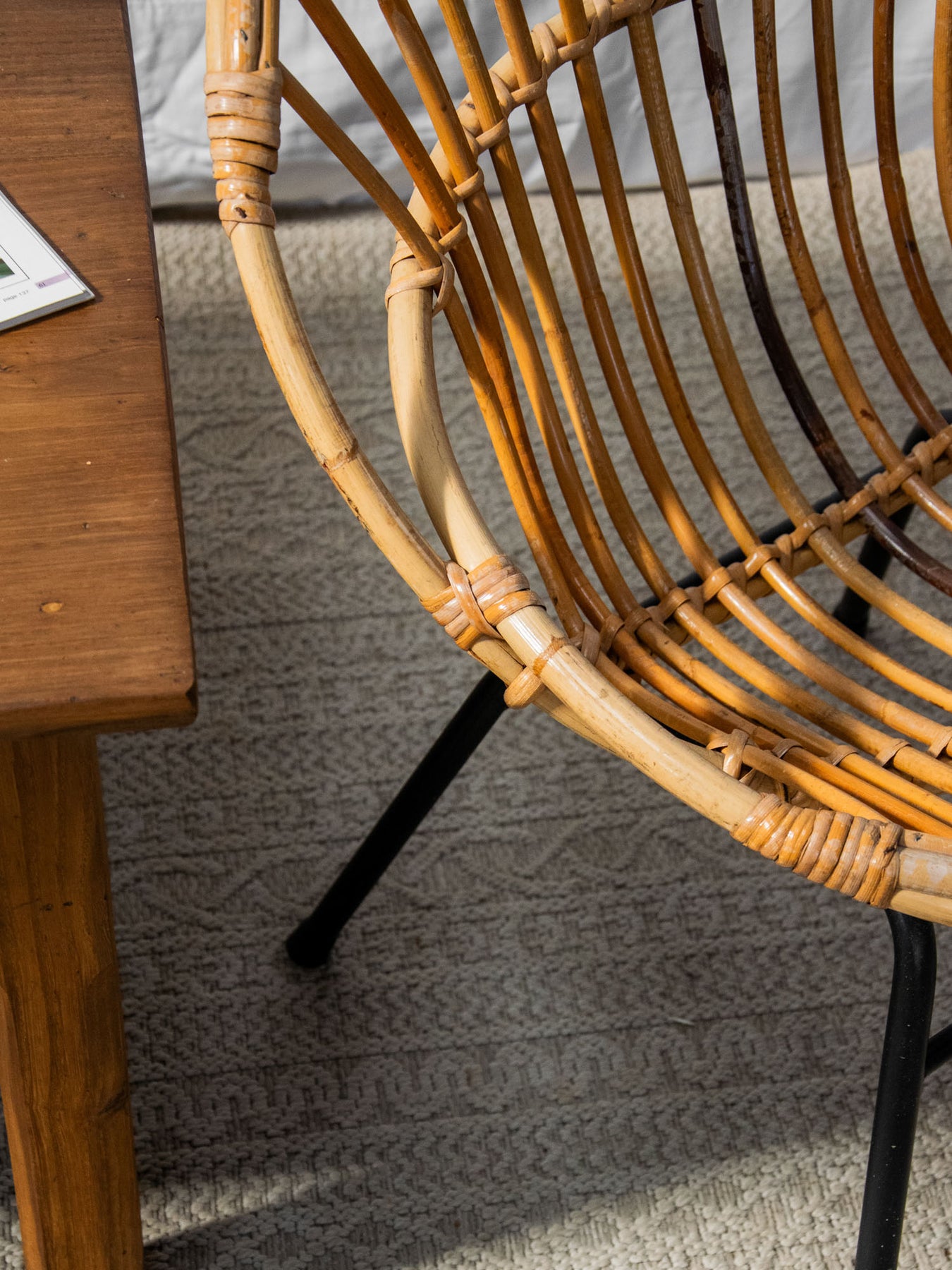 Découvrez notre fauteuil en rotin au dossier haut, alliant confort et élégance. Sa charmante assise ronde et ses courbes arrondies dans le dossier offrent un soutien optimal, tandis que les pieds en métal apportent une touche moderne et légère. Avec son design aéré et raffiné, ce fauteuil s'intégrera parfaitement dans votre intérieur tout en garantissant un moment de détente inégalé. Idéal pour sublimer votre salon ou votre terrasse, il est à la fois pratique et esthétique.