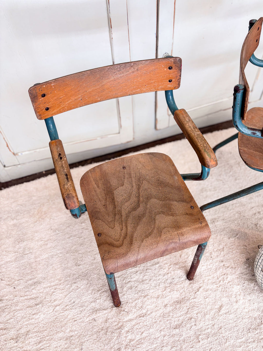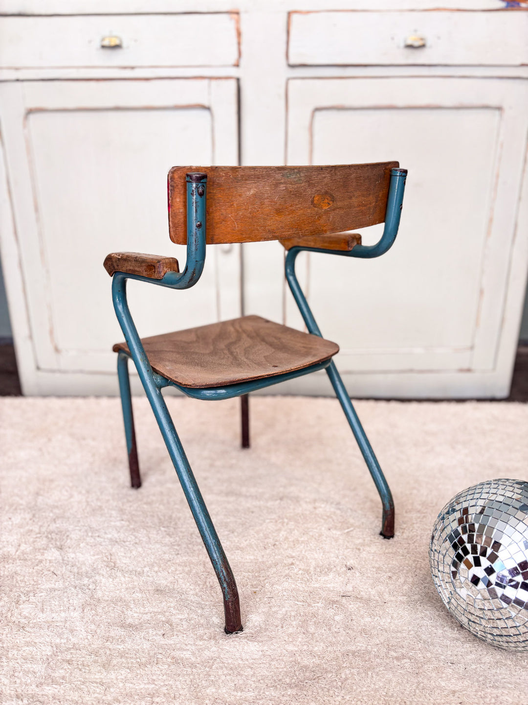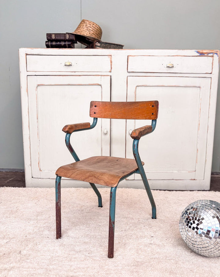 Découvrez ces charmantes anciennes chaises d'école, alliant une structure en métal robuste à une assise et un dossier en bois chaleureux. D'inspiration vintage, elles apportent une touche d'authenticité à tout intérieur. Disponibles en trois exemplaires, ces chaises sont idéales pour créer un espace de travail cosy ou un coin repas convivial. Profitez de leur patine unique qui témoigne d'histoires passées tout en apportant du caractère à votre décoration.