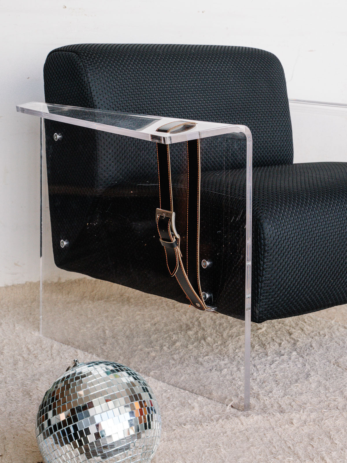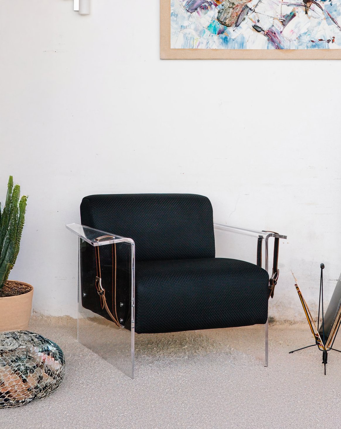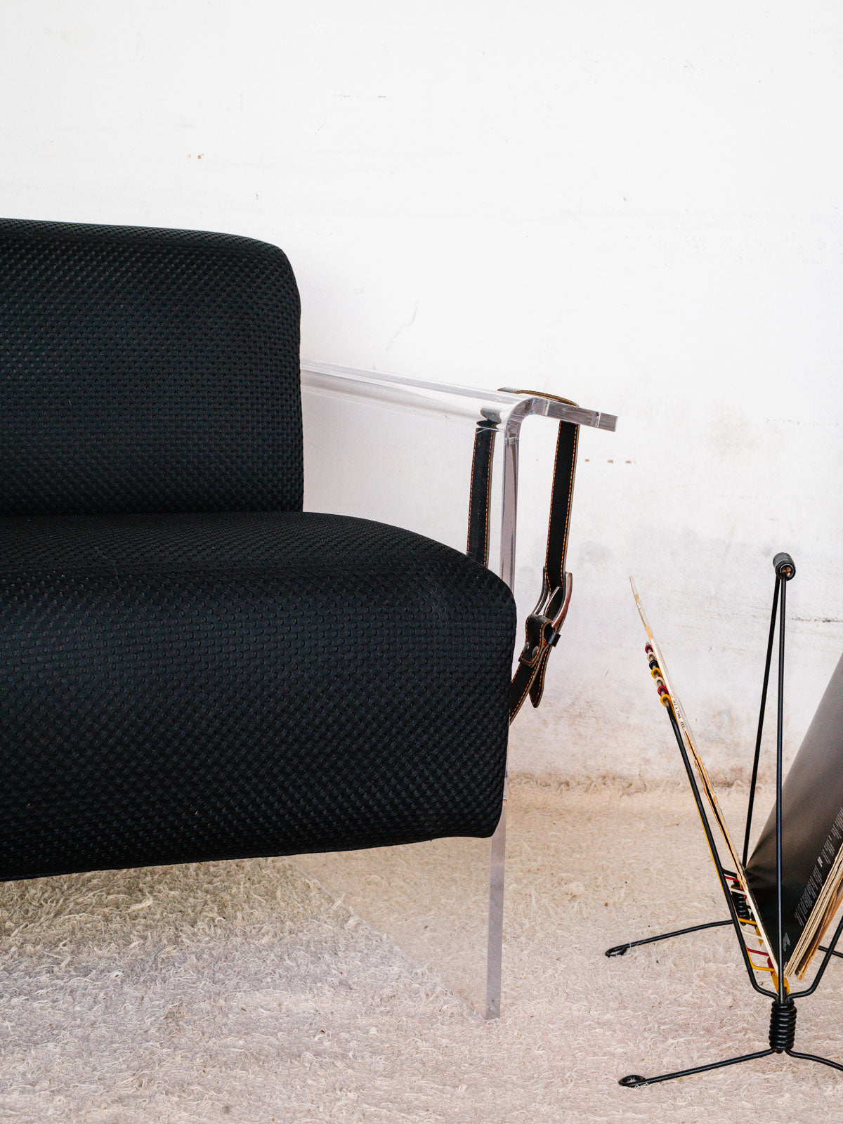 Découvrez le fauteuil de 2021, une pièce maîtresse de design contemporain, fabriquée en Italie avec un savoir-faire exceptionnel. Sa structure en plexiglass apporte une touche de légèreté et de modernité, tandis que les deux sangles en cuir ajoutent une note d'élégance. L'assise et le dossier en tissu texturé noir, subtilement rembourrés en mousse, offrent un confort inégalé. Idéal pour sublimer votre décoration intérieure, ce fauteuil allie esthétique et fonctionnalité.
