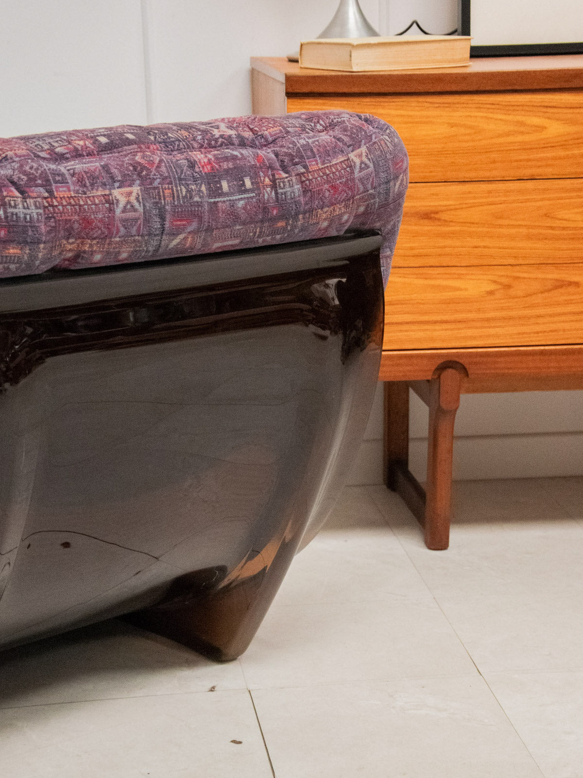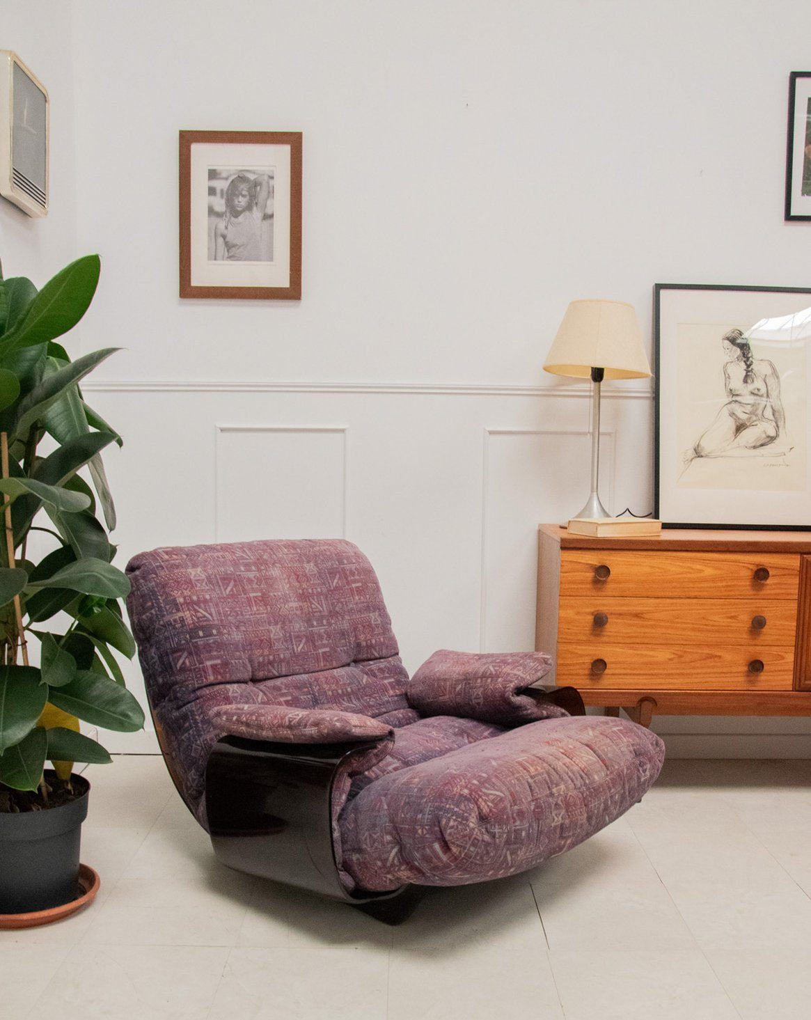 Découvrez le fauteuil Marsala vintage, une pièce emblématique des années 80 signée Michel Ducaroy pour Ligne Roset. Sa structure en plexiglass fumé thermoformé allie modernité et légèreté, tandis que le tissu au motif dans les tons prune apporte une touche d'audace à votre intérieur. Avec son assise confortable, ce fauteuil n'est pas seulement un objet design, mais également un invitation à la détente. Un incontournable pour les amateurs de mobilier rétro et de style contemporain.