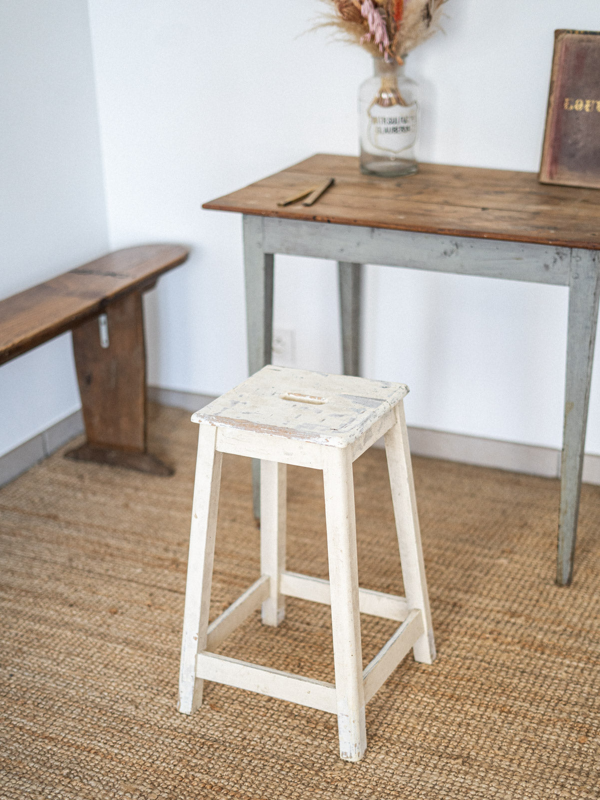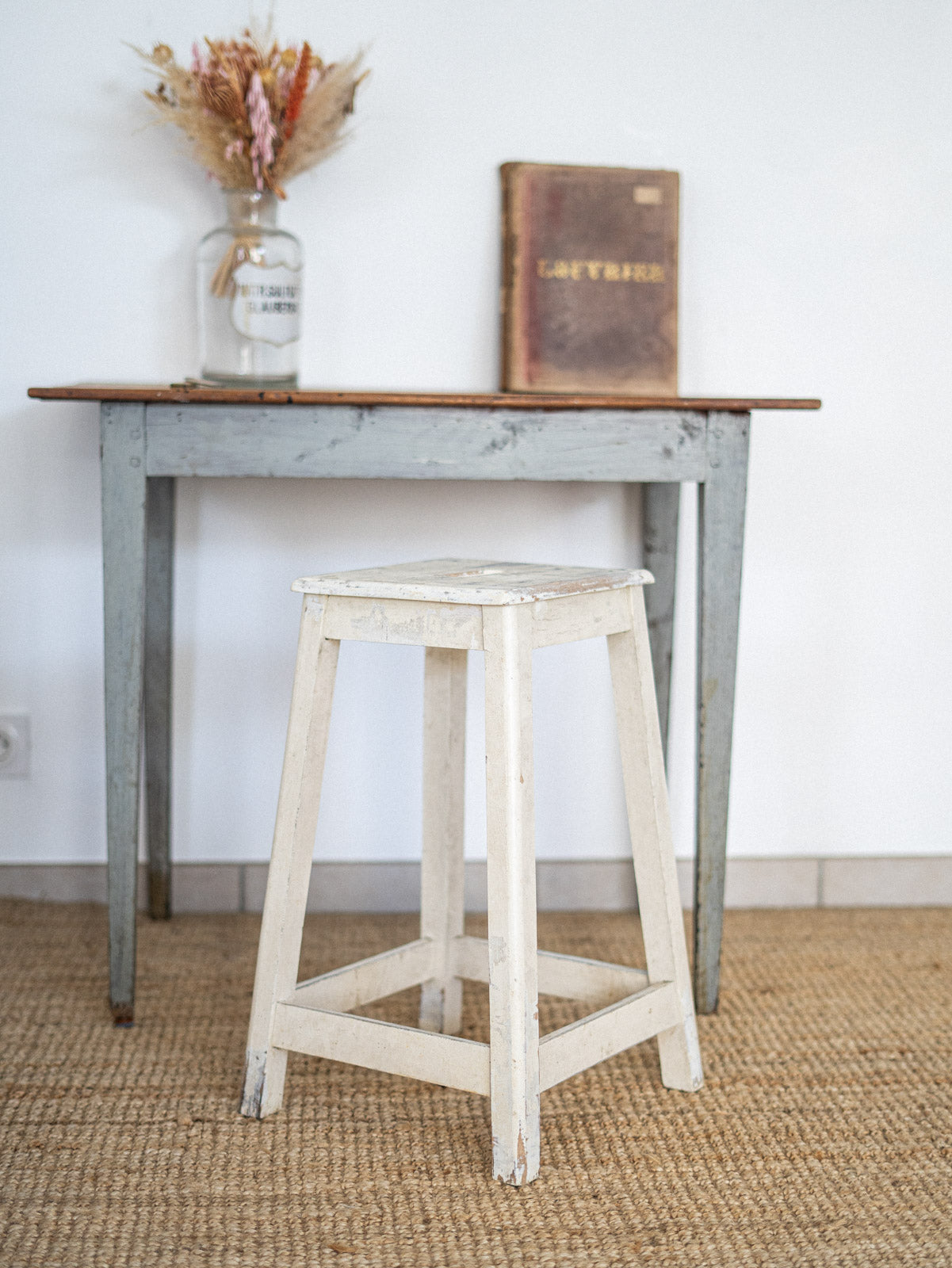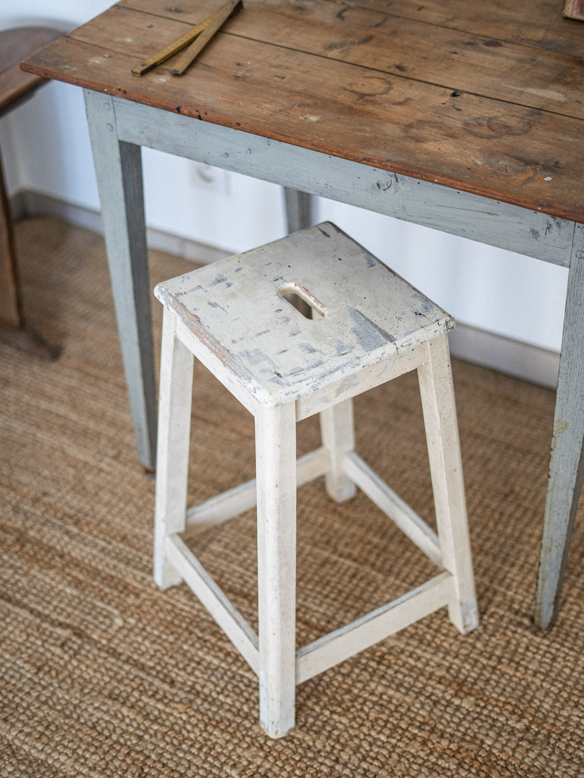 Ajoutez une touche de charme à votre intérieur avec notre tabouret d'atelier en bois patiné blanc. Ce meuble au design vintage arbore une finition soignée qui met en valeur sa texture naturelle, tout en offrant une assise confortable et durable. Parfait pour compléter votre décoration dans un style authentique, ce tabouret saura s’adapter à tous vos espaces, que ce soit dans une cuisine, un bureau ou un coin lecture. Un incontournable pour allier caractère et praticité !