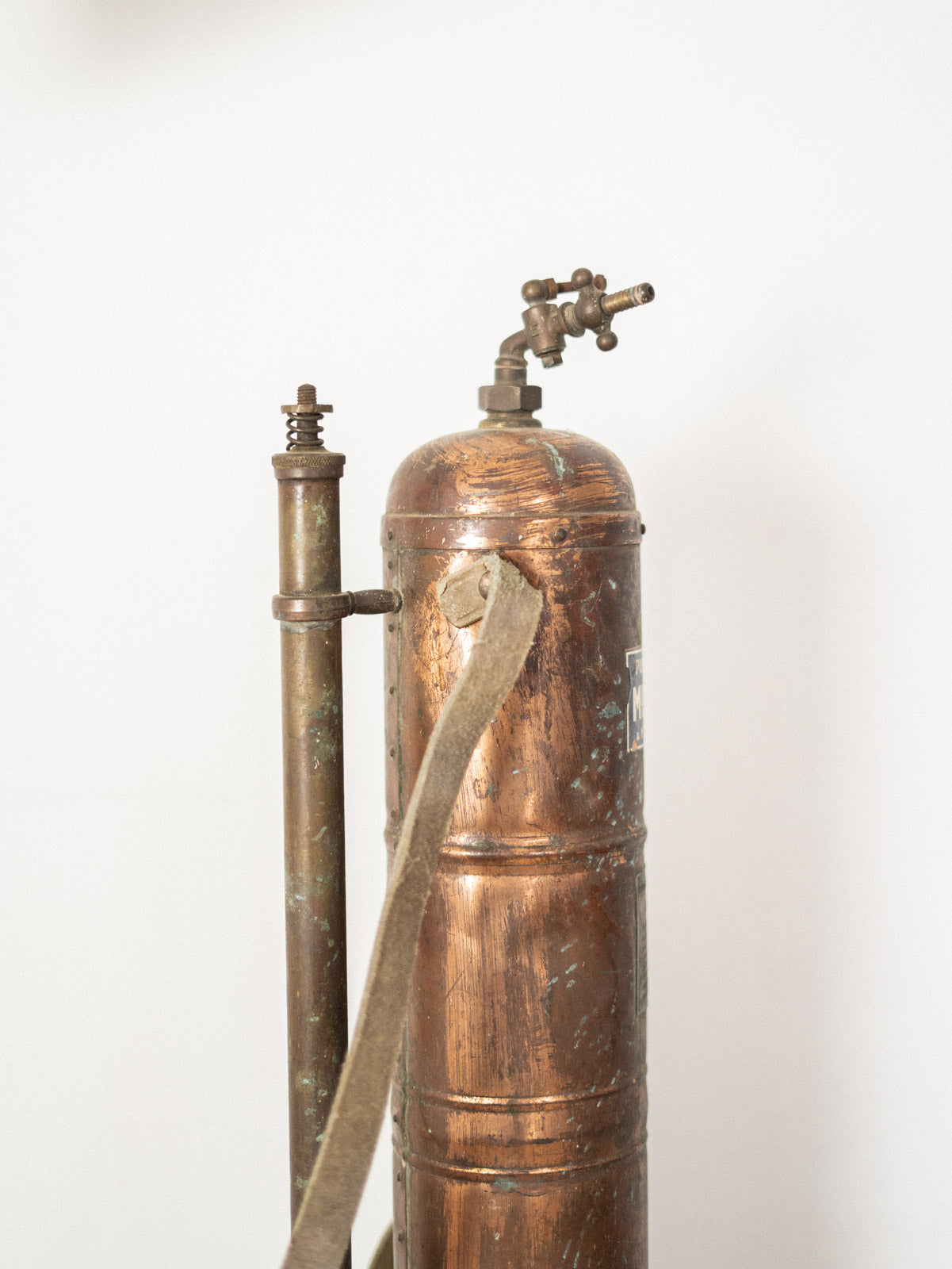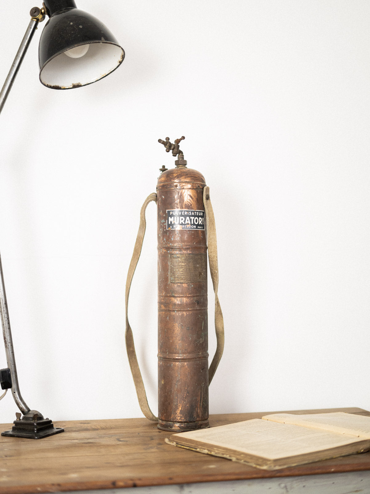 Découvrez notre pulvérisateur en cuivre plein de caractère, doté d’une anse en cuir patiné qui allie authenticité et raffinement. Témoignage du savoir-faire d’antan, il servait autrefois à vaporiser les plantes avec délicatesse. Aujourd’hui, il trouve naturellement sa place comme bel objet décoratif, apportant une note de charme et d’histoire à votre intérieur. Sa finition en cuivre vieilli lui confère une patine unique, faisant de cette objet une pièce singulière. Un élément décoratif plein d’âme, idéal pour les amoureux d’authenticité et du beau.