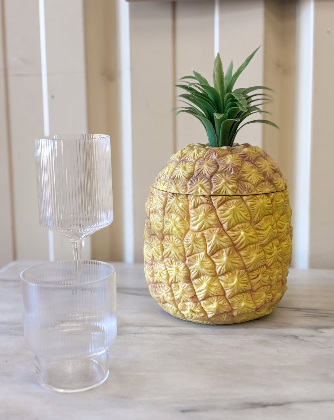Ajoutez une touche rétro à vos soirées avec ce seau à glaçons vintage en forme d'ananas, emblématique des années 70. Fabriqué avec soin, il allie praticité et esthétisme, tout en étant accompagné de sa pince assortie. Parfait pour garder vos boissons au frais, cet accessoire évoque l'élégance des temps passés tout en apportant une note de fraîcheur à vos tables. Un indispensable pour les amateurs de style vintage et de moments conviviaux.