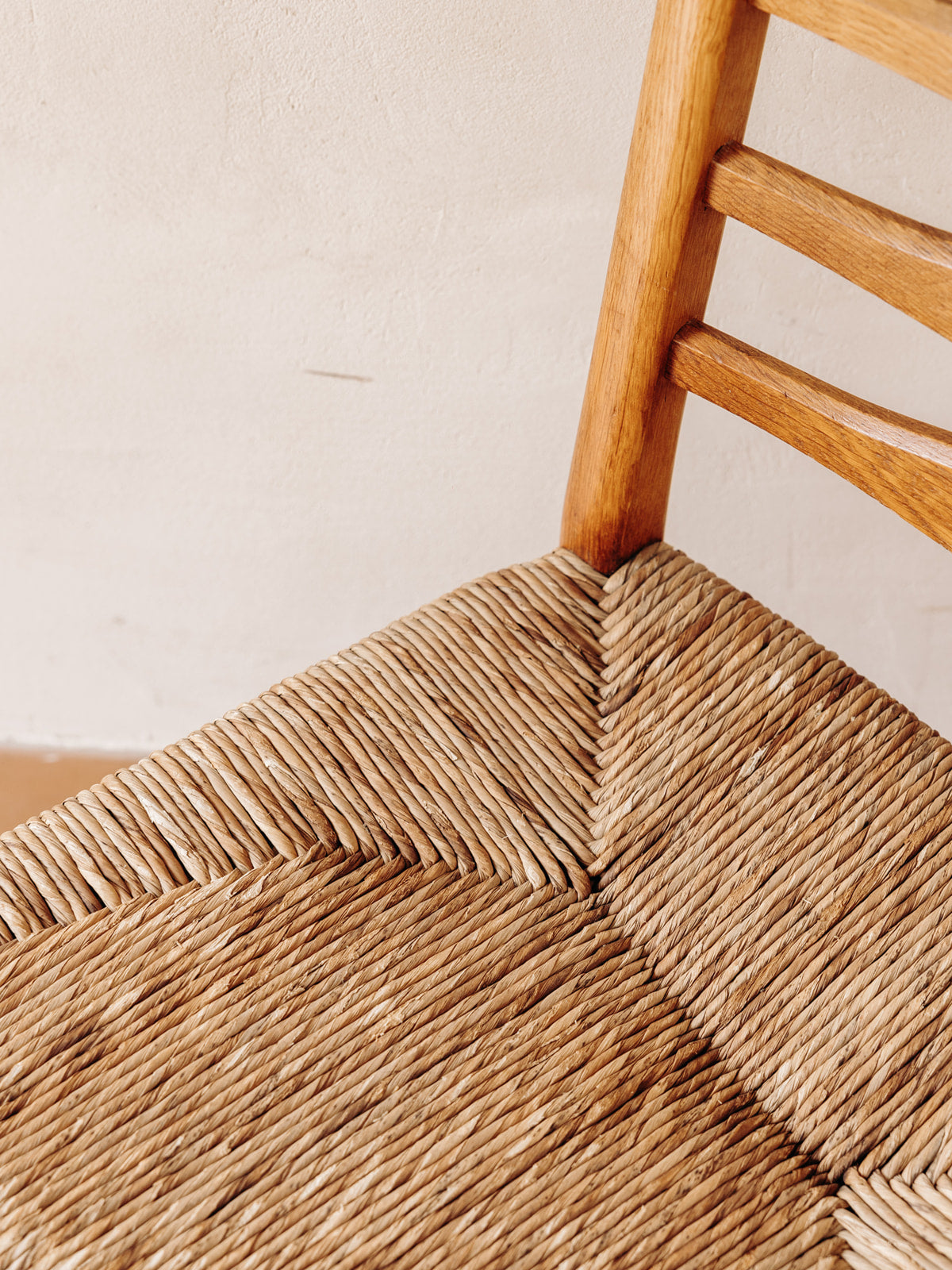 Découvrez cette chaise de style provençale, au dossier haut à échelle et à l'assise paillée, qui allie charme rustique et élégance. Son joli travail d'ébénisterie témoigne du savoir-faire artisanal, parfait pour apporter une touche authentique à votre intérieur. Idéale dans une maison de campagne ou même un intérieur contemporain, elle s’adapte à différents styles de décoration. En superbe état général, elle combine confort et esthétique. Un meuble intemporel, parfait pour ajouter du caractère à votre espace. Vendues à l'unité, 2 exemplaires sont disponibles.