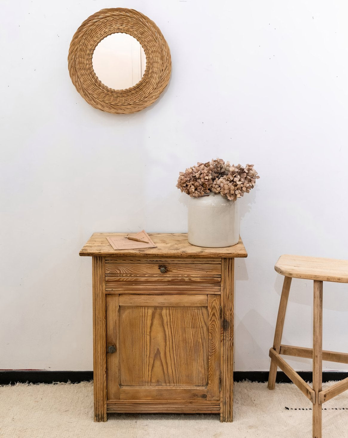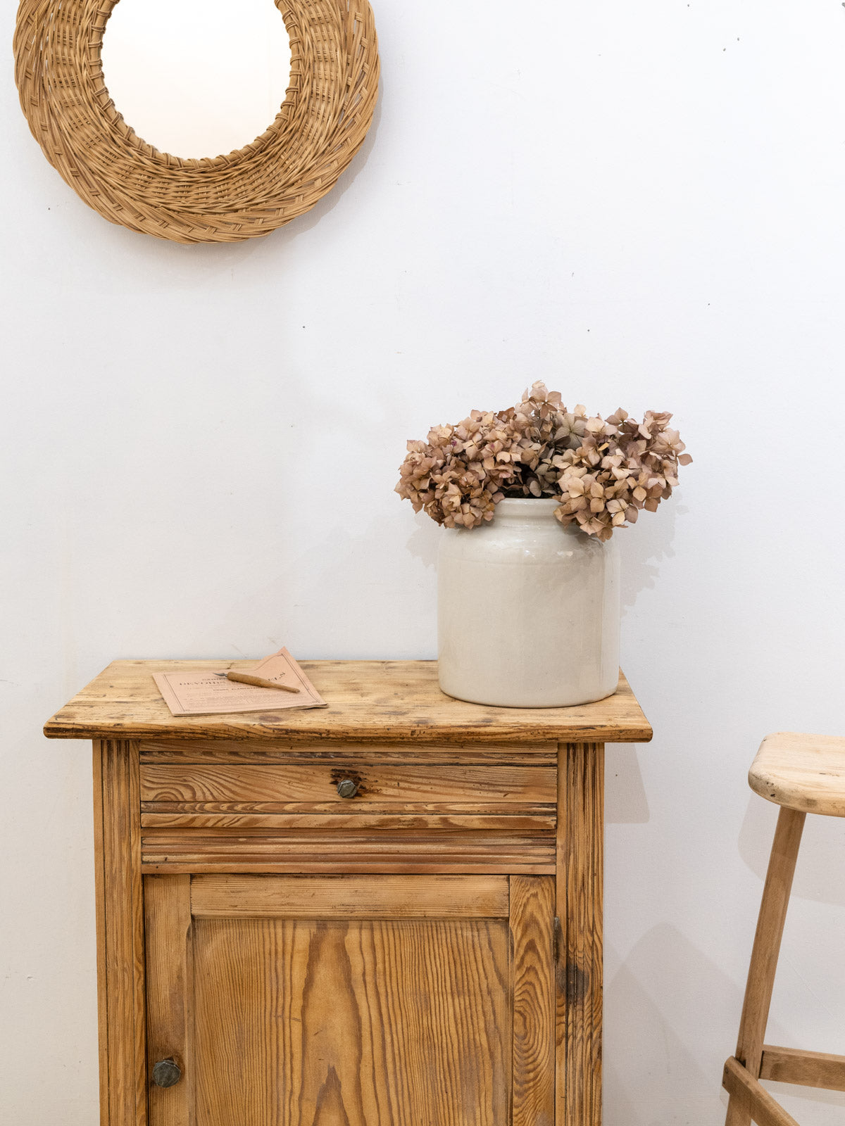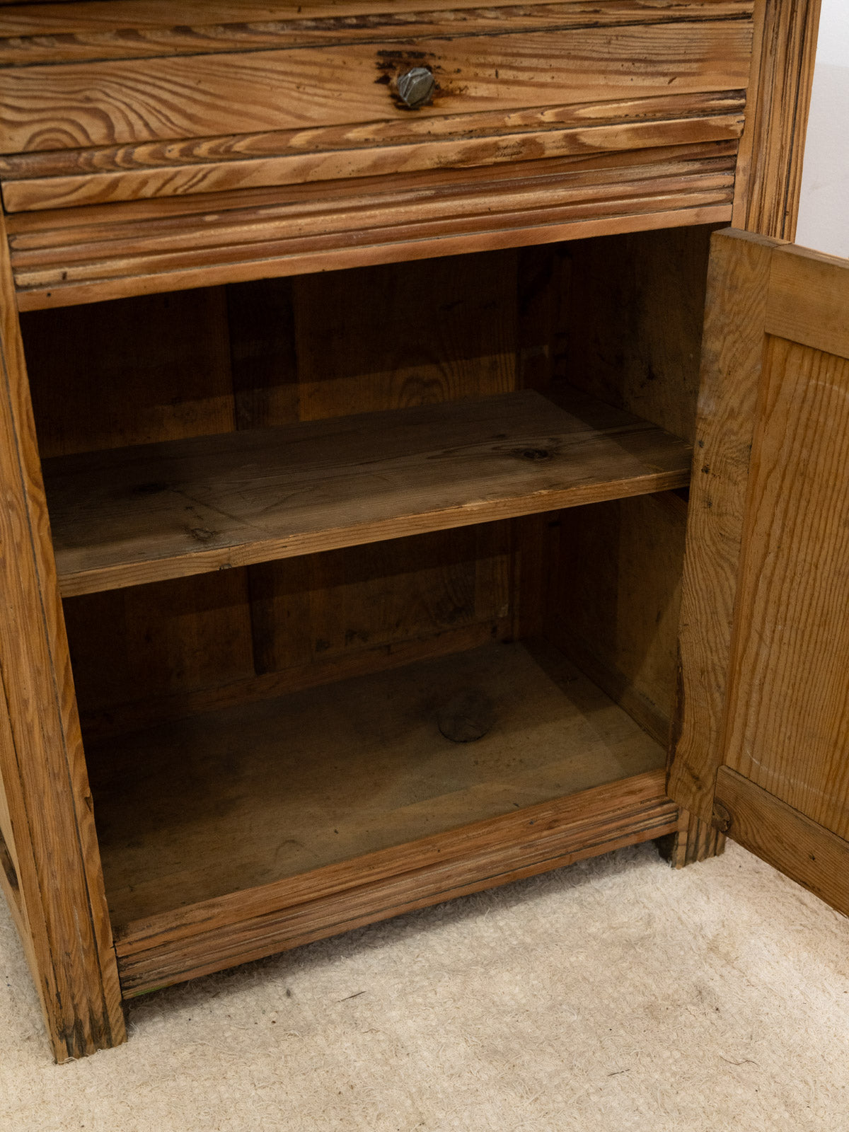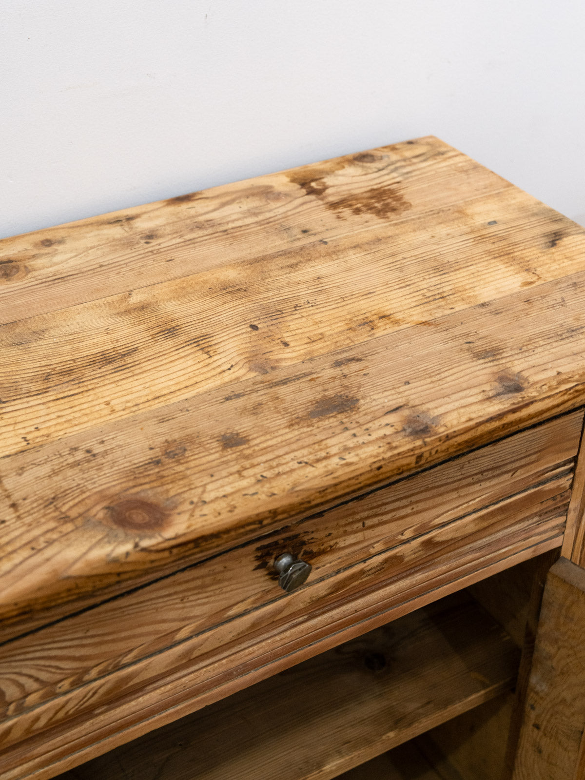 Découvrez ce confiturier en pin brut des années 1930, un véritable témoignage du charme d'antan. Doté d'une porte et d'un tiroir, il allie praticité et esthétisme avec sa poignée vintage qui ajoute une touche d'authenticité. Sa finition naturelle met en valeur la beauté du bois tout en s'intégrant harmonieusement dans tous les intérieurs. Parfait pour conserver vos confitures et autres petites denrées, ce meuble apporte une note chaleureuse à votre cuisine.