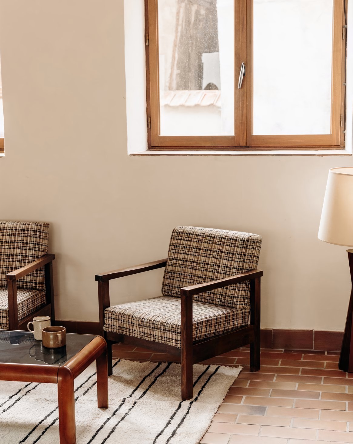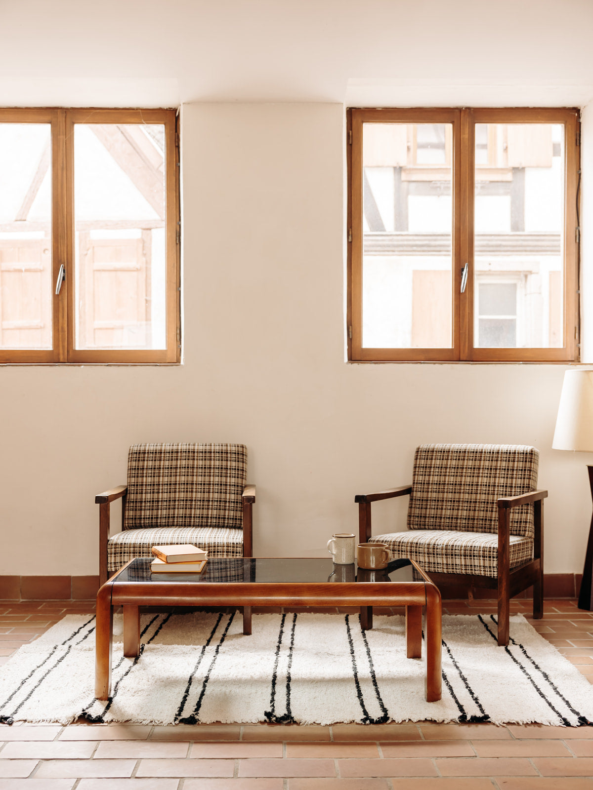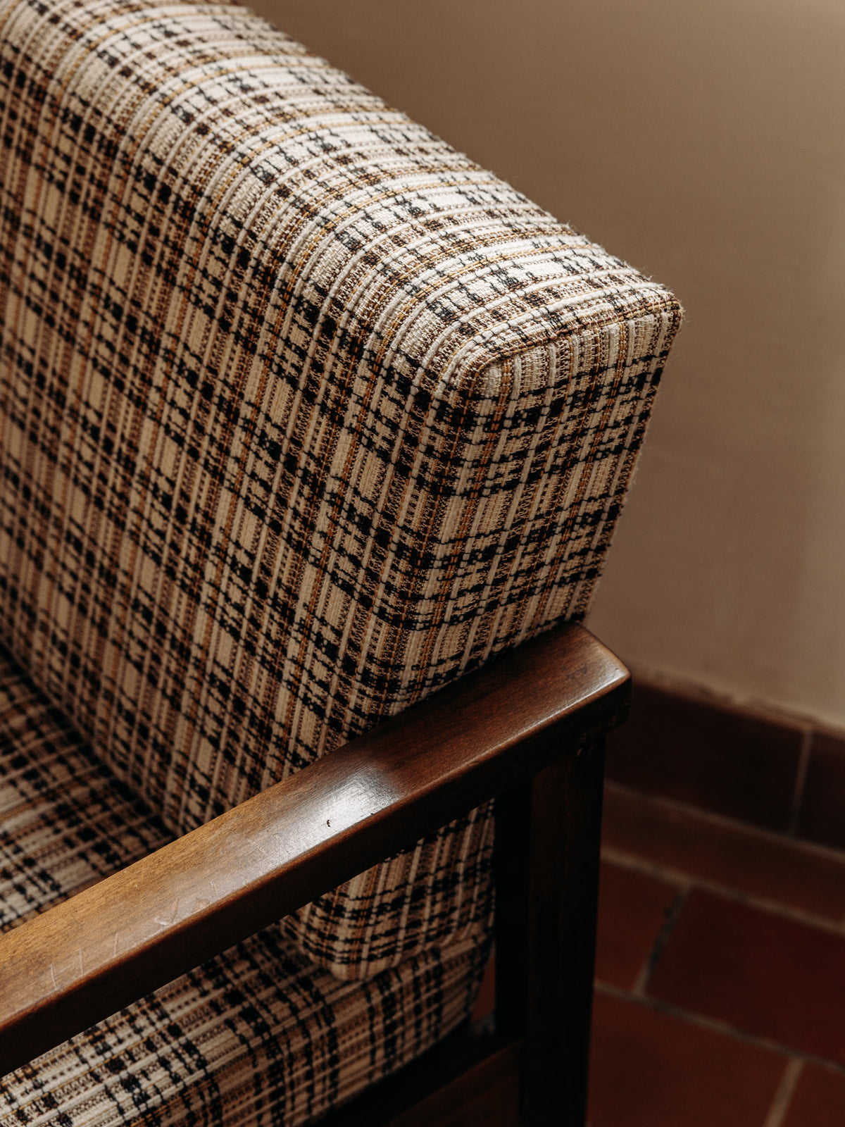 Coup de coeur pour ce fauteuil bas des années 60, en hêtre teinté et revêtu d'un tissu tweed à carreaux, s'inspire du design épuré des créations du fabricant français Baumann. Son style vintage, à la fois unique et intemporel, apportera une touche de caractère à votre intérieur. Que ce soit dans un salon ou une chambre, il saura enrichir votre espace tout en alliant confort et esthétique. Une pièce subtile et élégante qui trouve sa place dans tout environnement. Vendus séparément, deux exemplaires disponibles.