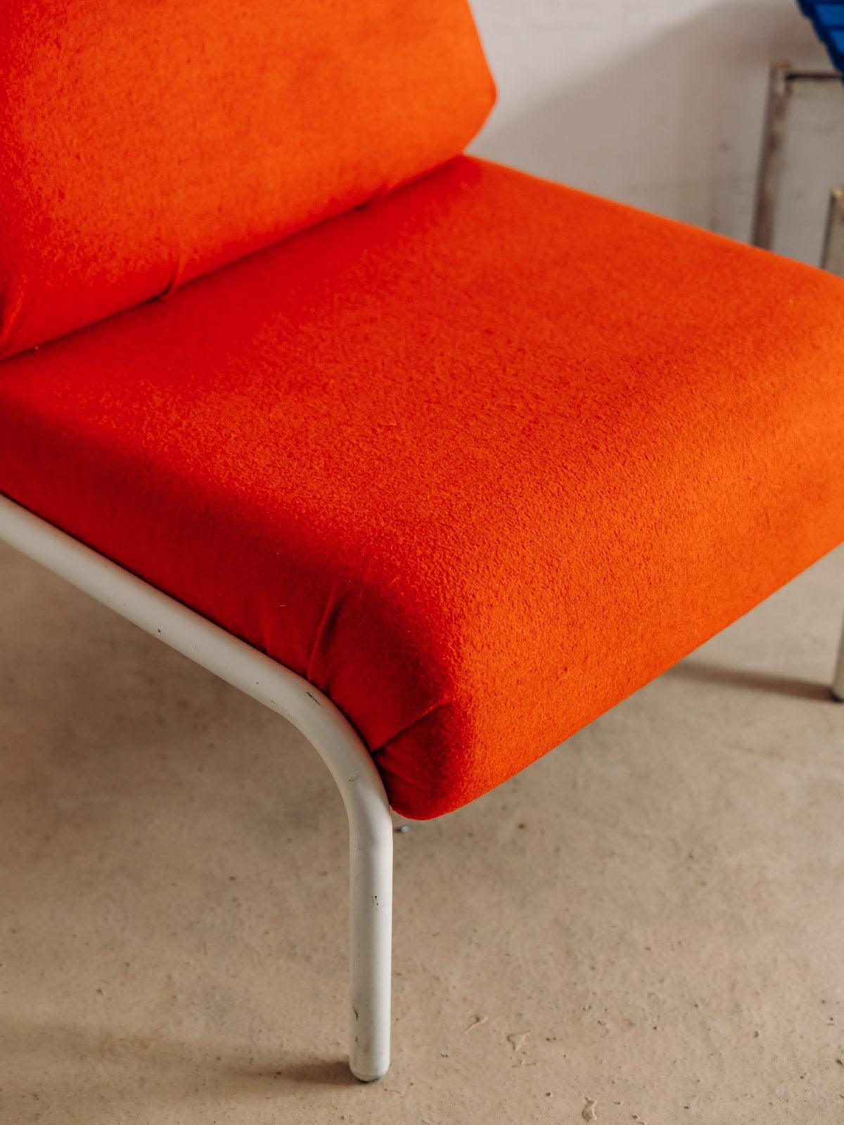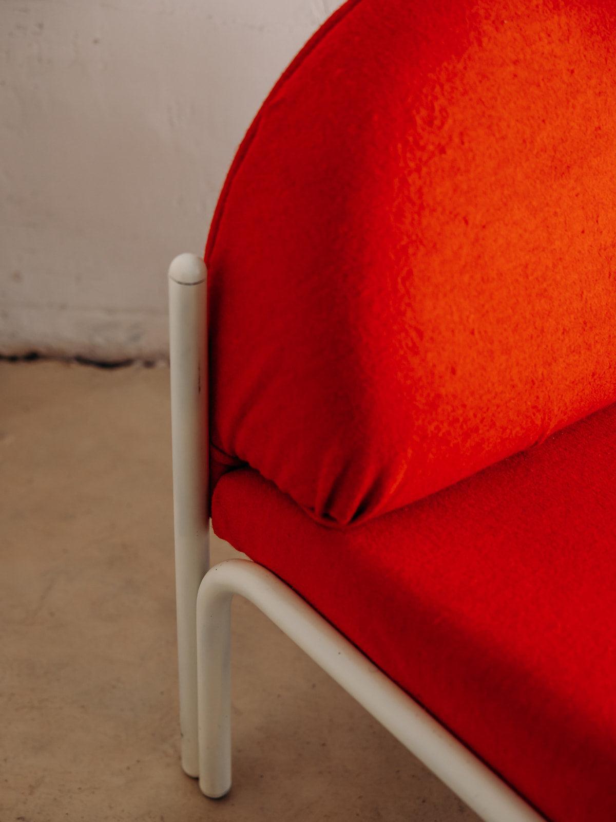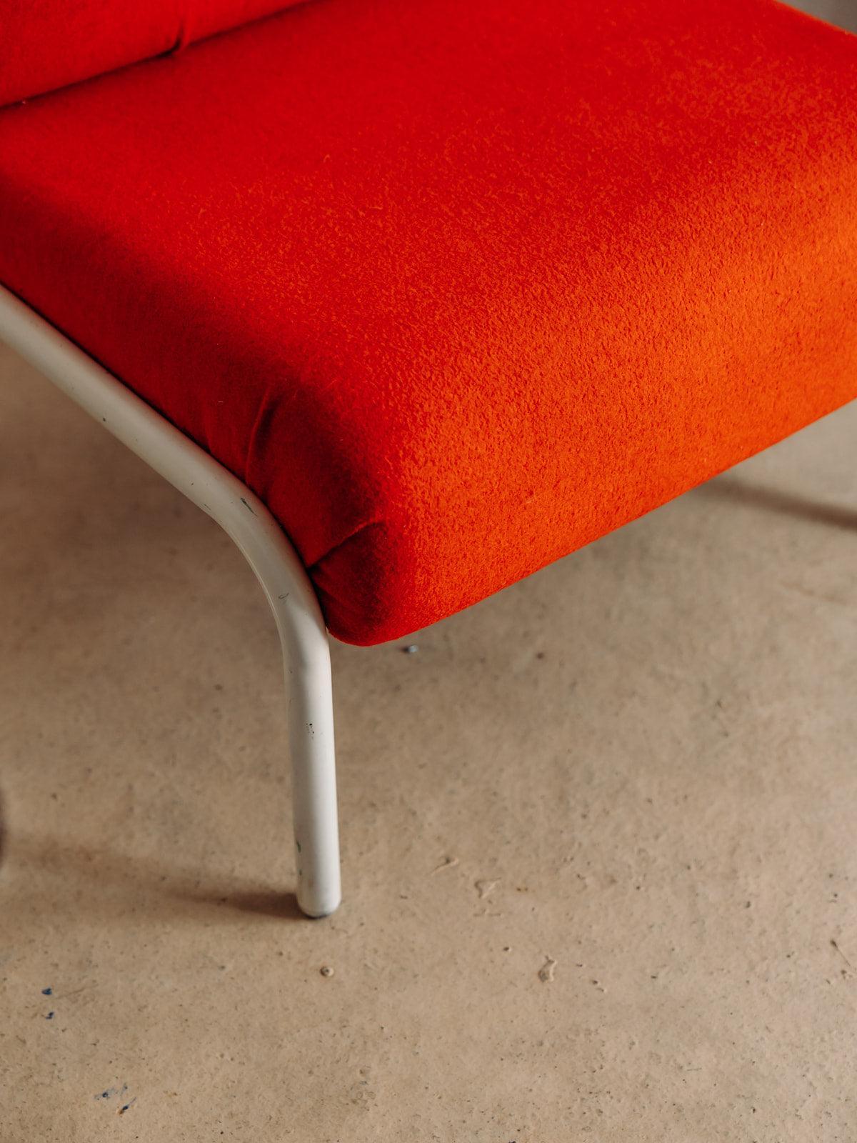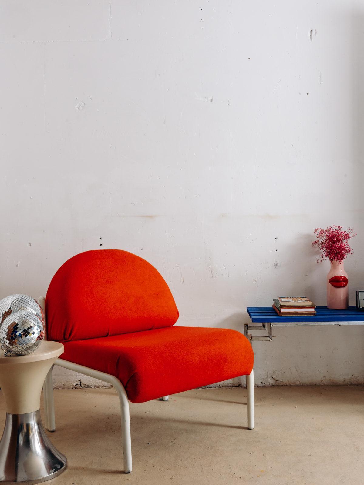 Ce fauteuil Sauvignet est la pièce à avoir pour un salon design à souhait. Nous adorons ses jolies lignes tout en rondeur pleinement vintage et le contraste de sa structure blanche avec son assise en tissu rouge orangé. Jakob prend place aux côtés d'autres meubles chinés ou dans un univers plus moderne pour créer le parfait mix de neuf et de seconde main. Vendus à l'unité. Deux pièces sont disponibles.