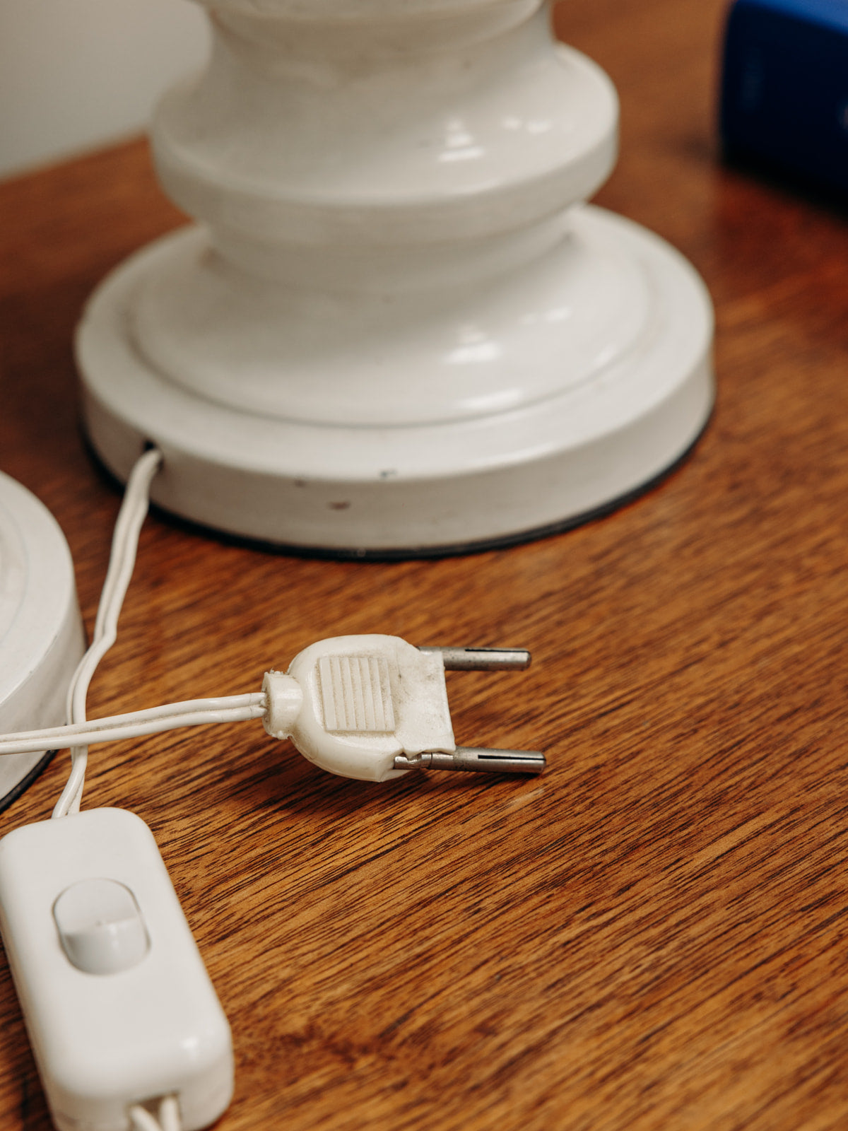 Ajoutez une touche d'élégance organique à votre intérieur avec cette paire de lampes à poser. Leur pied au design fluide en blanc se marie parfaitement avec le globe rond, créant une ambiance douce et accueillante. Pratiques, elles fonctionnent sur prise et sont équipées d'un interrupteur pour une utilisation simplifiée. À noter, quelques traces d'usure qui n'altèrent en rien leur charme. Laissez-vous séduire par ce duo lumineux qui s'intégrera harmonieusement dans votre décoration.