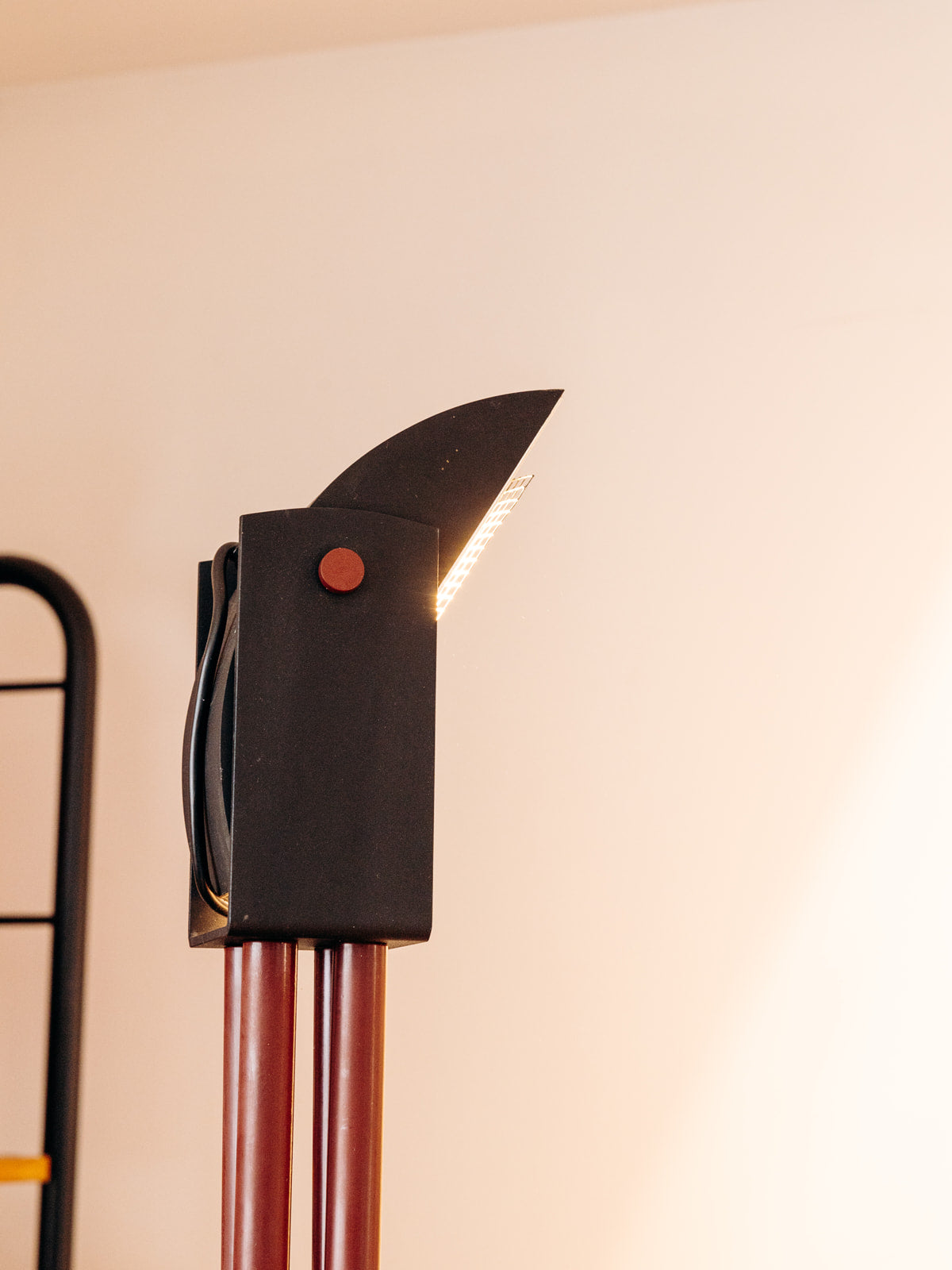 Alerte pépite ! Évoquant l'élégance audacieuse des années 80, ce lampadaire style Memphis se distingue par ses lignes géométriques et son contraste saisissant de noir et de bordeaux. Il apporte une touche artistique à votre intérieur tout en offrant un éclairage halogène chaleureux. Ce design italien se fond parfaitement dans un décor moderne ou vintage, faisant de ce lampadaire une pièce maîtresse incontournable.