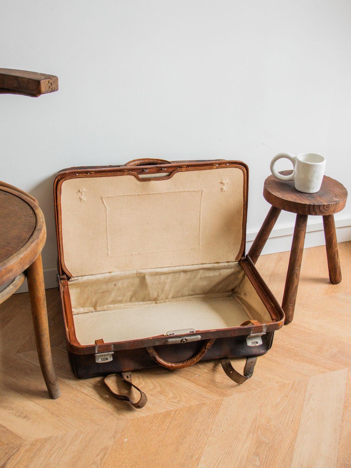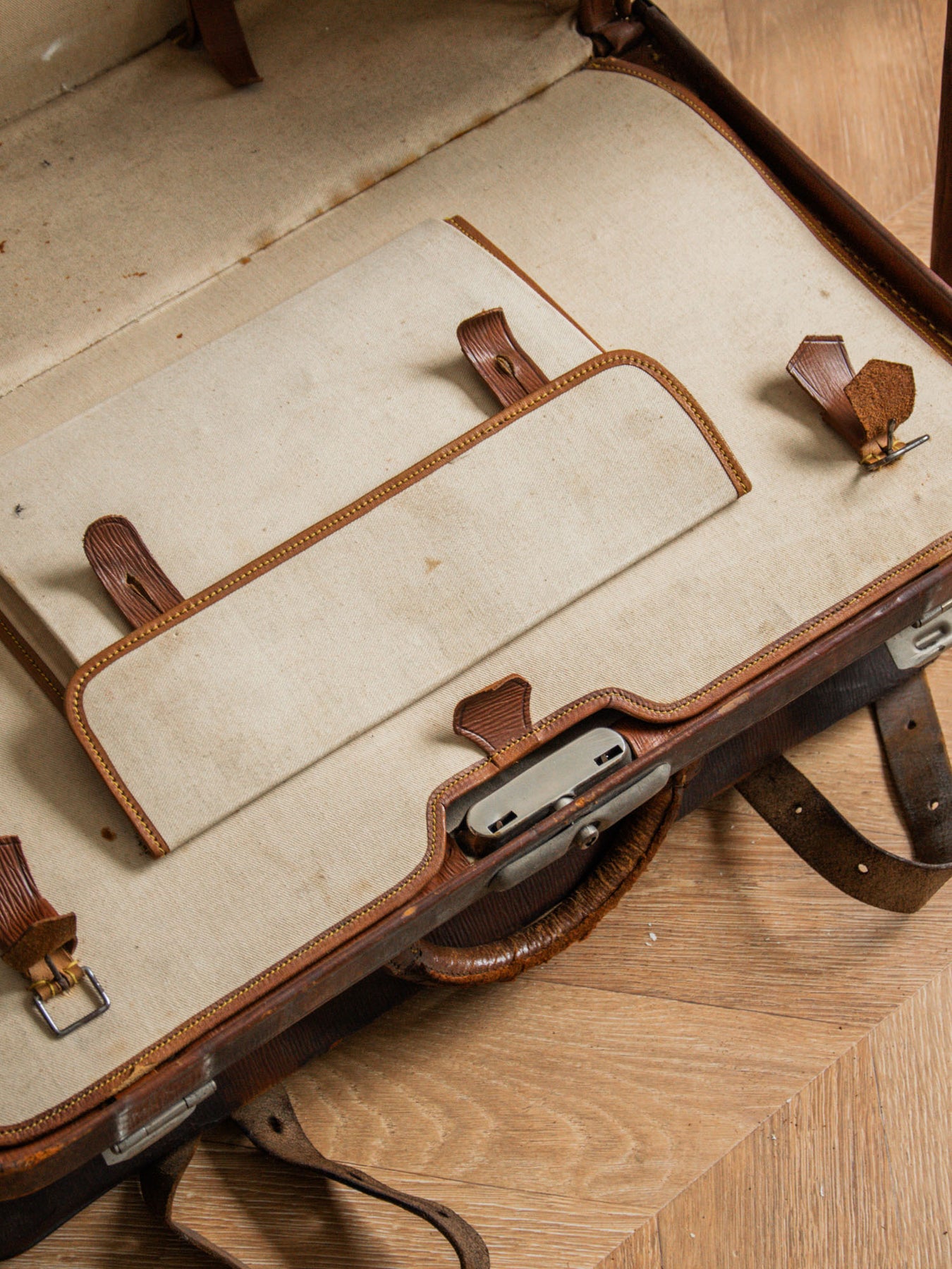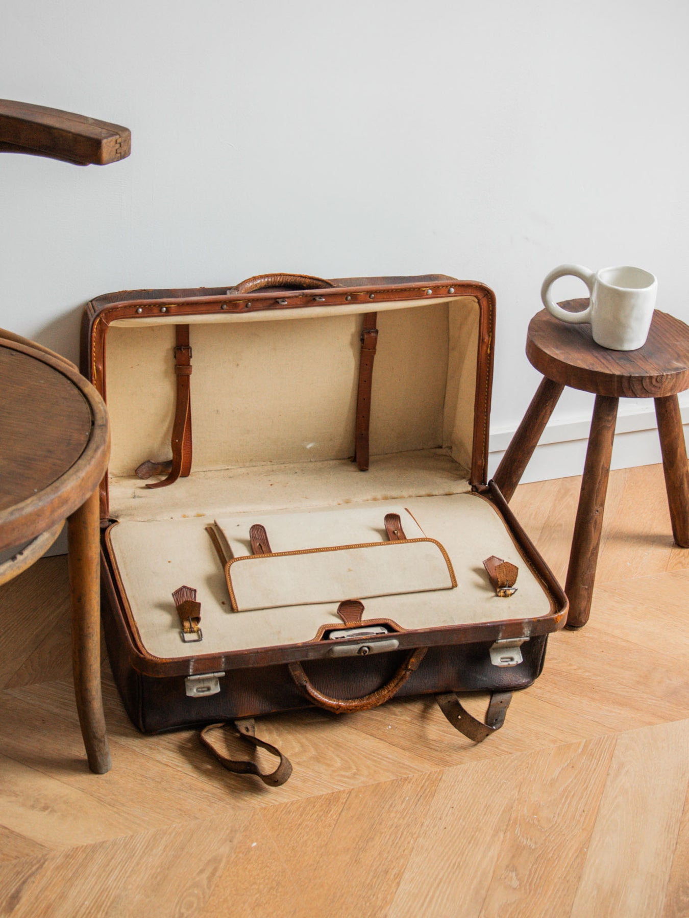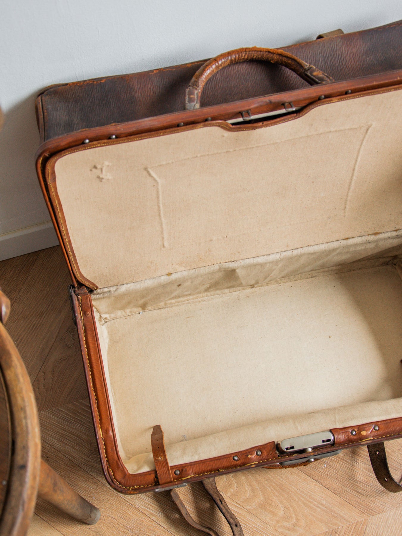 Découvrez cette élégante malle en cuir marron, alliant charme et praticité. Avec ses poignées robustes et accroches pratiques, elle se révèle idéale pour une utilisation quotidienne. Bien que quelques traces d'usure témoignent de son histoire, ses deux compartiments intérieurs offrant un rangement astucieux lui confèrent un charme unique. Un accessoire incontournable pour ajouter une touche vintage à votre décoration tout en restant fonctionnel.