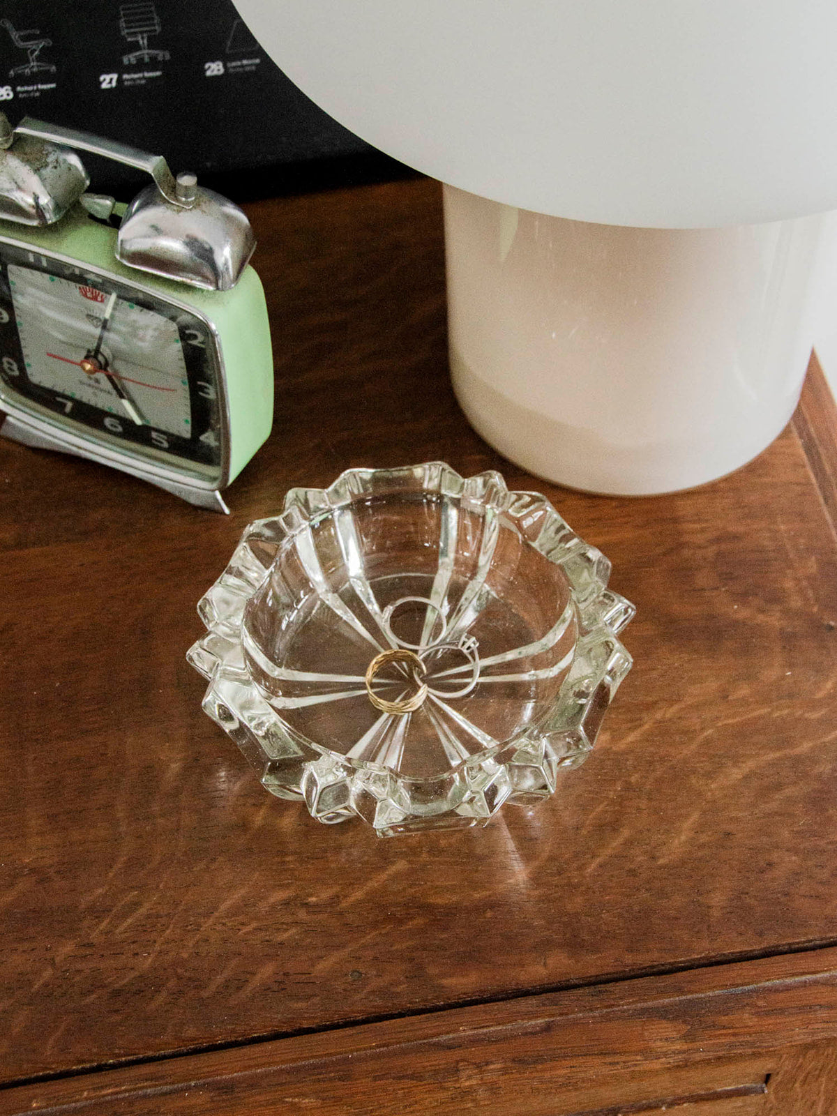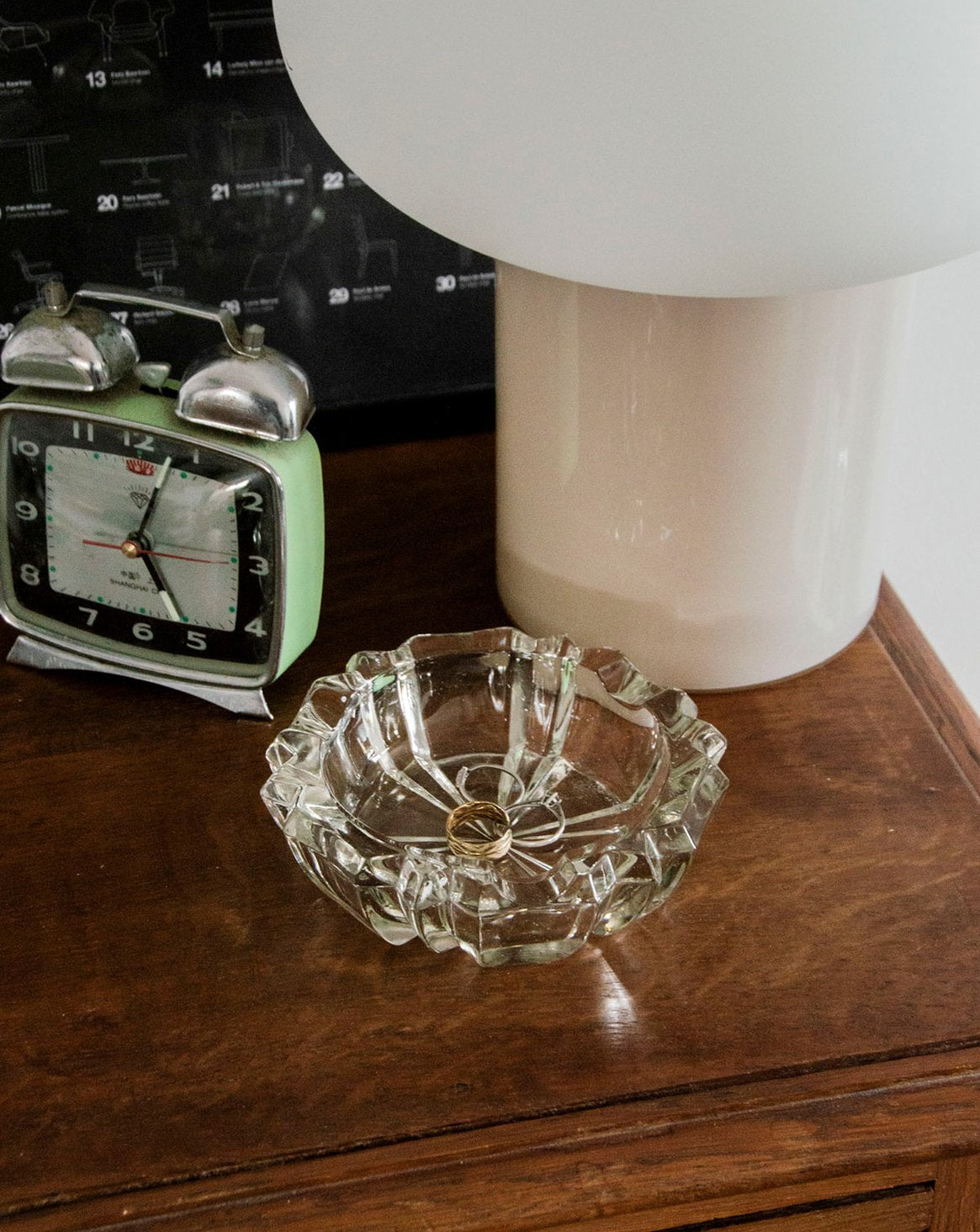 Ce cendrier en verre travaillé a tout du bel objet discret qui fait la différence. Ses détails délicats et son allure intemporelle lui donnent une vraie présence, tandis que les fines rayures racontent son histoire sans lui enlever de charme. À poser sur une table basse ou dans un coin lecture, il ajoute une touche chic et subtile, même sans tabac. Un petit accessoire plein de style, à détourner ou à adopter tel quel.