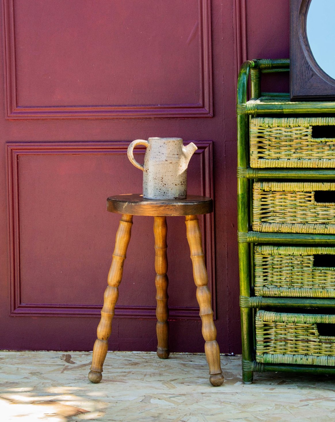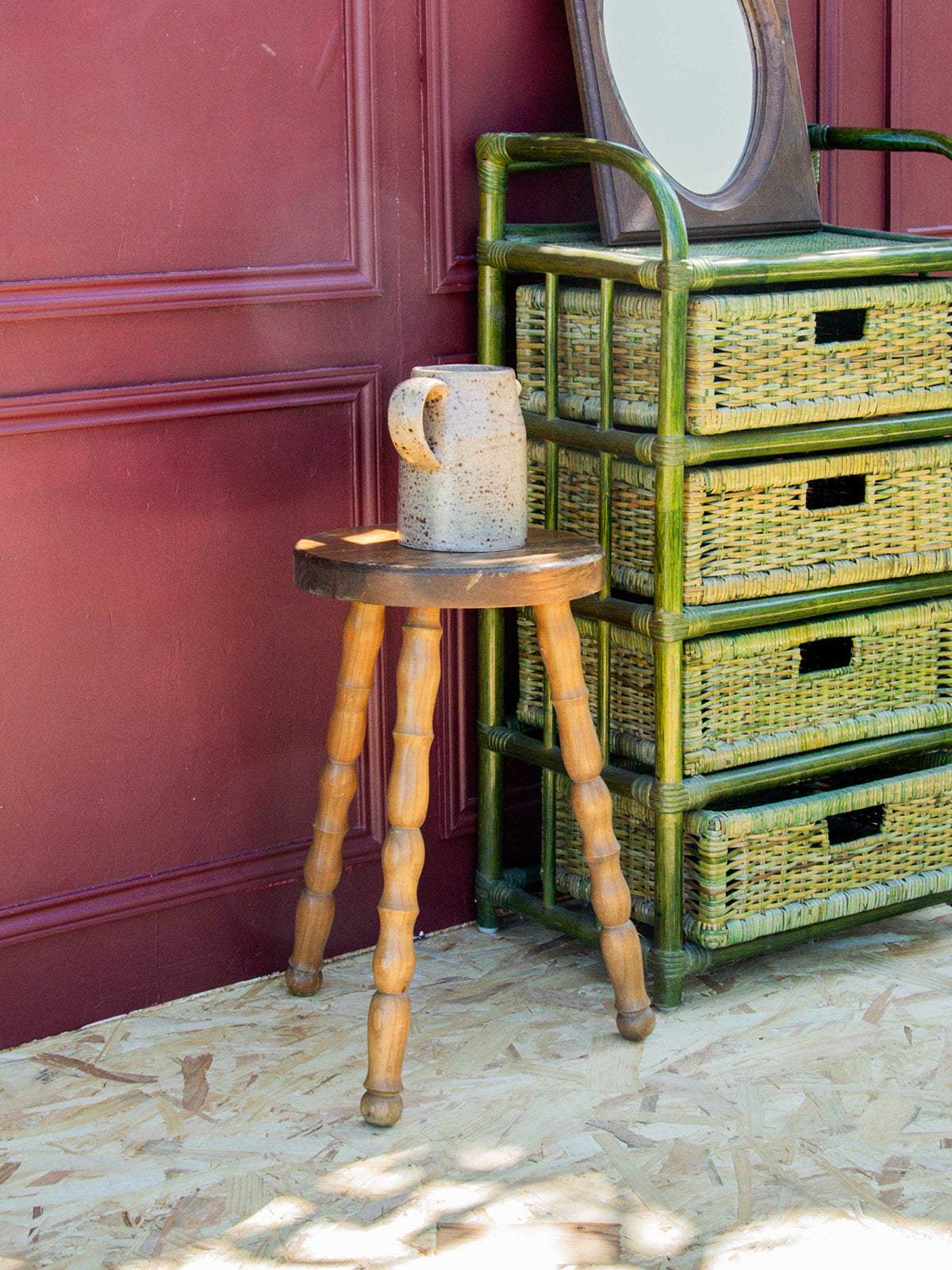 Découvrez ce charmant tabouret en bois clair au design tripode, subtil mélange de rusticité et d’élégance. Sa structure en bois sculptée avec soin et ses pieds joliment travaillés lui confèrent une allure originale et authentique. L’assise ronde bicolore, marquée de quelques traces du temps, lui donne tout son caractère et raconte une histoire unique. Pratique et esthétique, ce tabouret trouvera facilement sa place dans vos espaces de vie.