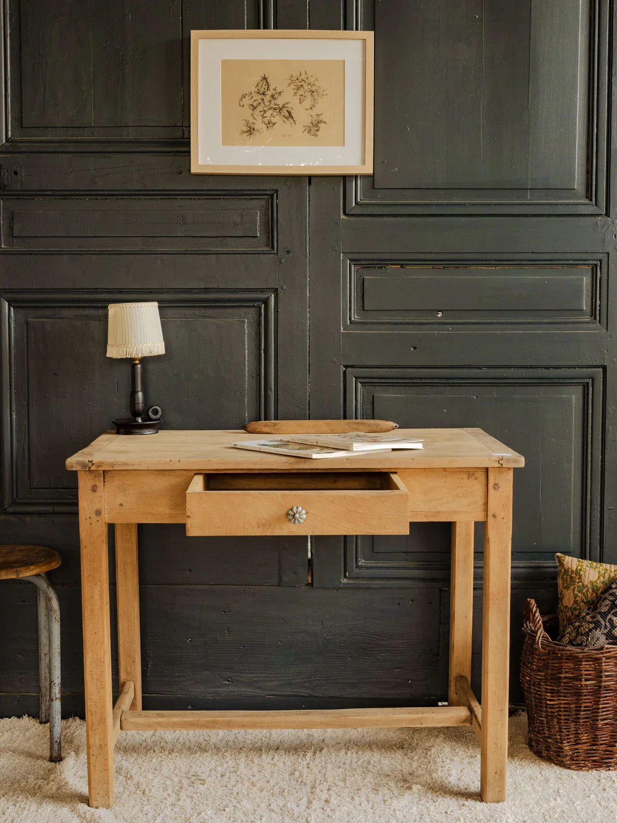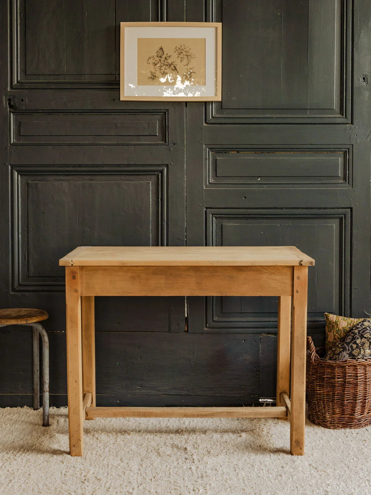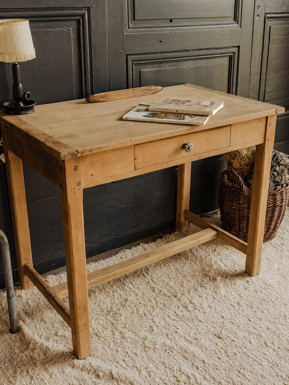 Découvrez ce charmant bureau ancien en pin, alliant authenticité et fonctionnalité. Doté d'un tiroir et d'une élégante poignée en métal, il offre un style chaleureux. Sa taille compacte le rend idéal pour servir de table pour 2 personnes, parfait pour des moments de convivialité autour d'un café ou d'un projet créatif. Apportez une touche vintage à votre intérieur avec ce meuble au caractère unique.