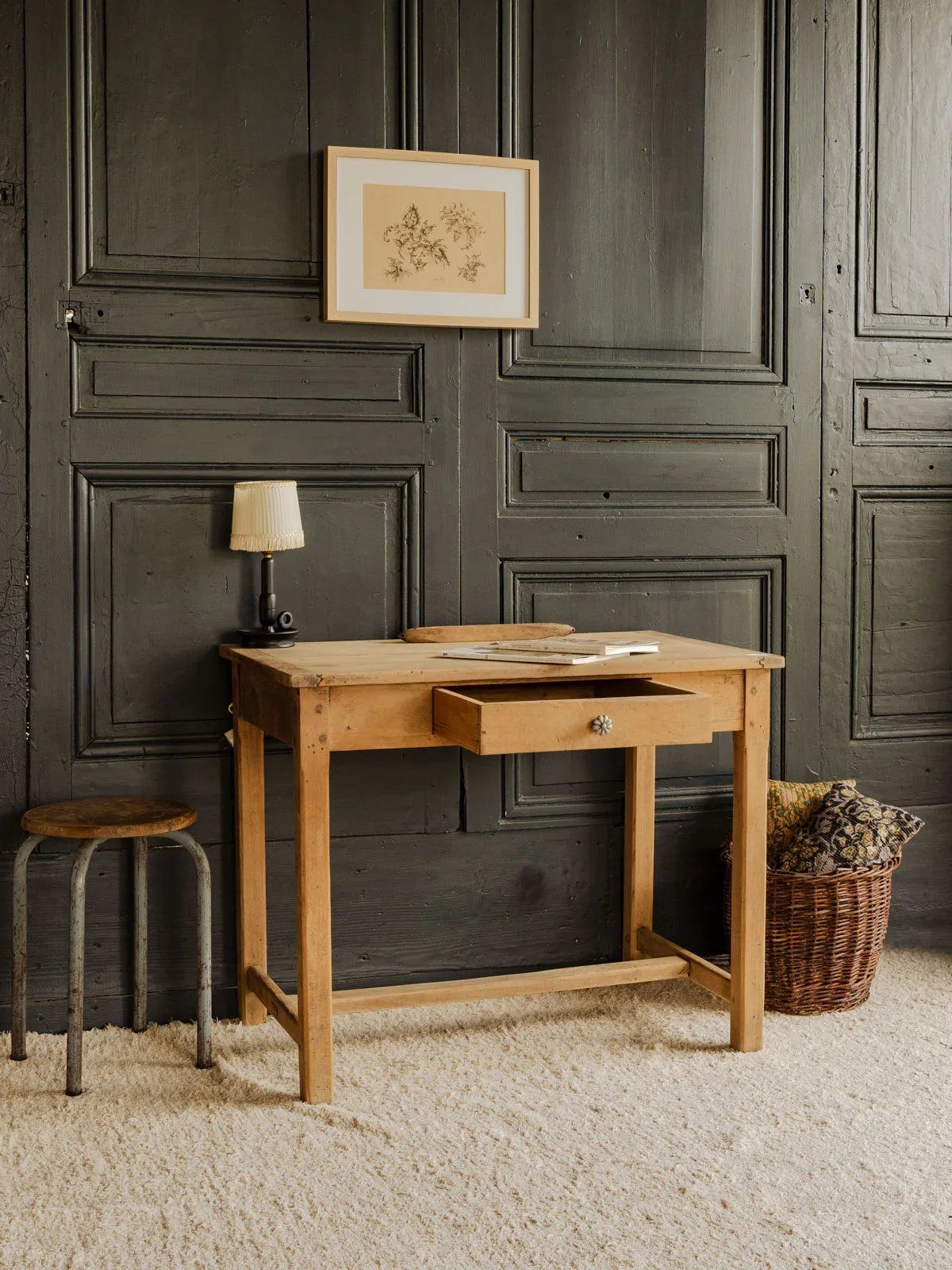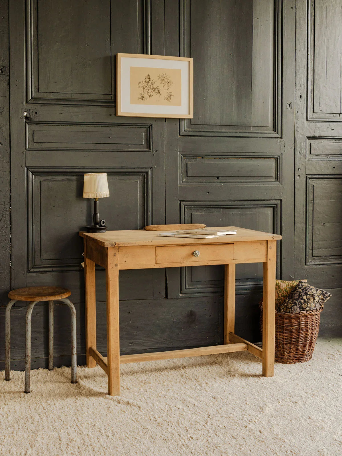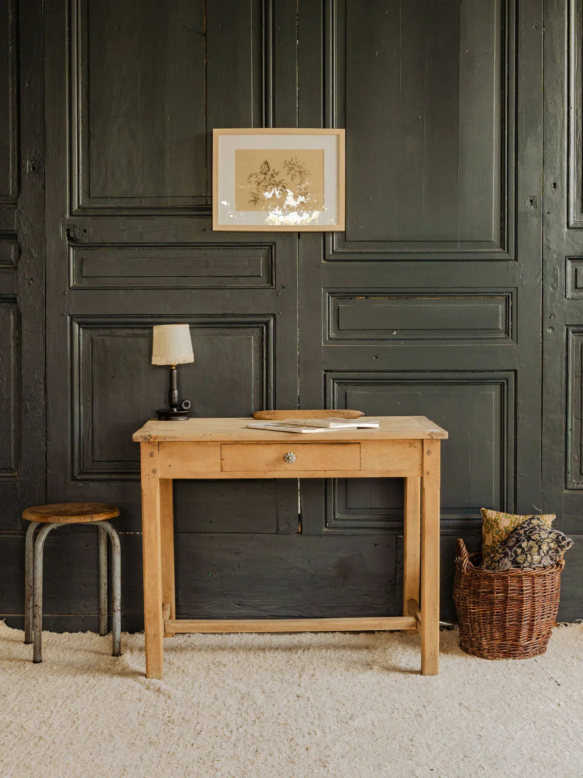 Découvrez ce charmant bureau ancien en pin, alliant authenticité et fonctionnalité. Doté d'un tiroir et d'une élégante poignée en métal, il offre un style chaleureux. Sa taille compacte le rend idéal pour servir de table pour 2 personnes, parfait pour des moments de convivialité autour d'un café ou d'un projet créatif. Apportez une touche vintage à votre intérieur avec ce meuble au caractère unique.
