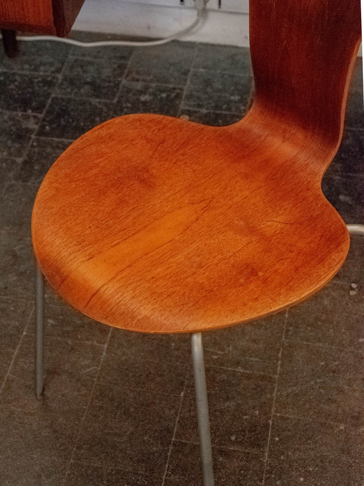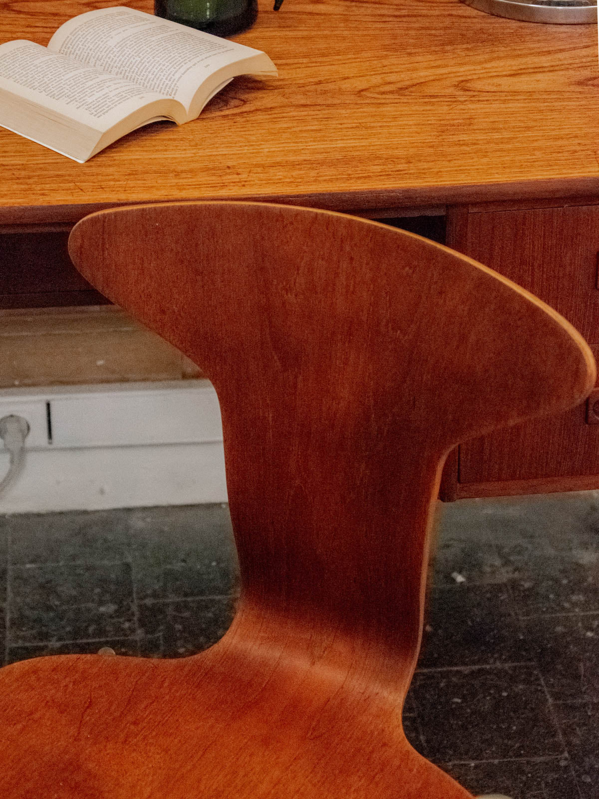 Découvrez la chaise Mosquito, un chef-d'œuvre iconique d'Arne Jacobsen, créée pour Fritz Hansen dans les années 1960. Avec son piétement fin en métal et sa structure en bois, cette pièce allie élégance et confort. Son design minimaliste et sa silhouette délicate apportent une touche contemporaine à tout intérieur, tout en restant fidèle à l'esthétique raffinée de l'époque. Parfaite pour une utilisation en salon ou en salle à manger, la chaise Mosquito est un incontournable pour les amateurs de design scandinave.