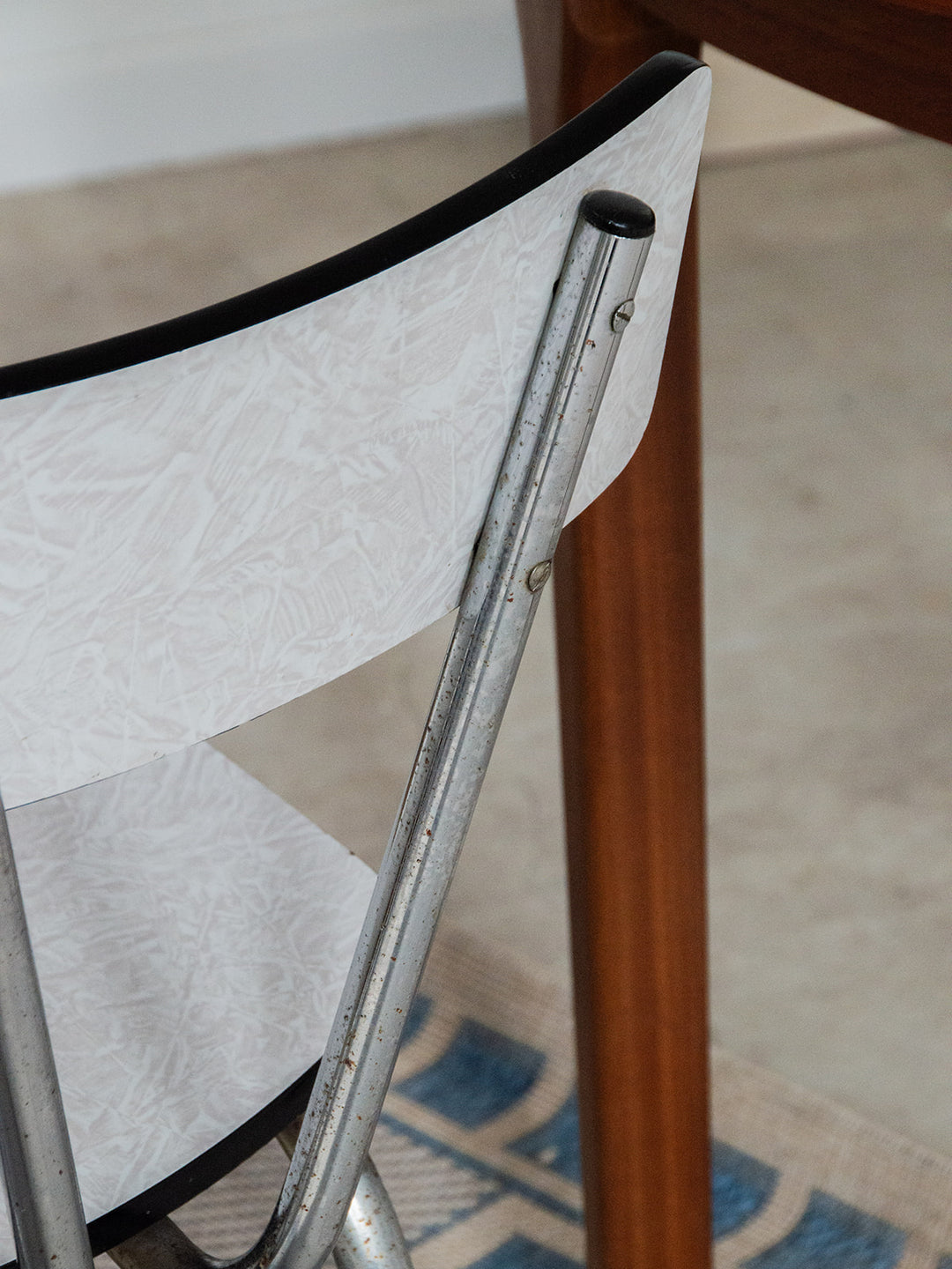 Offrez vous cette chaise en formica blanche aux légers motifs, parfaite pour apporter une touche vintage à votre intérieur. Son design épuré et élégant s’intègre harmonieusement dans tous les styles de décoration. Avec sa structure en métal robuste, elle assure à la fois confort et durabilité. Idéale pour votre salle à manger ou votre bureau, cette chaise allie praticité et esthétique avec brio. Vendues à l'unité, 24 quantités sont disponibles.