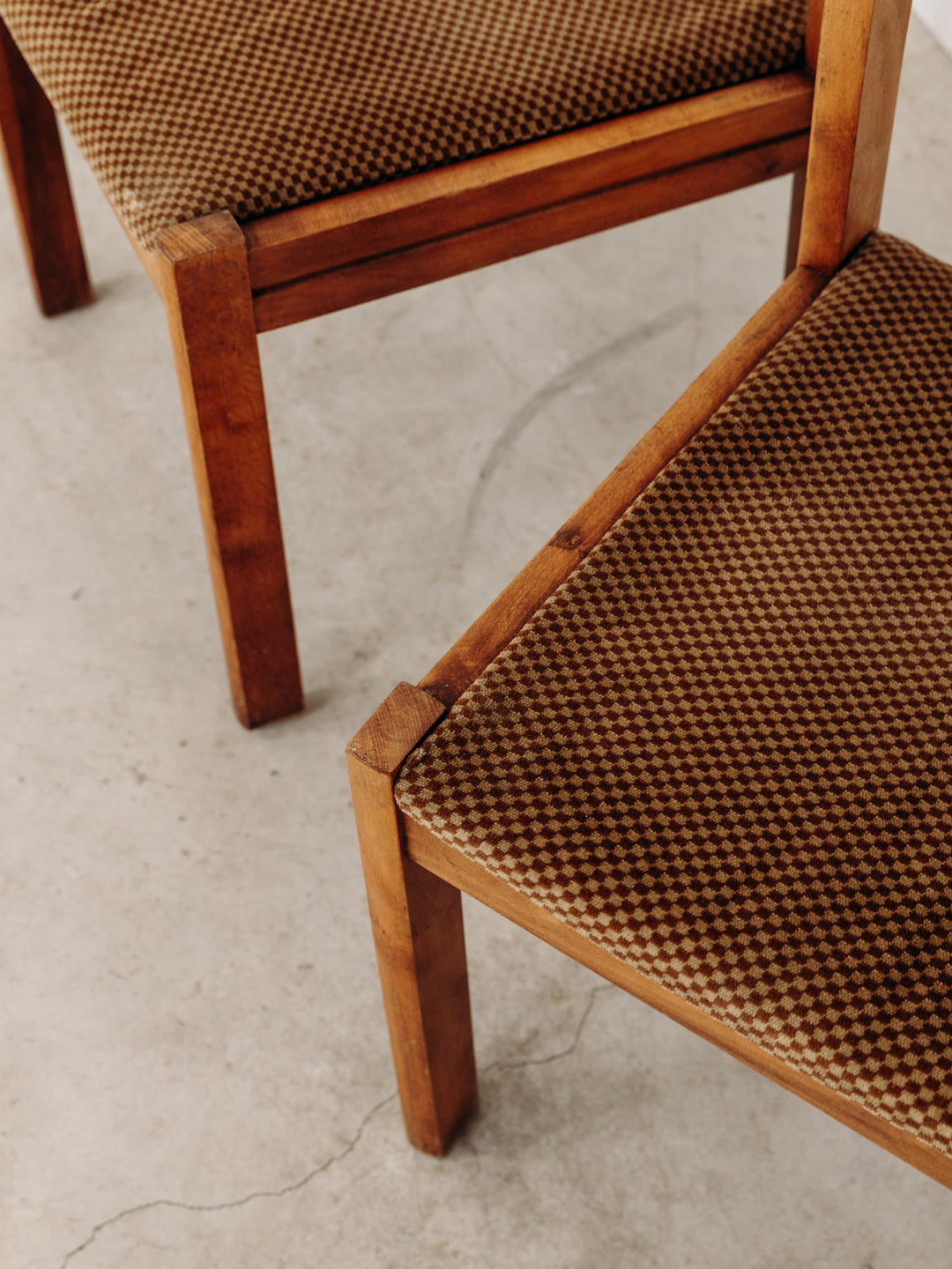 Apportez une touche nordique à votre intérieur avec cette chaise scandinave au design épuré. Dotée de pieds et d’un dossier droit en bois, elle allie solidité et style. Son assise a été soigneusement retapissée avec un tissu épais en lainage marron et beige à carreaux, offrant confort et élégance. Ces chaises sont idéales pour sublimer votre salle à manger ou tout autre espace. À noter que le dossier est piqué, le détail est à découvrir sur les photos. Vendues à l'unité, 6 exemplaires sont disponibles.