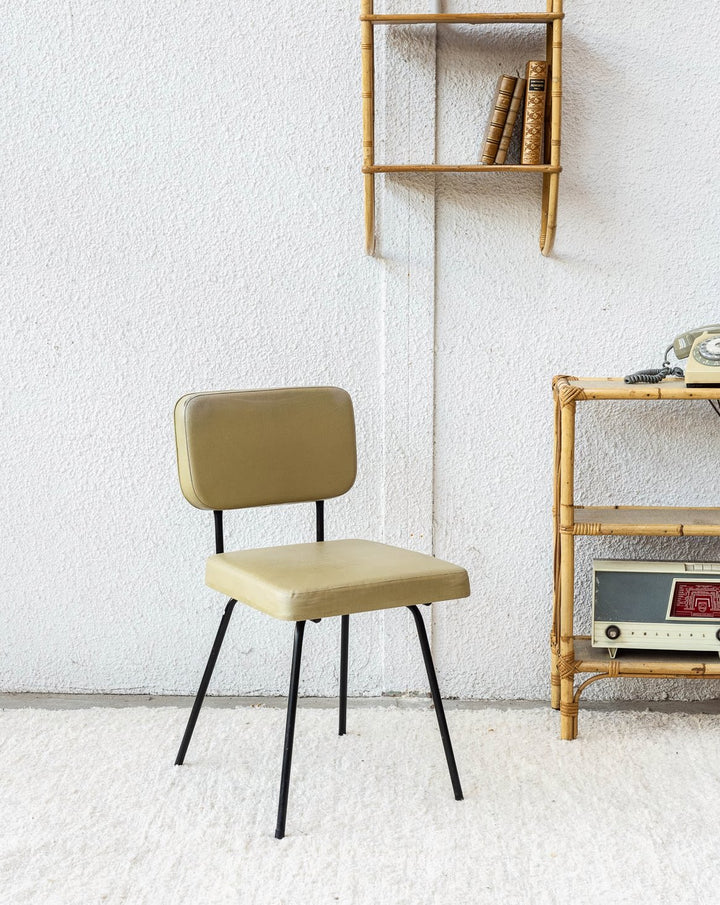 Découvrez la chaise Arne Borne, un incontournable du design contemporain. Son revêtement en simili cuir procure un confort optimal tout en apportant une touche d'élégance à votre intérieur. La structure en métal garantit robustesse et stabilité, faisant de cette chaise un choix à la fois esthétique et pratique. Parfaite pour embellir votre salle à manger ou votre bureau, la chaise Arne Borne s’adapte à tous les styles tout en vous offrant une assise agréable. Quelques traces du temps, témoin de son usage. Deux exemplaires disponibles.