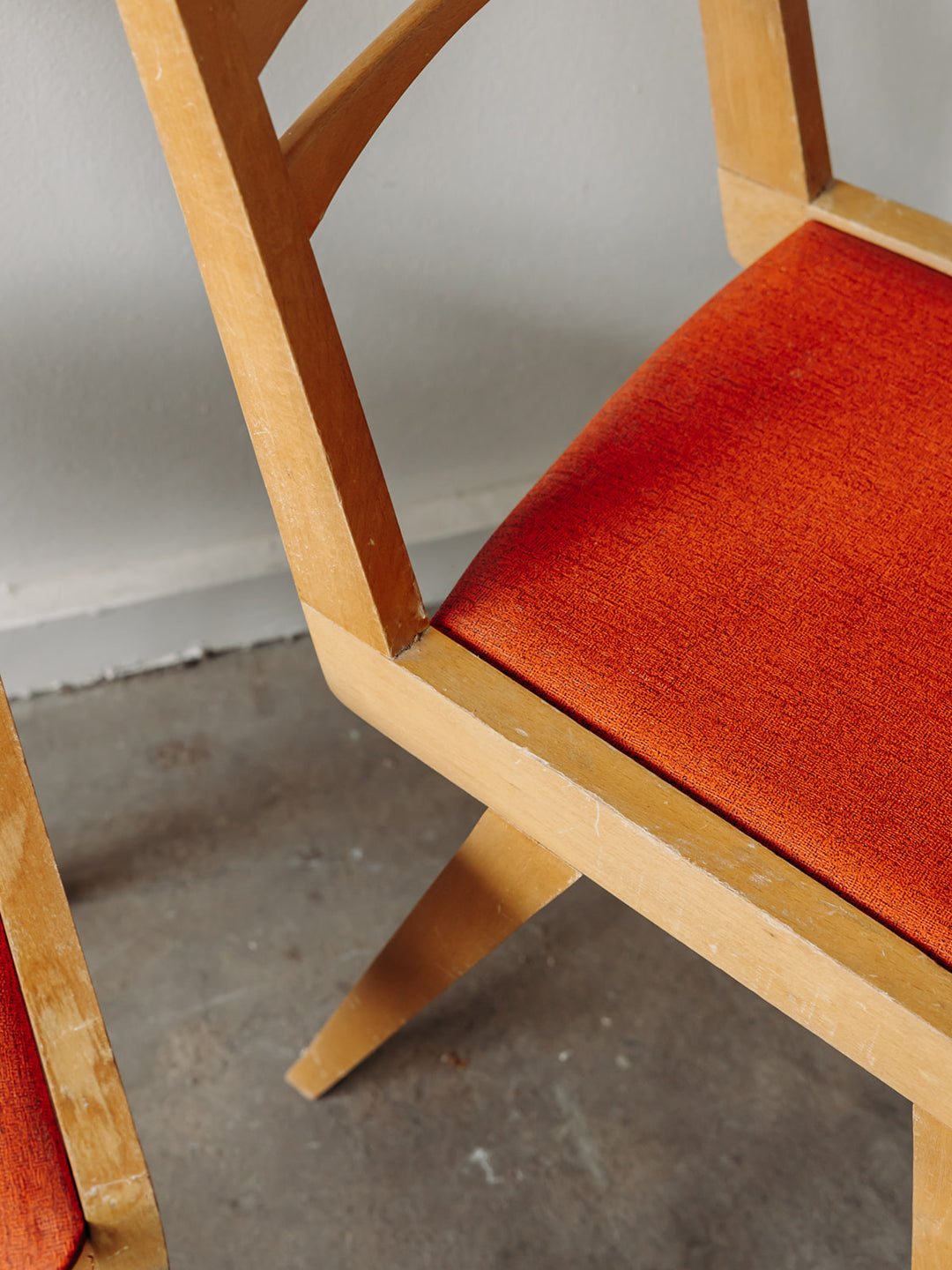 Découvrez cette jolie paire de chaises en bois clair, au design scandinave épuré et chaleureux. Leur assise rouge apporte une touche de couleur vive et contrastée. Les pieds compas typiques des années 50/60 leur donnent une belle légèreté visuelle. Le dossier à trois barres assure confort et maintien tout en soulignant leur style rétro. Parfaites autour d’une table ou en chaises d’appoint pleines de caractère.
