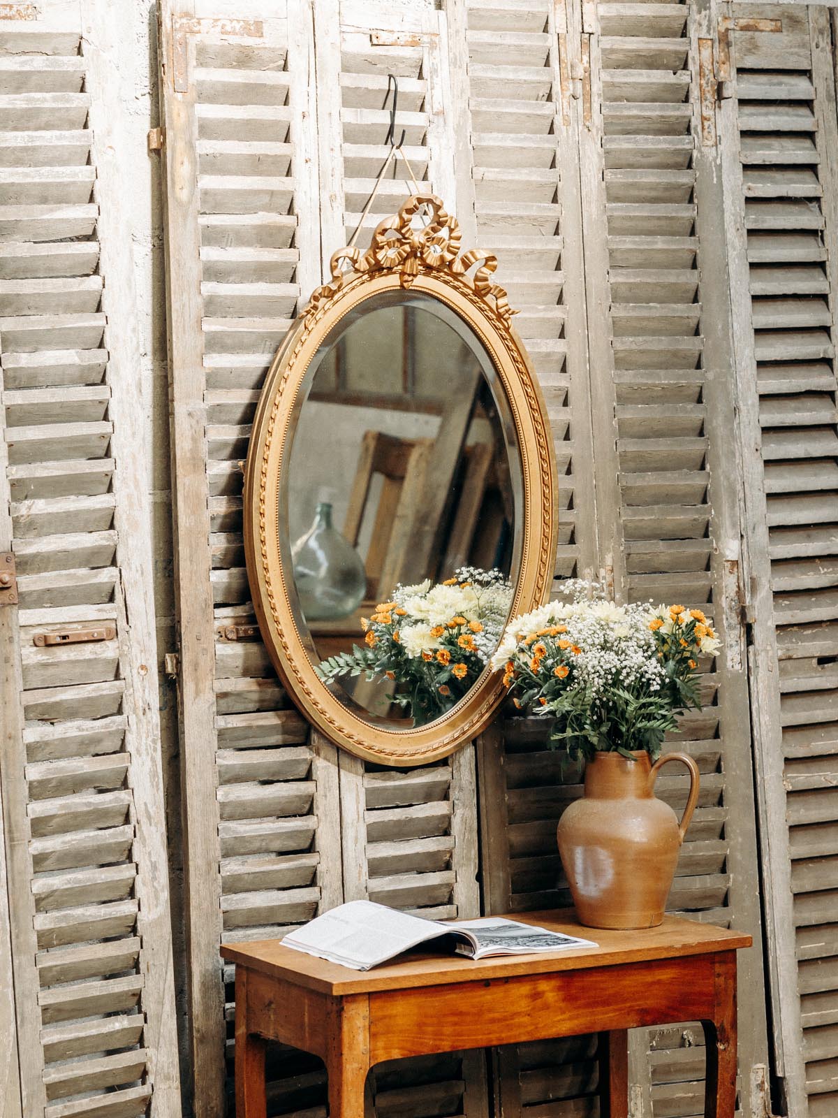 Apportez une touche d'élégance à votre intérieur avec notre miroir ovale doré, orné d'un nœud en bois raffiné. Ce superbe accessoire de décoration présente de jolis décors, ajoutant une note de sophistication à n'importe quelle pièce. Idéal pour habiller un mur ou créer un point focal dans votre espace, ce miroir allie utilité et esthétique avec brio. Un incontournable pour les amateurs de design chic et intemporel.