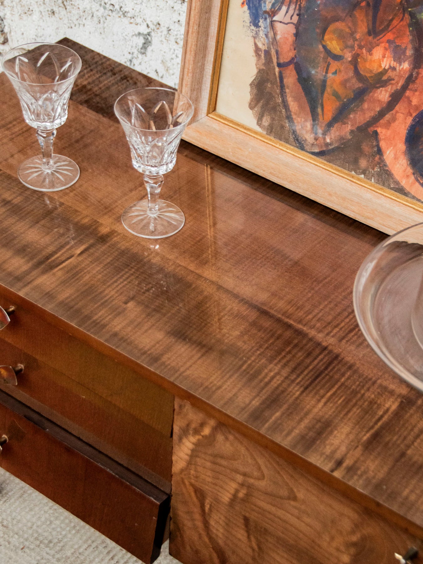 C’est dans les années 1950 que les premières enfilades scandinaves font leur apparition. L'enfilade de style scandinave fait partie du mobilier innovant d'après-guerre. Ses lignes aériennes et ses volumes rectilignes reprennent le style sobre d'inspiration moderniste, avec toutes les caractéristiques des designers norvégiens, suédois, finlandais… L’enfilade scandinave est réalisée en ébénisterie traditionnelle, généralement en bois de teck. Elle est utilisée comme remplacement du traditionnel buffet de salle à manger et fait maintenant office de console. Pour un salon design et agréable à vivre, l'enfilade est le meuble parfait !