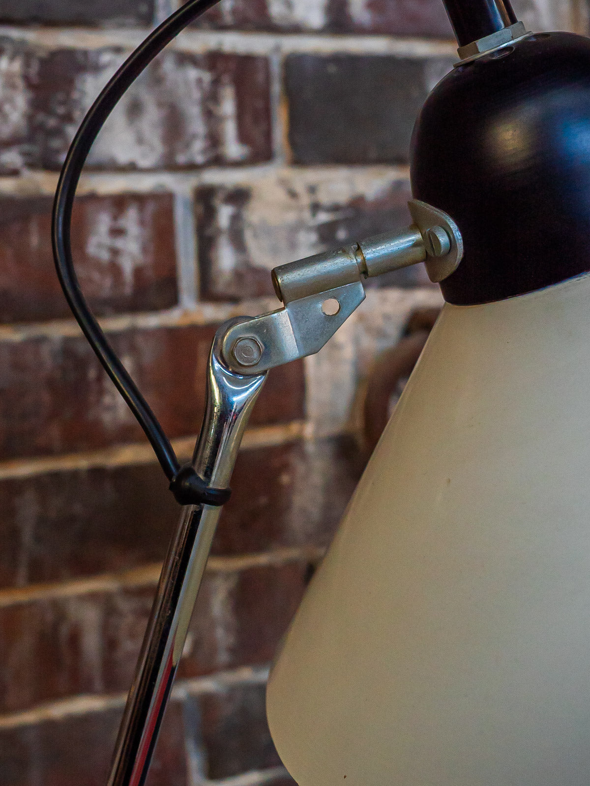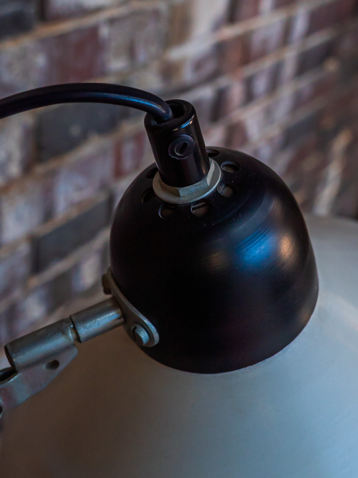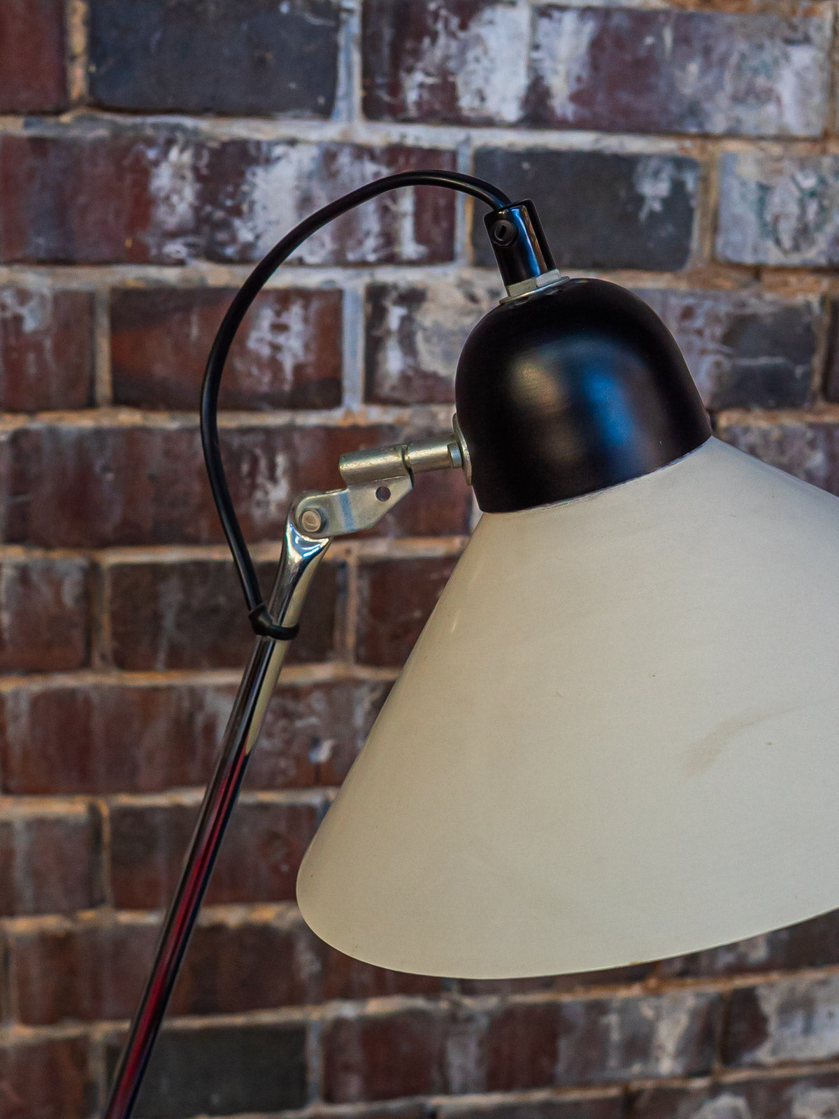 Découvrez cette lampe de bureau au design emblématique des années 80, alliant un élégant métal noir et blanc. Articulée pour permettre un ajustement optimal de la hauteur et de l'orientation de la lumière, elle s'adapte à tous vos besoins d'éclairage. Elle présente des traces d'usure, témoignant de son authenticité et de son caractère vintage. Parfaite pour apporter une touche rétro à votre espace de travail ou de vie.