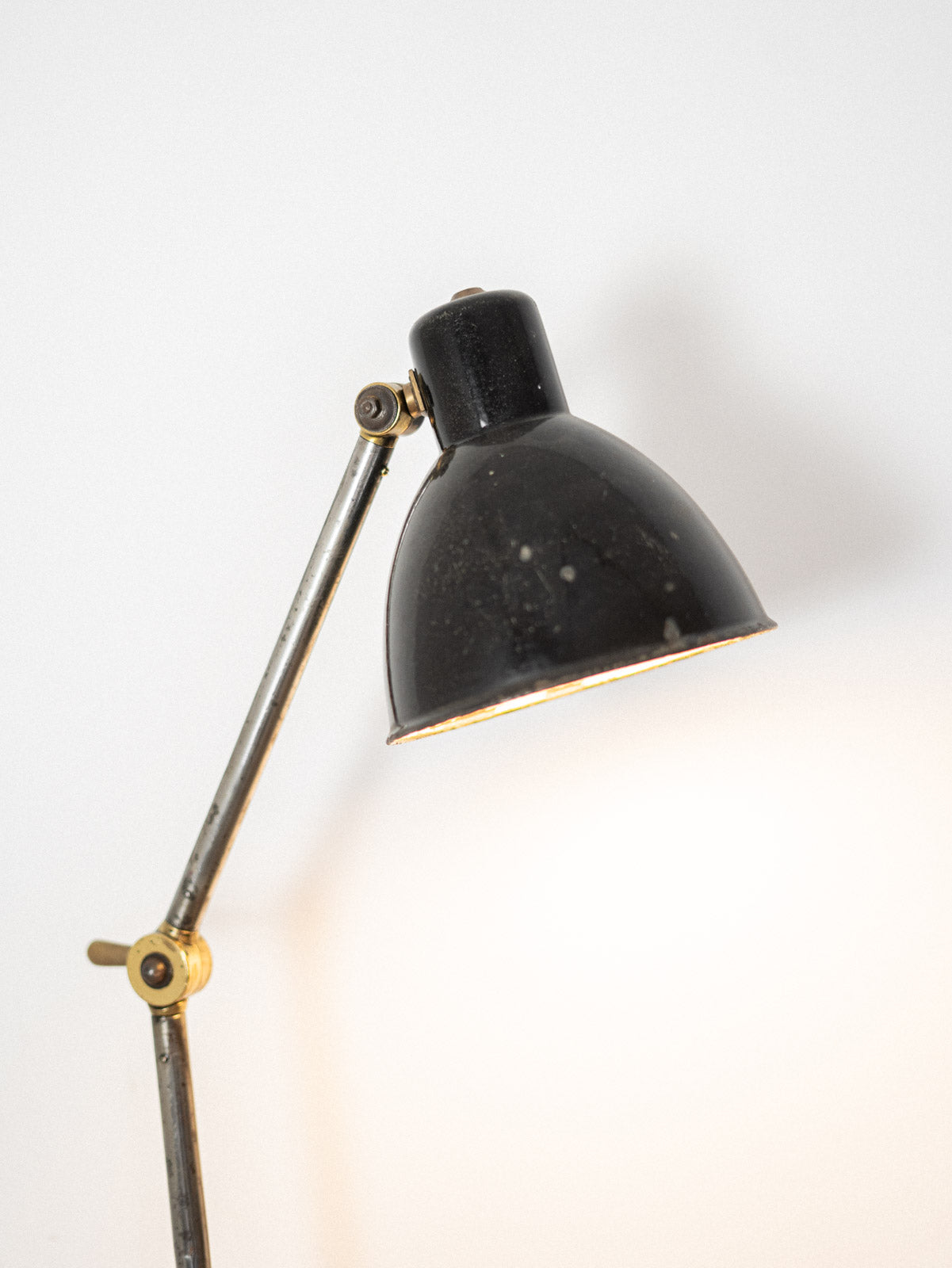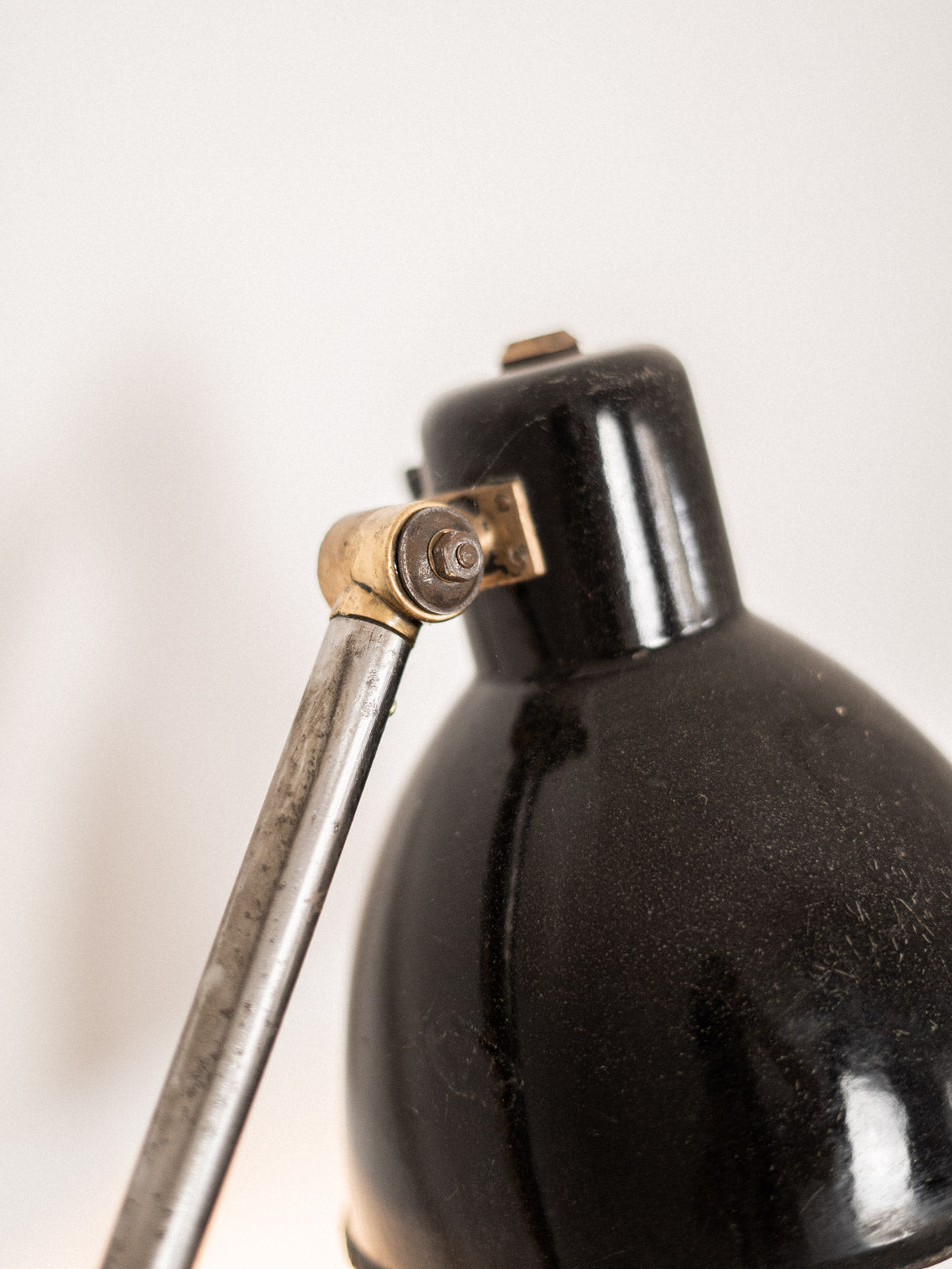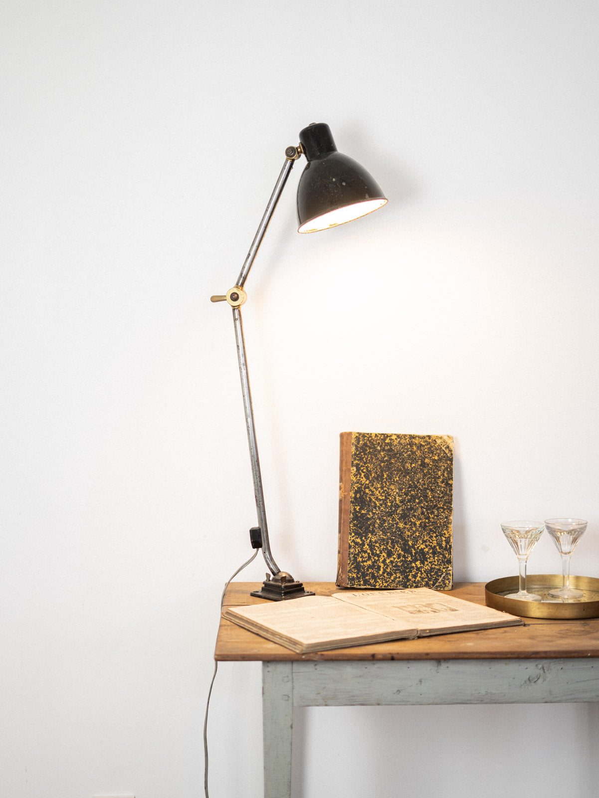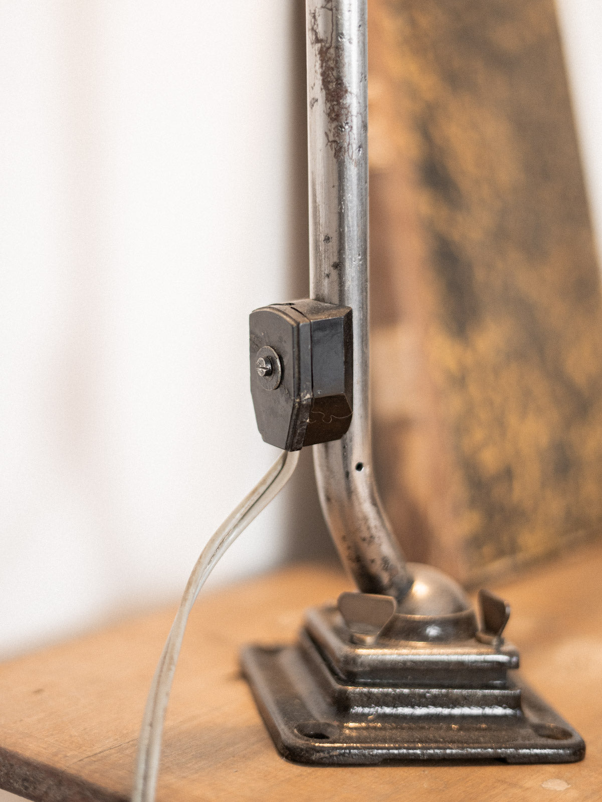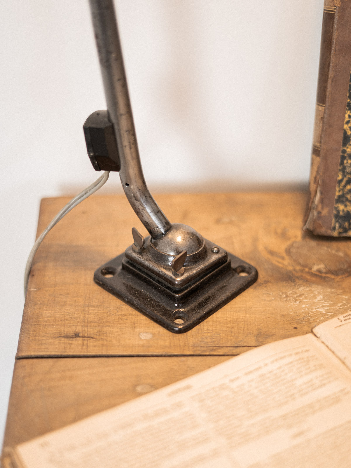Apportez une touche d’authenticité à votre espace avec cette lampe d’atelier patinée des années 1930. Dans un style industriel plein de charme, elle séduit par son abat-jour en métal émaillé qui diffuse une lumière douce et chaleureuse, tandis que sa jonction en laiton apporte une élégante note rétro. Une pièce au caractère affirmé, idéale pour illuminer un coin de travail ou donner du cachet à votre intérieur. Équipée d’une douille E27 et fixée solidement par quatre vis (non fournies), elle allie esthétisme et fonctionnalité, fidèle à l’esprit des ateliers d’autrefois.