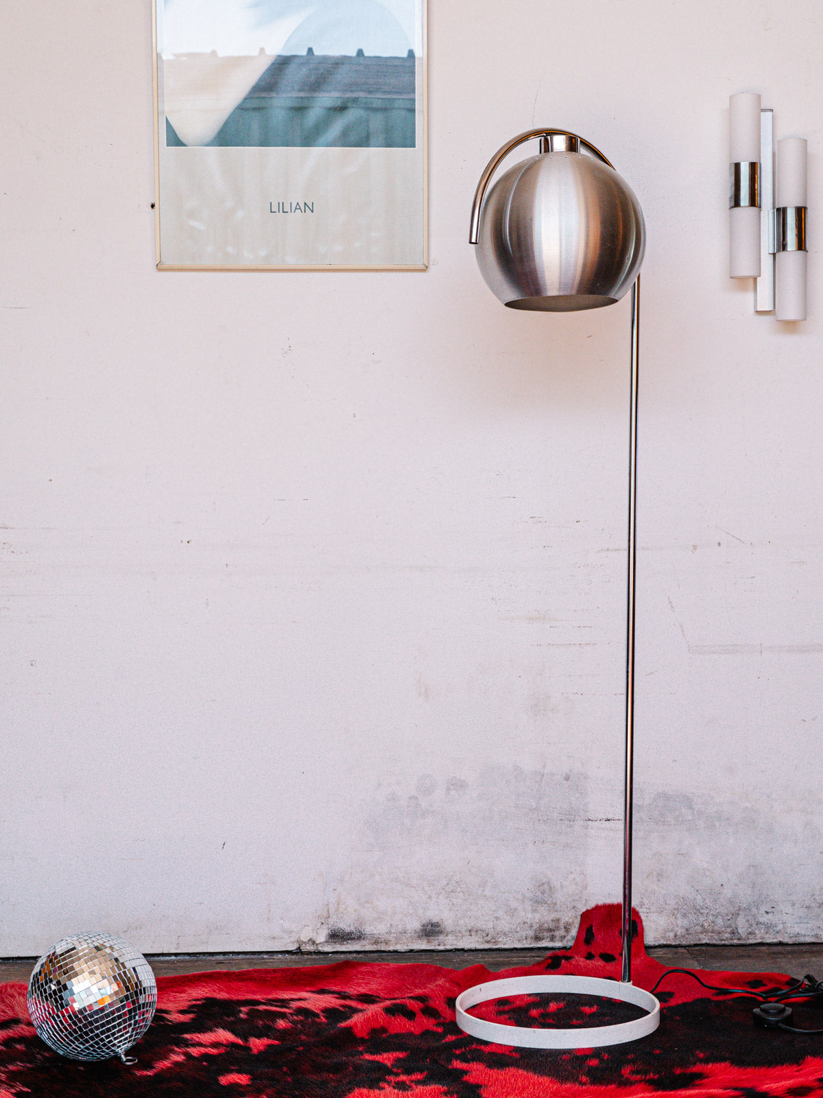 Découvrez ce lampadaire iconique des années 1970, mêlant élégance et modernité. Son globe en aluminium brossé diffuse une lumière douce et chaleureuse, tandis que la structure en acier chromé et la base en acier laqué blanc apportent une touche contemporaine à votre intérieur. Un élément incontournable pour sublimer votre décoration et créer une ambiance conviviale. Parfait pour un salon ou un bureau, ce lampadaire allie design et fonctionnalité avec brio.