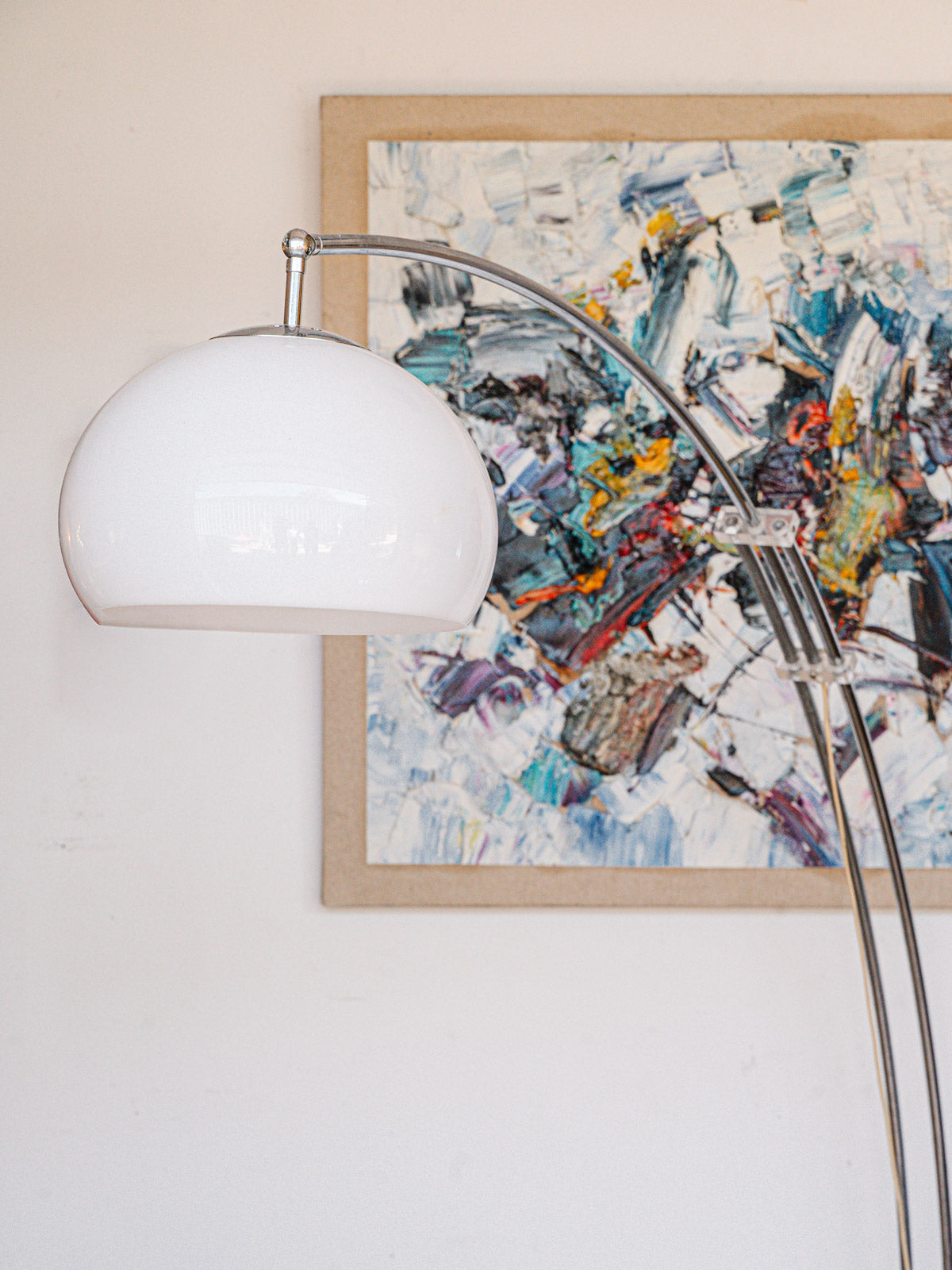 Apportez une touche rétro-chic à votre intérieur avec le lampadaire Arc des années 1970. Sa structure en métal, élégamment soulignée par un socle en marbre, allie robustesse et sophistication. Grâce à sa longueur coulissante et son globe orientable en altuglass blanc, ce lampadaire offre un éclairage modulable tout en mettant en valeur son design emblématique. Un éclairage idéal pour créer une ambiance chaleureuse et stylée dans votre espace de vie.