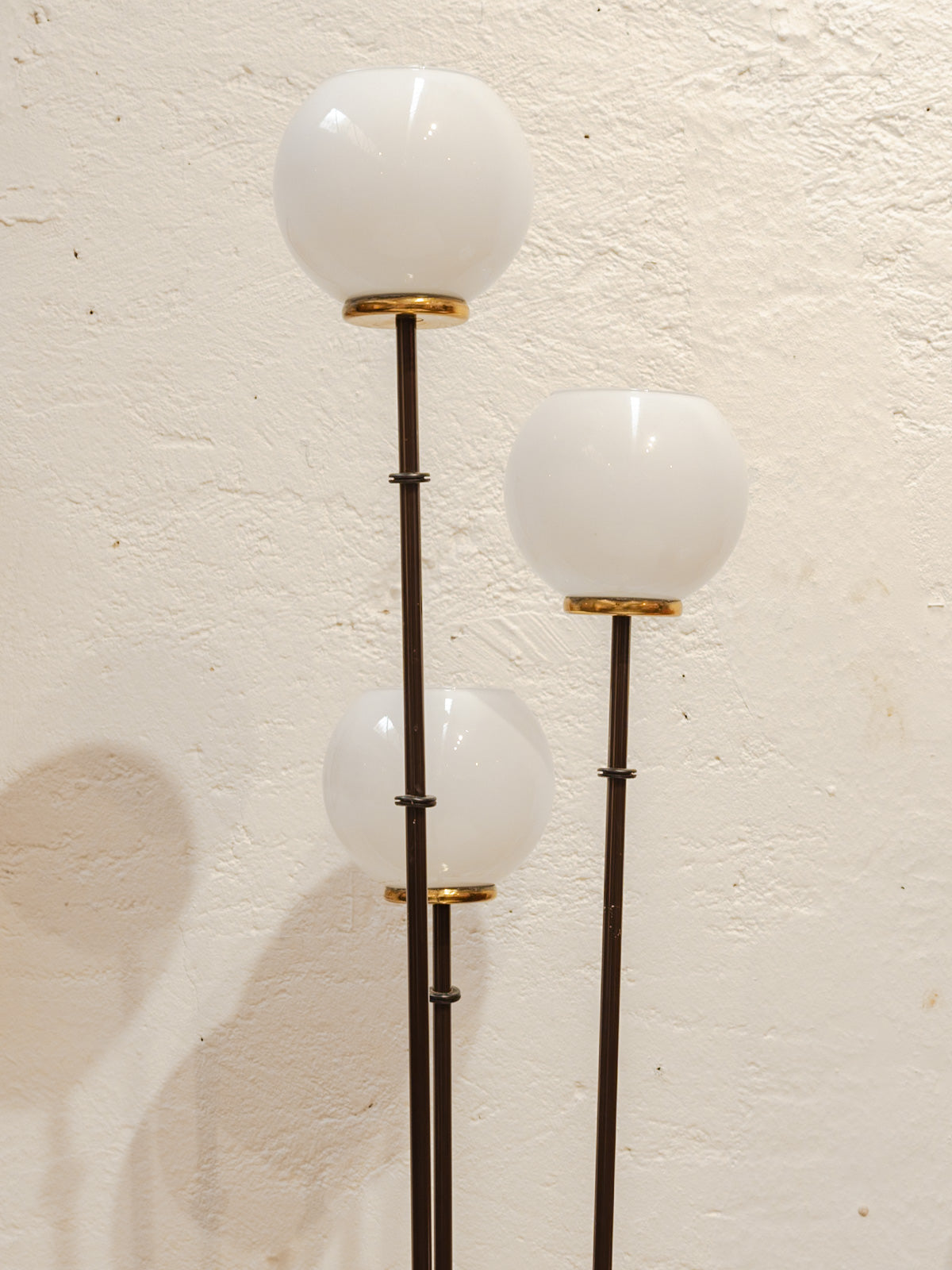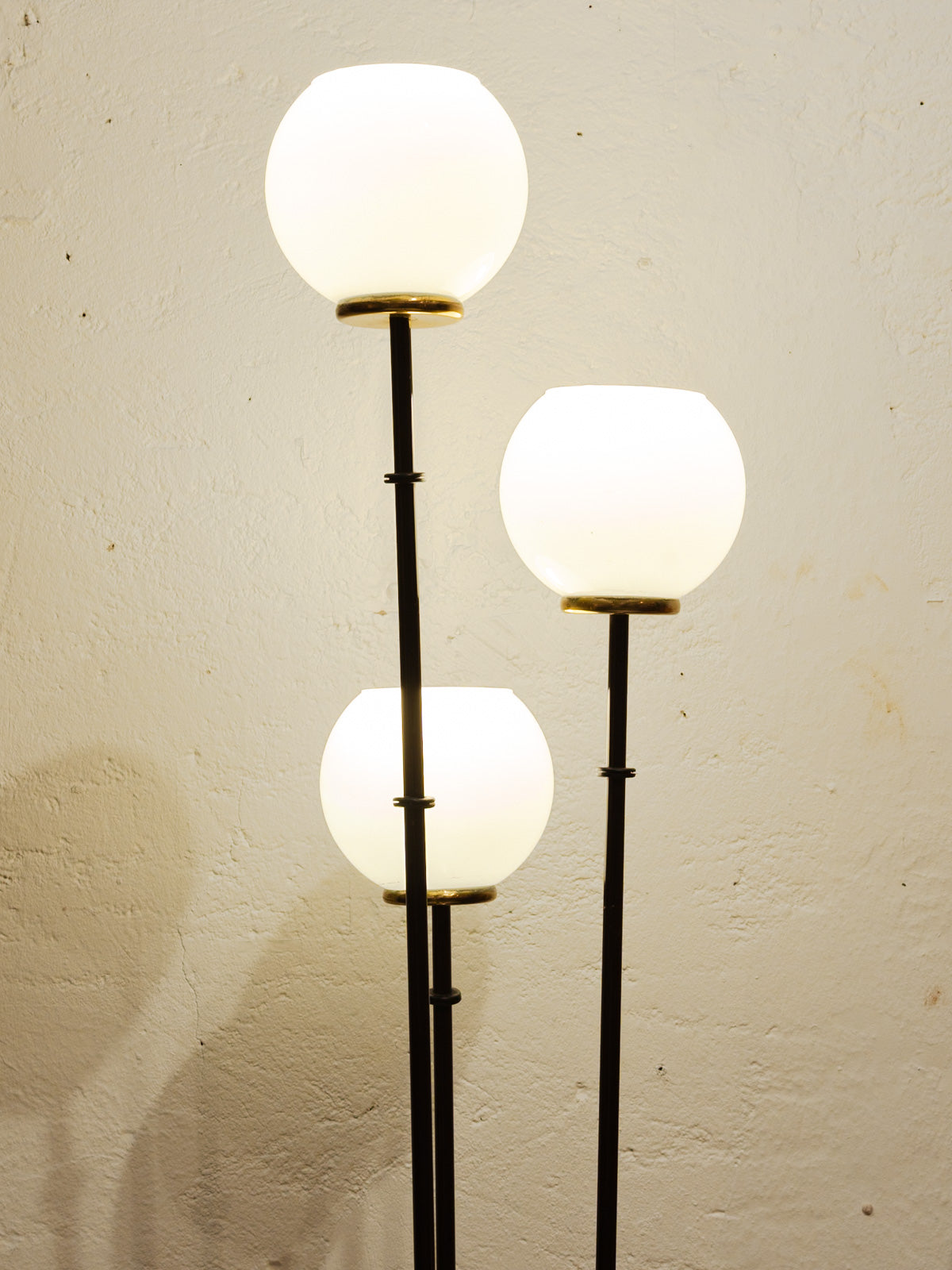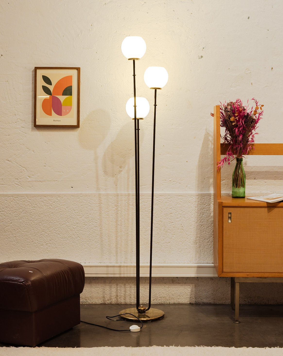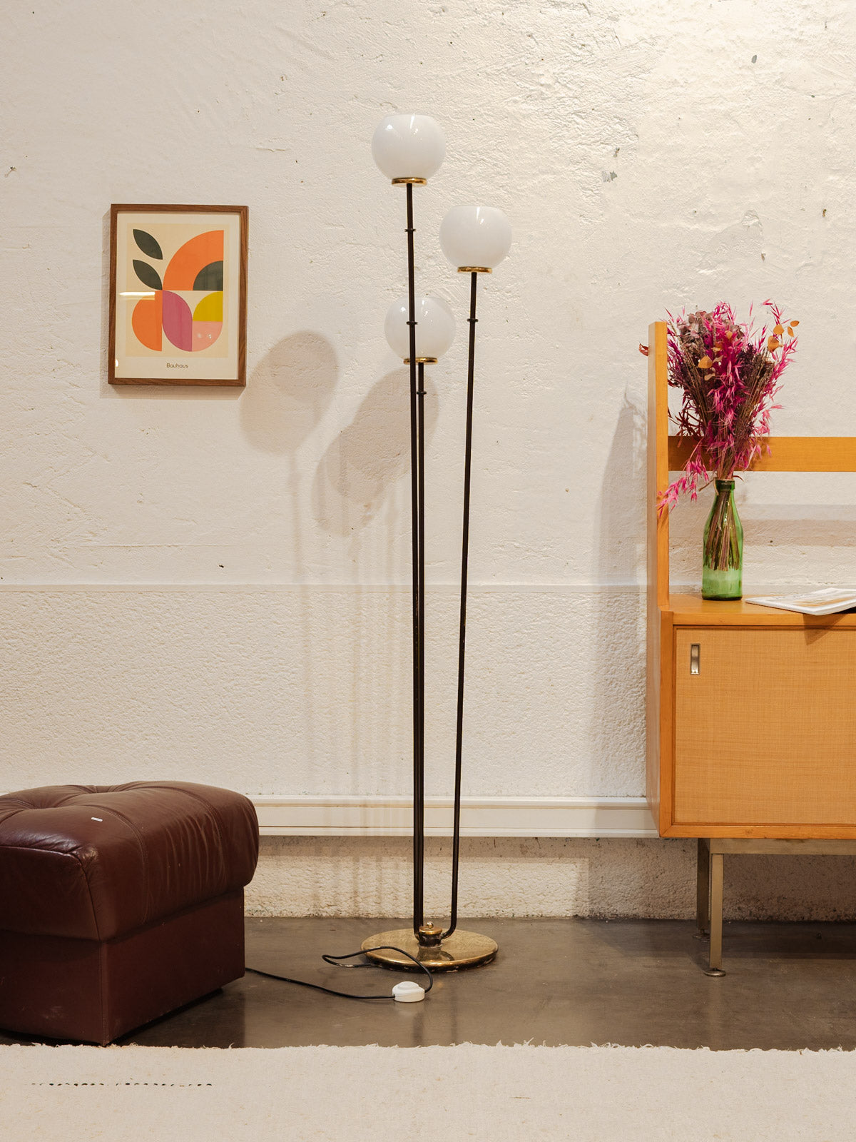 Évoquant le charme intemporel des années 60, ce lampadaire en métal noir se distingue par son élégance et son audace. Ses trois globes en opaline diffusent une lumière douce et chaleureuse, créant une ambiance cosy dans votre intérieur. Le pied en laiton ajoute une touche raffinée et contemporaine à ce luminaire vintage, faisant de lui un incontournable pour les amateurs de design rétro. Parfait pour habiller un coin lecture ou apporter une note chic à votre salon, ce lampadaire est à la fois fonctionnel et décoratif.