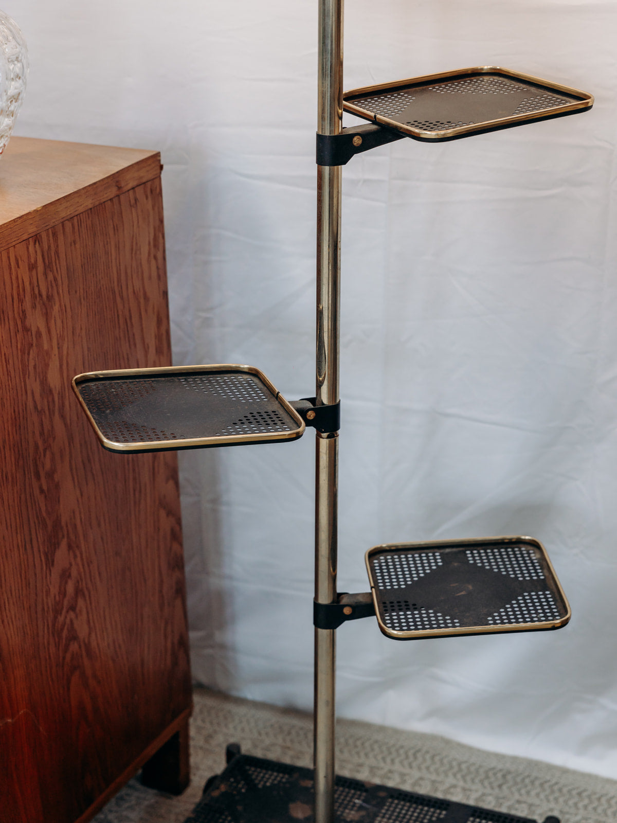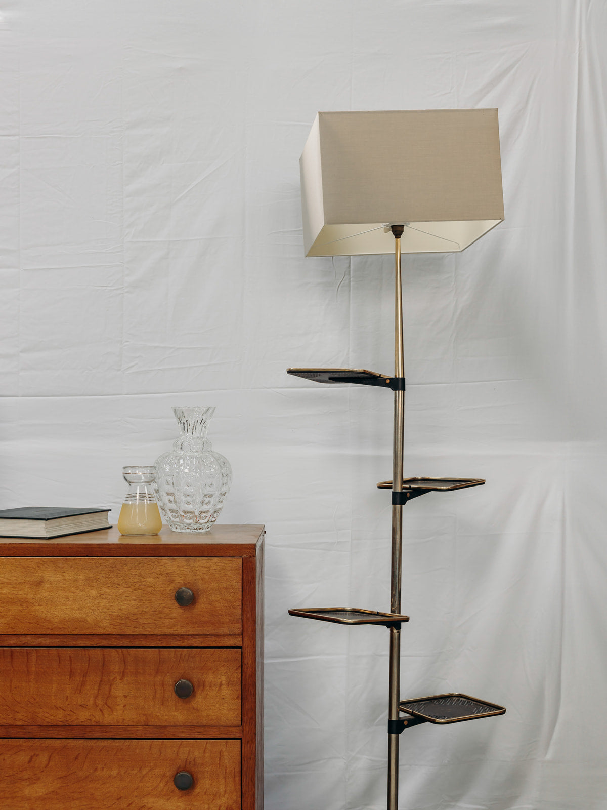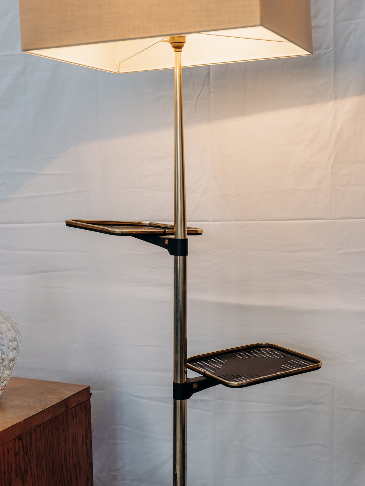 Apportez une touche d'élégance industrielle à votre intérieur avec notre lampadaire en métal, doté de tablettes réglables et monté sur roulettes. Inspiré du style Matego, ce lampadaire allie fonctionnalité et design, vous permettant de l'adapter facilement à vos besoins. Son abat-jour diffuse une lumière chaleureuse, créant une ambiance accueillante tout en ajoutant une note contemporaine à votre décoration. Idéal pour le salon ou le bureau, ce luminaire se distingue par son esthétique moderne et sa praticité. Légères usures.