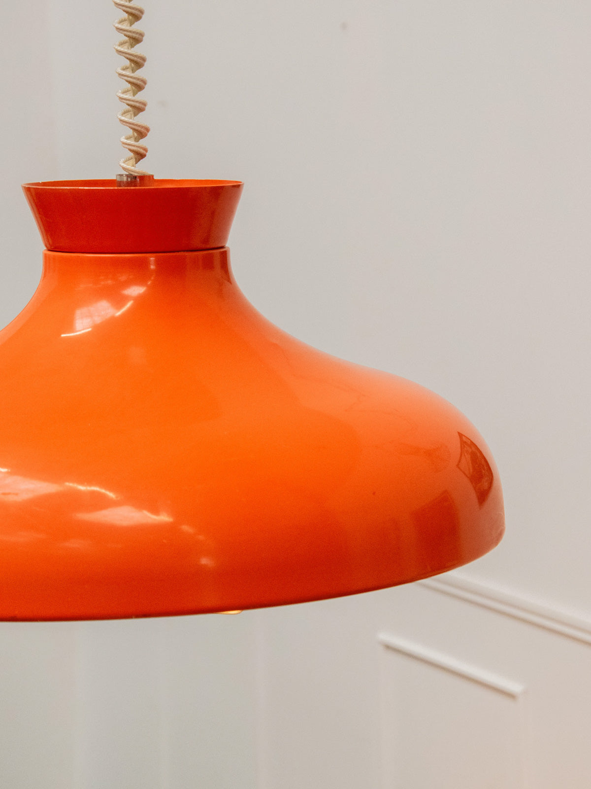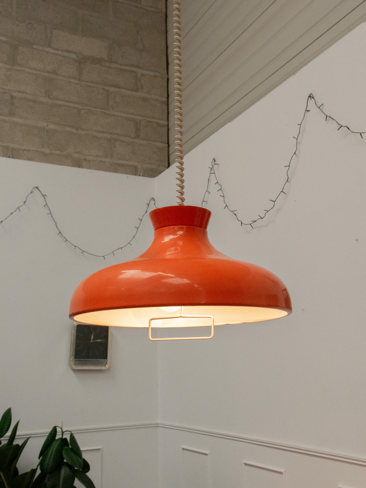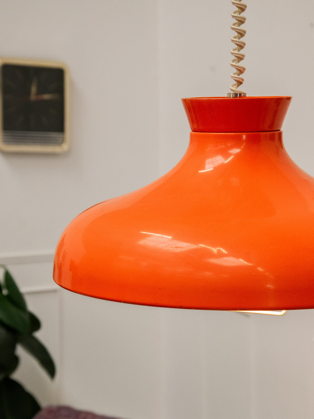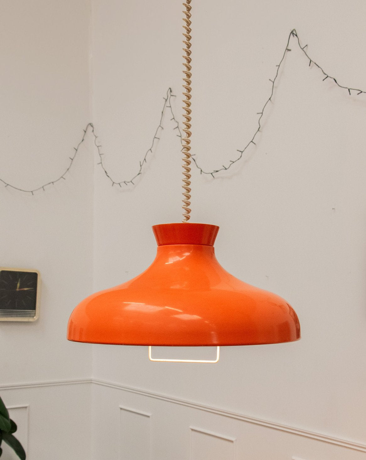 Ajoutez une touche de modernité à votre intérieur avec cette suspension en métal orange, équipée d'une poignée pratique pour régler facilement la hauteur. Conçue pour accueillir deux ampoules, elle diffuse une lumière chaleureuse et conviviale, idéale pour éclairer votre cuisine ou sublimer le décor au-dessus d'une table. Son design audacieux et fonctionnel fera de cette suspension un élément central de votre ambiance.
