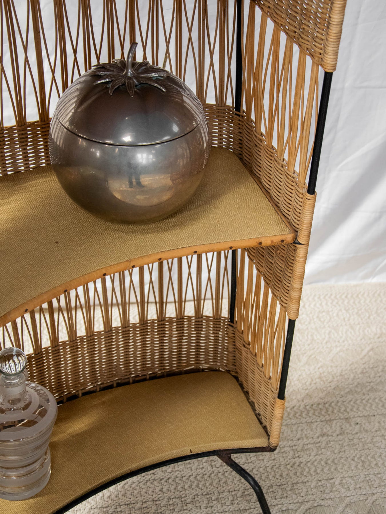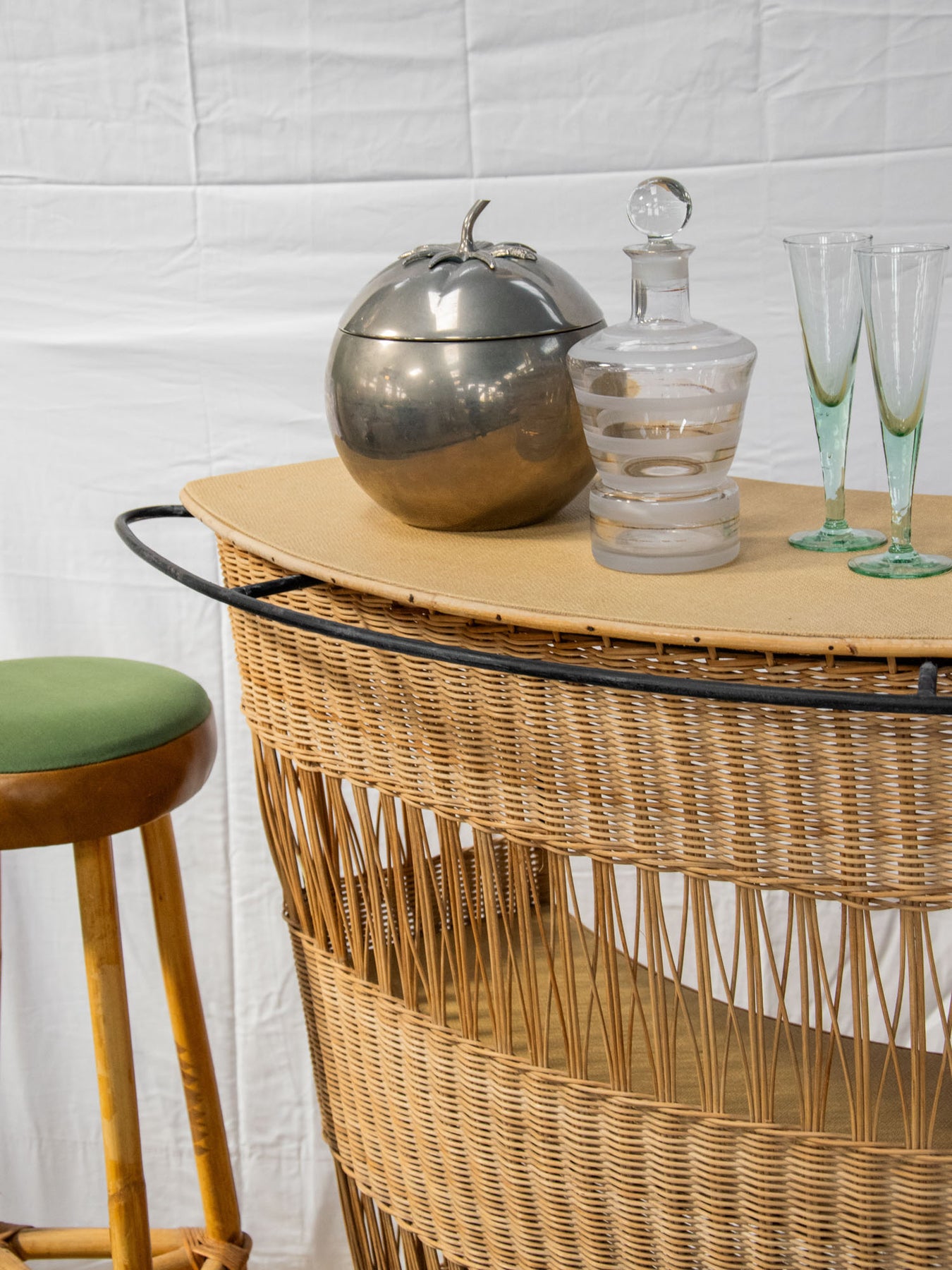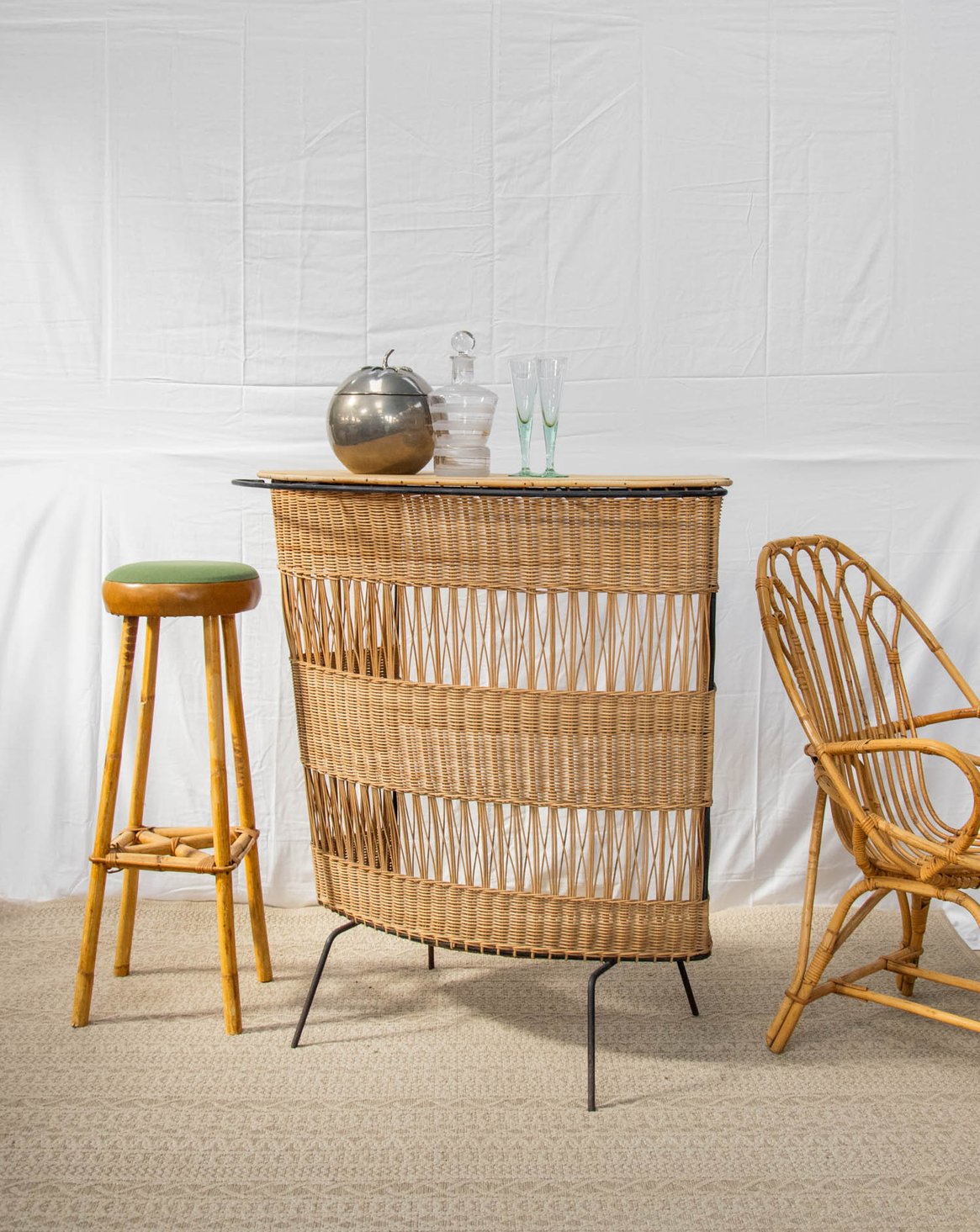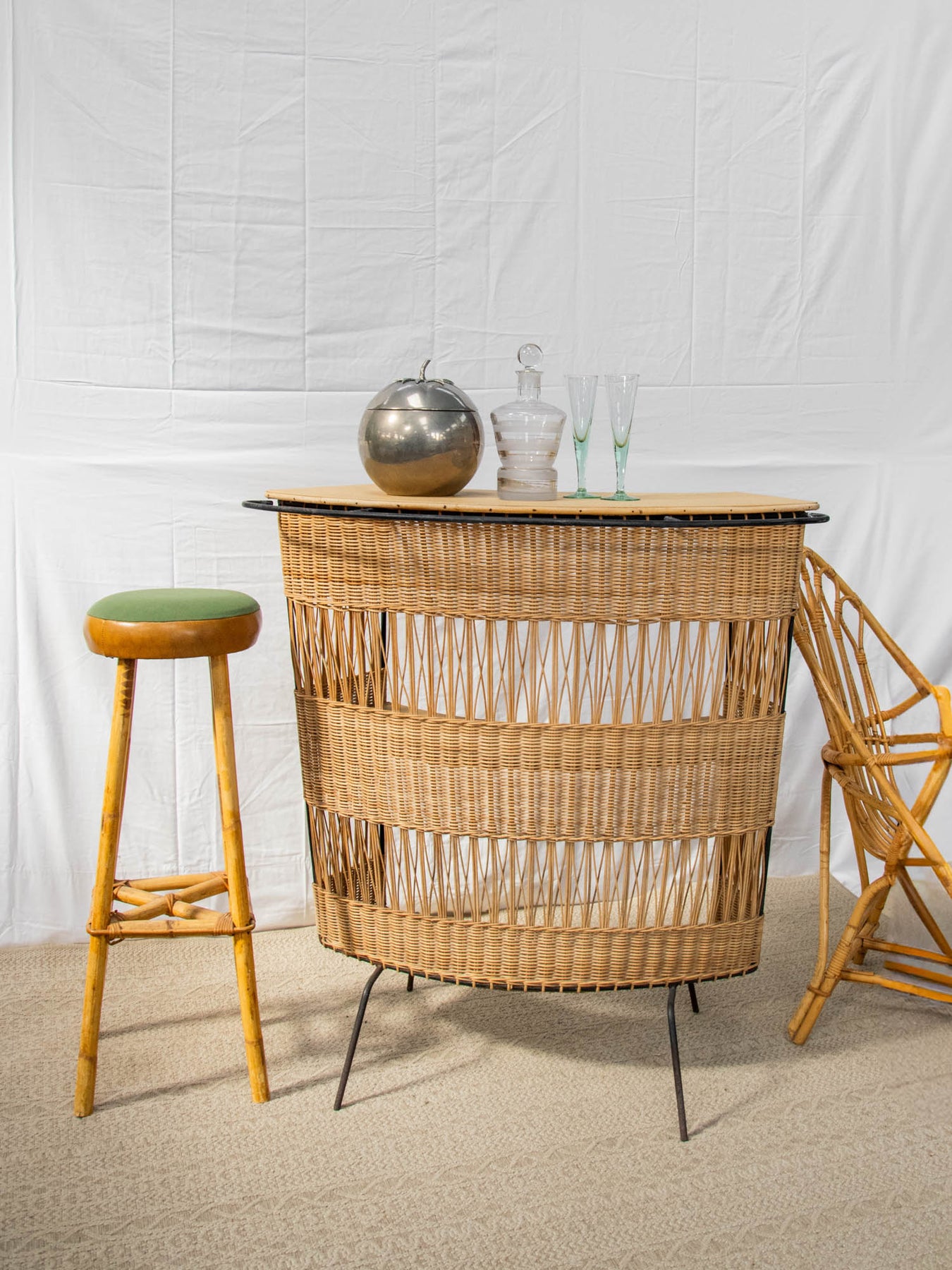 Découvrez ce bar en osier au design moderne, doté d'une élégante structure en métal noir fin. Ses deux espaces de rangement pratiques à l'intérieur vous permettent d'organiser vos bouteilles et accessoires avec style. Les grandes niches en métal, volontairement légèrement usées, ajoutent un caractère unique à ce mobilier, mêlant esthétique et fonctionnalité pour un coin bar chic et convivial. Transformez votre intérieur avec cette pièce au charme intemporel.