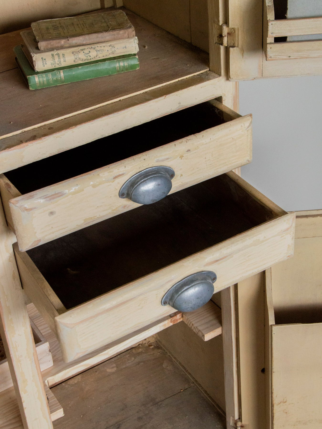 Armoire Mado en bois au charme rétro, parfaite pour organiser et sublimer votre intérieur. Elle propose trois placards et six étagères offrant un espace de rangement pratique et modulable. À l’intérieur, deux tiroirs en bois foncé ajoutent une touche contrastante et fonctionnelle. Les portes sont équipées de poignées en métal aux formes variées, qui lui confèrent un style unique et vintage. Pièce de seconde main soigneusement sélectionnée, prête à retrouver une nouvelle vie pleine de caractère.